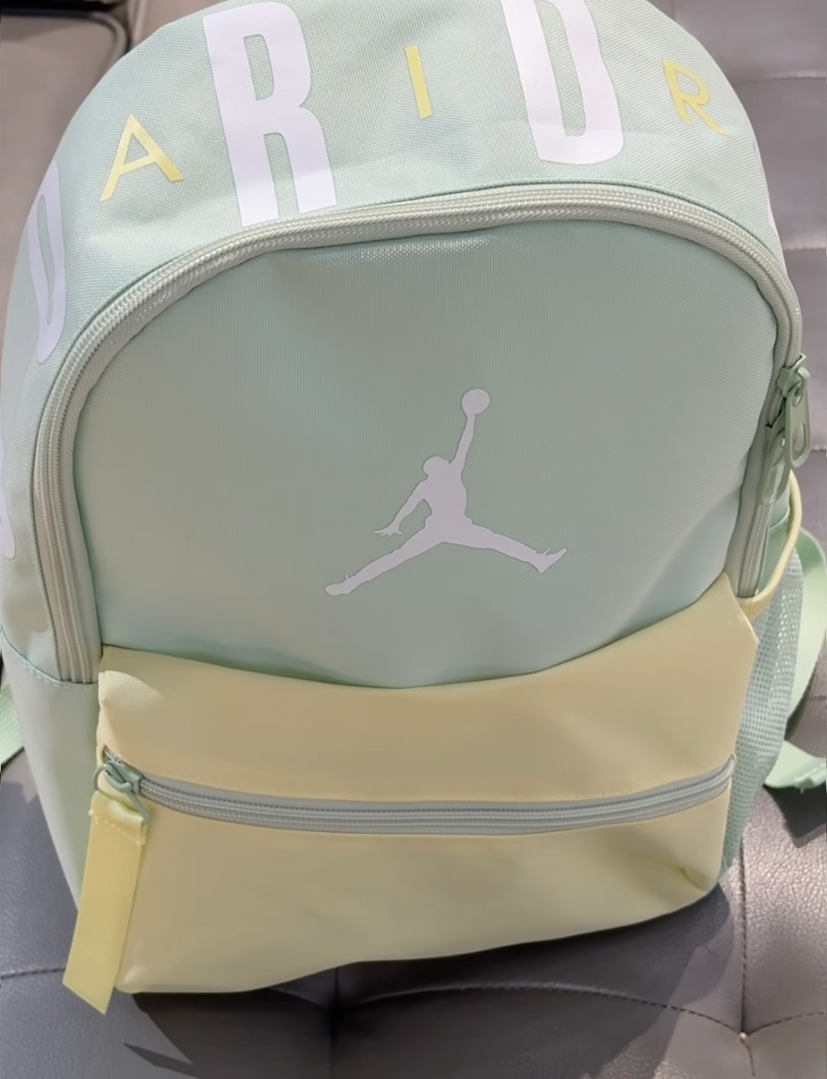 Jordan这款中号情侣款双肩包,是运动与日常穿搭的百搭之选。 经典飞人Logo辨识度拉满,薄荷绿+奶黄撞色设计清新治愈,颜值在线不挑风格。聚酯纤维面料耐磨抗造,中号容量适配日常通勤、运动健身、短途出行,收纳空间充足。 男女同款设计,情侣出街、学生党上学都合适,肩带设计贴合背负,久背不累。作为Jordan品牌的运动配饰,兼具品牌质感与实用性,是提升穿搭氛围感的实用单品。