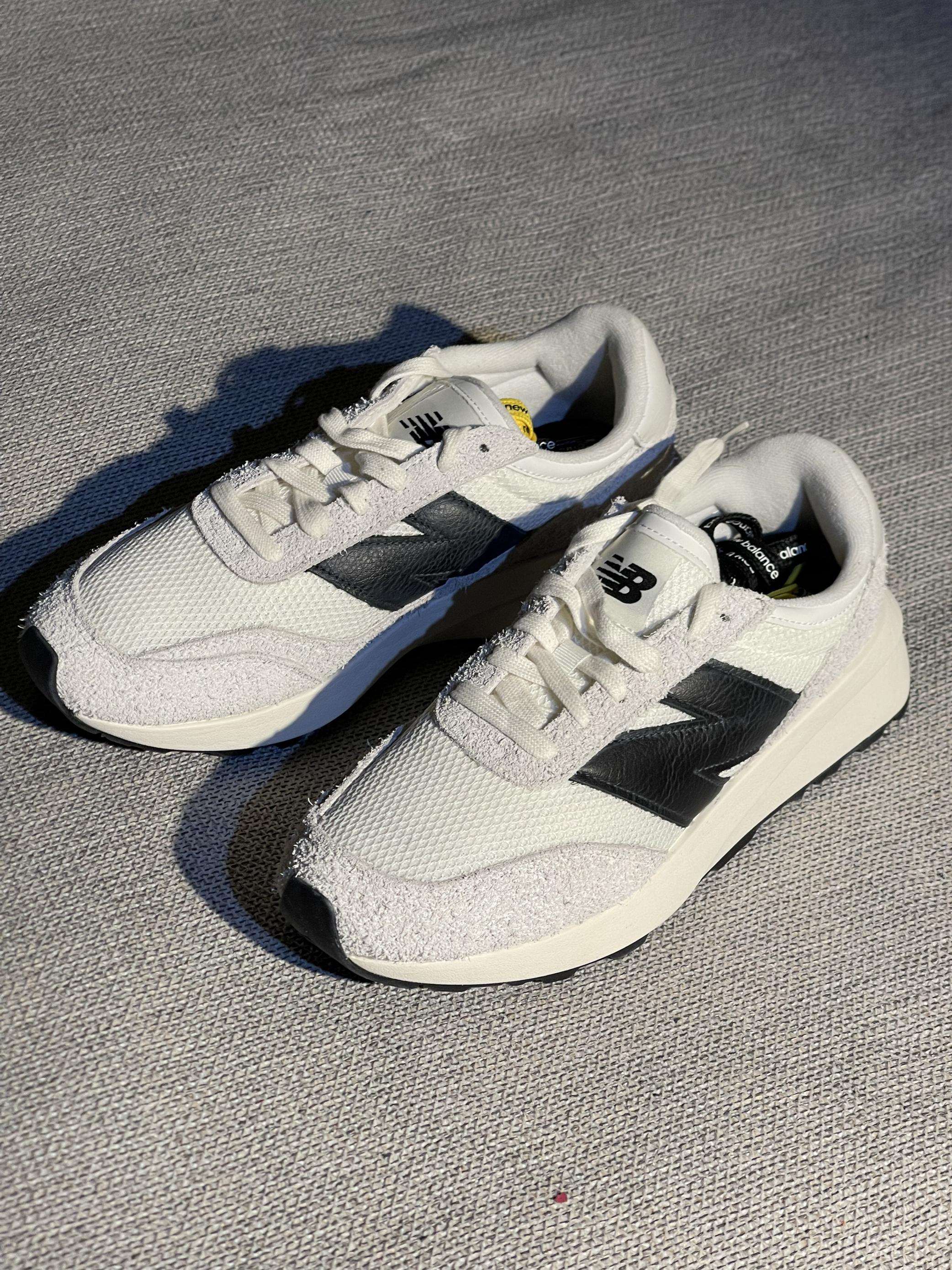 最近入手的这双NB与Niko and联名款百搭小白鞋🔥出门逛街休闲舒适度直接拉满了😌颜值超级耐看黑白的搭配,无论是搭休闲裤还是运动裤都非常好看🤩唯一的缺点就是不太好打理❌网布的鞋面长时间穿着也不会闷汗💦我最喜欢赠送的黄色鞋带,可以随意搭配😻这样高性价比的联名你会考虑吗🤔?一起聊聊吧💬