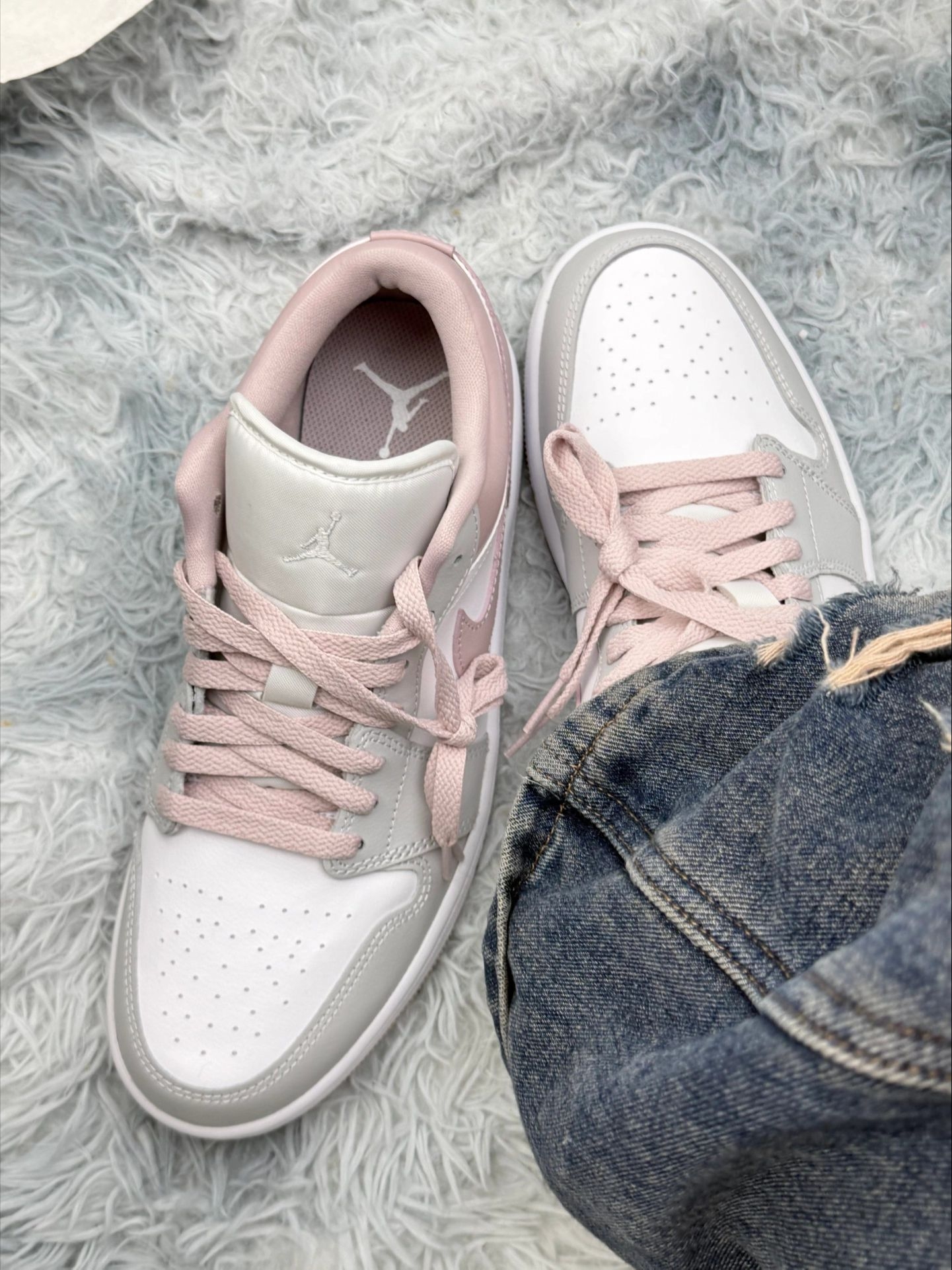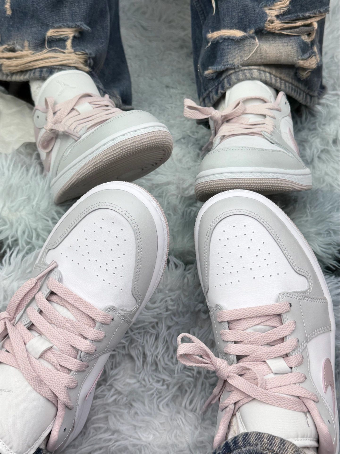 【裸粉AJ1】温柔系日常鞋,实穿感才是硬道理 🌸裸粉拼白,第一眼就戳人 配色温柔不张扬,配破洞牛仔裤刚好,日常出门不挑风格,属于怎么搭都不会出错的那种。 🧱荔枝纹皮革,质感扎实 摸起来不廉价,鞋型贴合脚面,不空荡、不晃悠。走路脚感偏稳,不是软弹到夸张的类型,但通勤走久了也不难受。 ⚠️缺点也说实话 · 鞋舌偏硬,前两三天会磨脚背 · 裸粉皮革容易沾浅渍,清理要费点心 · 基础款定位,实战性...