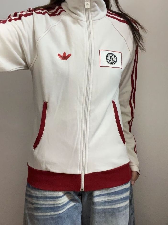 【这是一件 adidas Originals(三叶草) 的复古运动夹克,经典的白红配色与胸前的徽章设计】,由用户 爱吃杏仁炖肉 分享,来自甘肃。这是一篇来自识货社区的真实用户分享笔记。