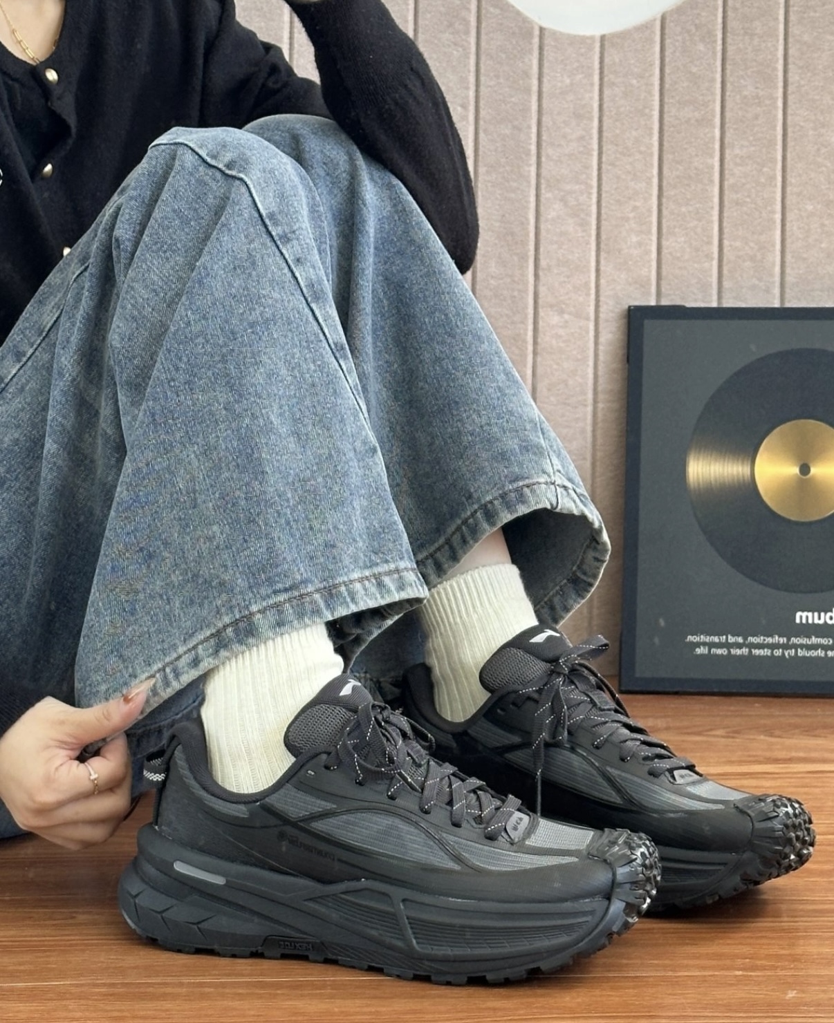 选户外鞋最怕浅色不耐脏,暗夜黑就完美解决啦~ 李宁溯行川黑色好搭,户外休闲都能穿💫 轻量设计走路不累脚,回弹感也蛮舒服的~ 抓地力强,碎石路湿滑路走起来很稳呀👀 反光细节很贴心,傍晚走路也安心