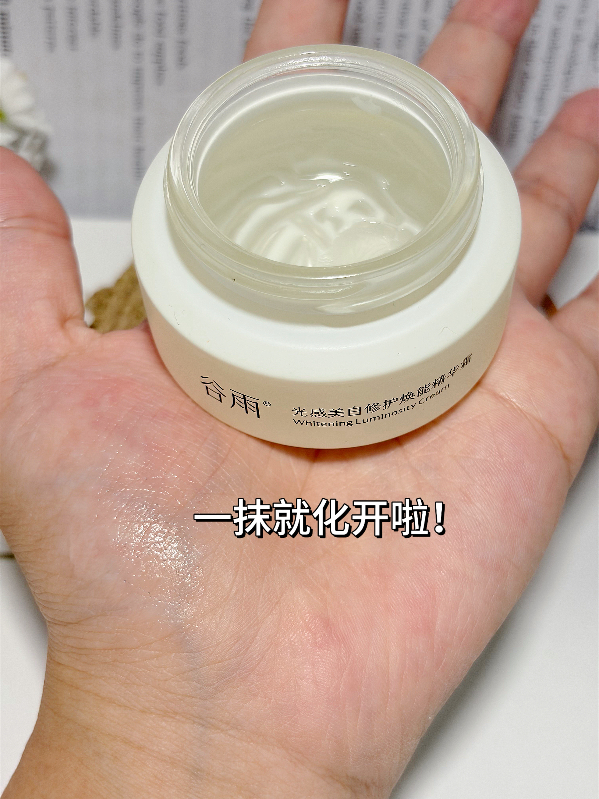 干敏皮美白救星!谷雨这罐真的绝了✅ ▫️质地:奶润乳霜 一抹化开,好吸收不黏腻! ▫️功效:美白+修护双buff 持证美白 提亮去黄 ▫️肤感:上脸软嫩 保湿力拉满 干皮本命👈🏻 ▫️适用:干皮、敏感肌、屏障受损、想美白的姐妹 坚持用下来 脸真的会变透亮!素颜也有好气色✨