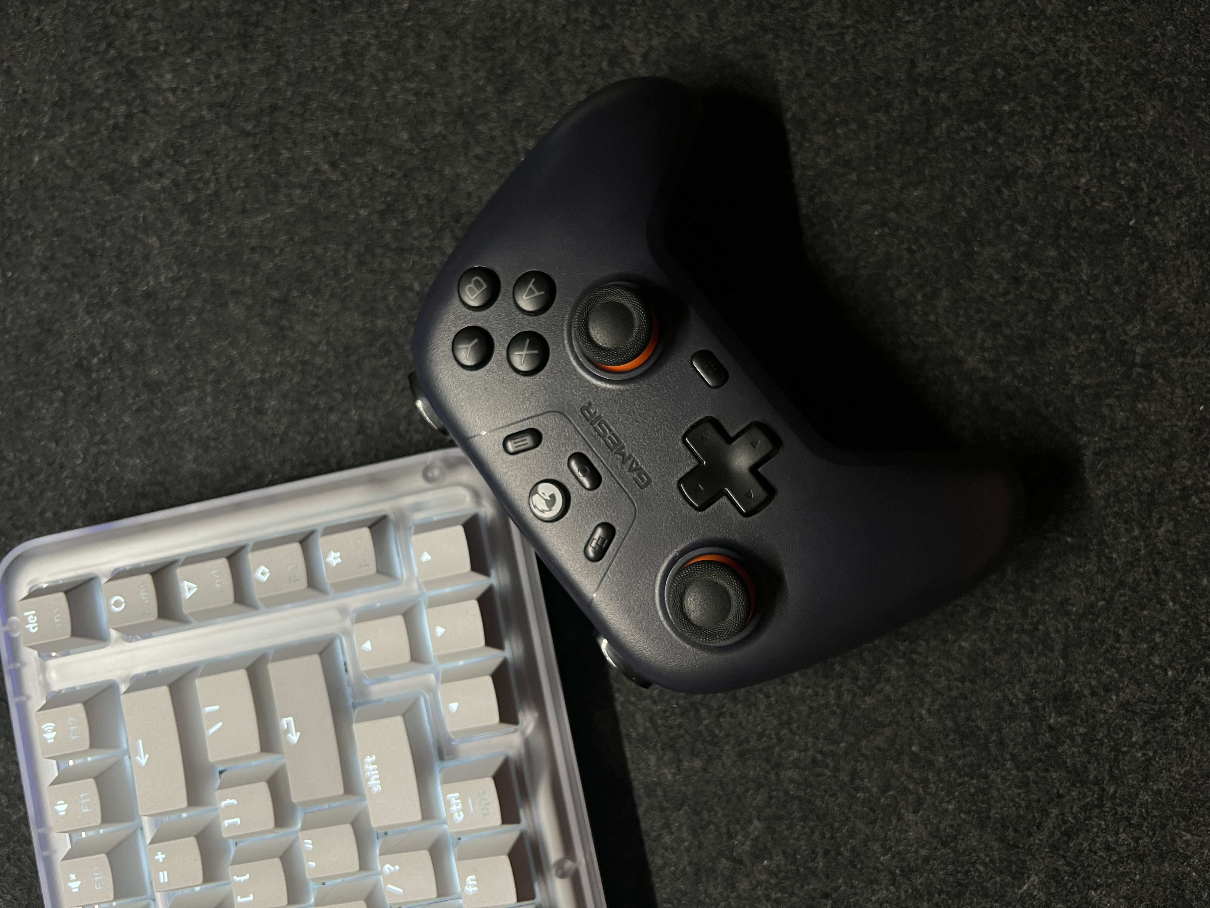 先坦白一下,这是我唯一的手柄,也是我桌上所有外设里用得最少的一个。 平时要么搓手游,要么端游键鼠,手柄基本吃灰。说实话,我都快忘了小时候攥着小霸王那个方方块、狂搓“上上下下左右左右BA”的快乐了。 这把是盖世小鸡的启明星一代。当初买它,纯属跟风玩《黑猴》,结果你也猜到了——买了=玩了,到现在还在吃灰。 更打脸的是,我以为自己从小玩小霸王长大,手柄上手还不是闭着眼的事?结果搞了半天,连摇杆视角...