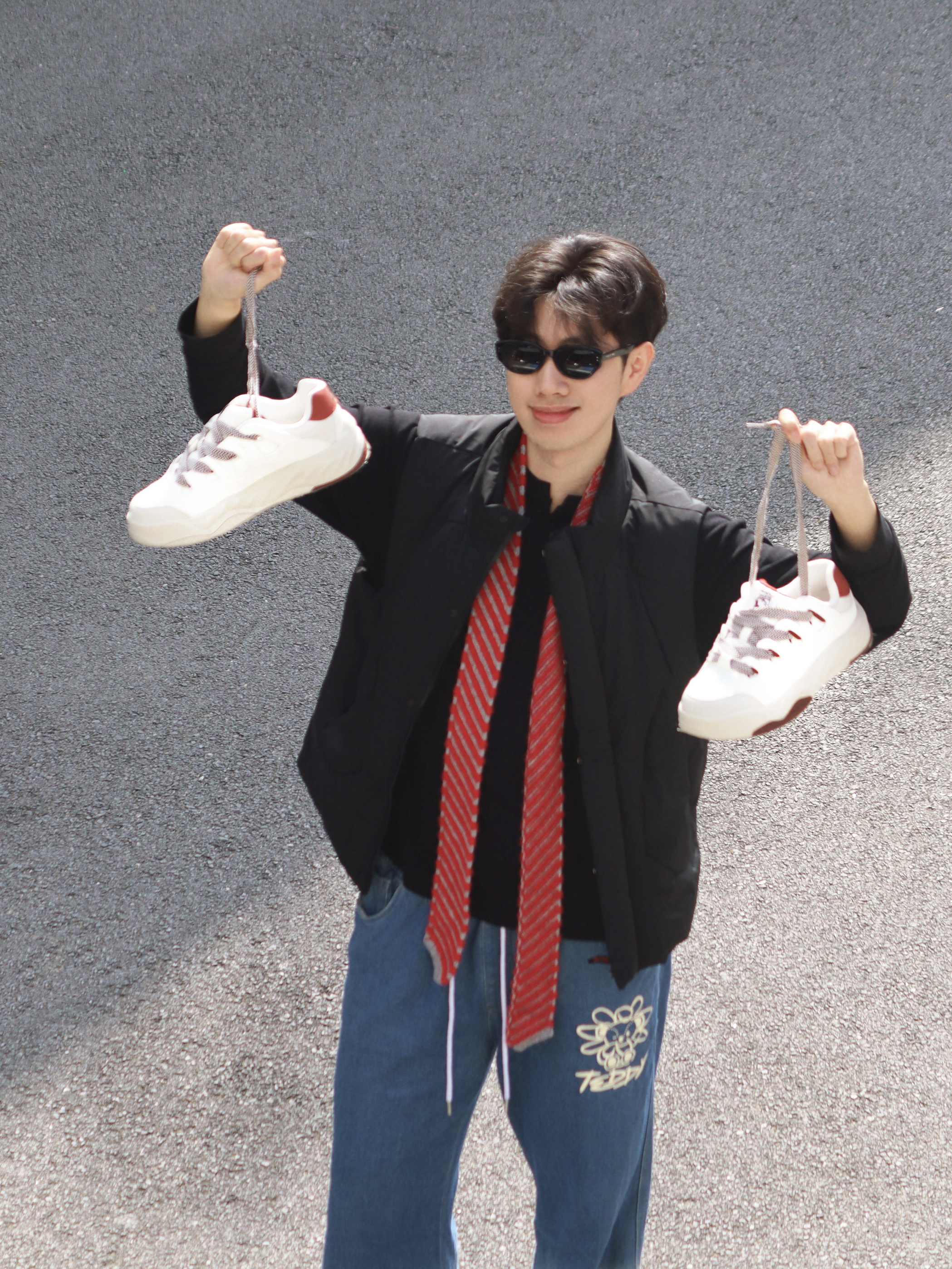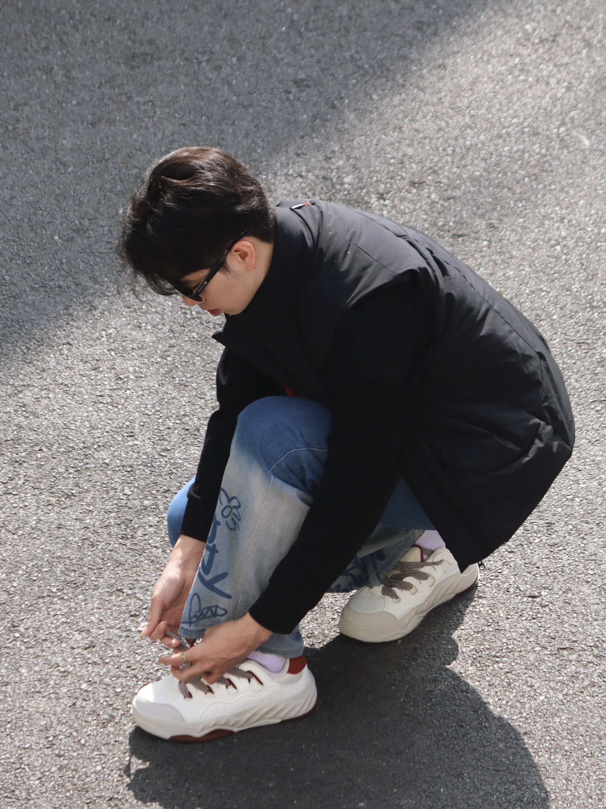 🧍🏻♂️氛围感懒人穿搭💥黑红配色直接把「骏马奋蹄」的穿在脚上,简单干净但走在街上回头率也拿捏📈 👔上衣:一件廓形黑色羽绒背心+ 同色系内搭 + 叠搭一条红领带点亮全身🧨不用费力想搭配,过年见长辈、约兄弟打球都能穿,懒人赢麻✌️ 👖下装:从深蓝到浅蓝的渐变自带层次感,裤腿的手绘小花图案让整体不会太沉闷👌 👟鞋子:白红撞色复古鞋👉 新年安排它!米白色鞋身+酒红色细节,和新春的「骏马奋蹄」🧨完美...
