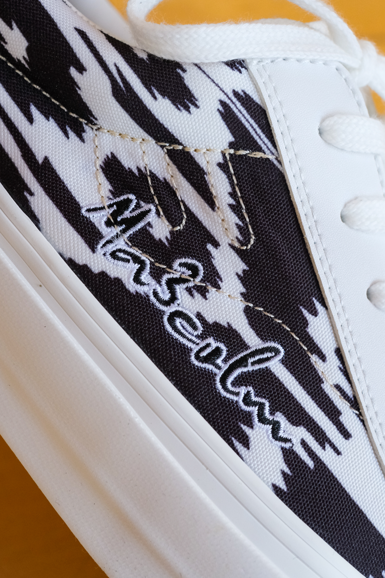 春夏交替的季节,是时候换上轻质的帆布板鞋了。分享下404与卡米然的合作款,黑白撞色真的不嫌多,简约耐看又好搭配。 鞋面是帆布与皮革拼接,质感和透气也是兼备上了。外侧还有Ma3colm的刺绣,细节蛮用心的。 轻便灵活,学生党上班族通勤搭配很帅。你们觉得这双404的颜值怎么样?
