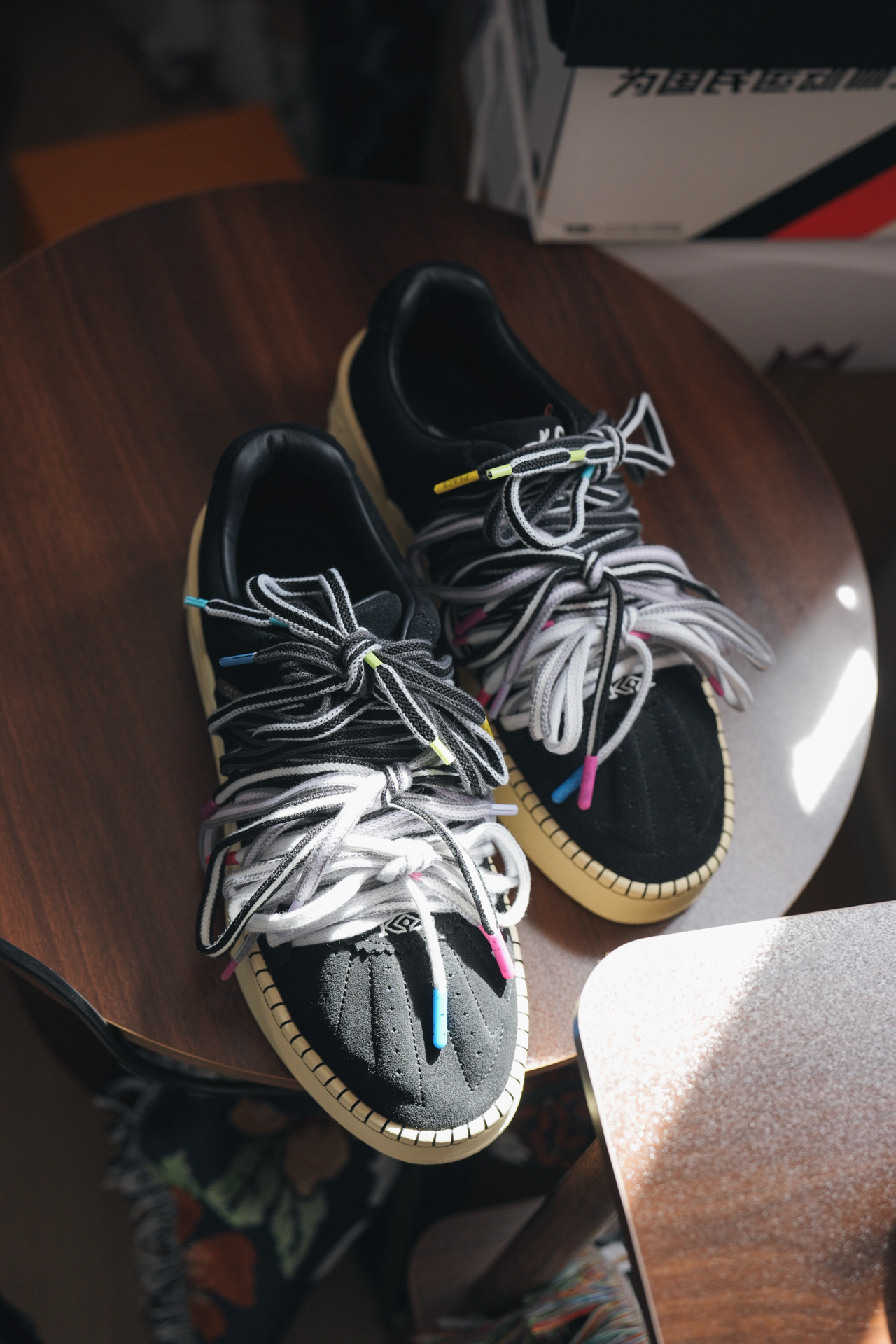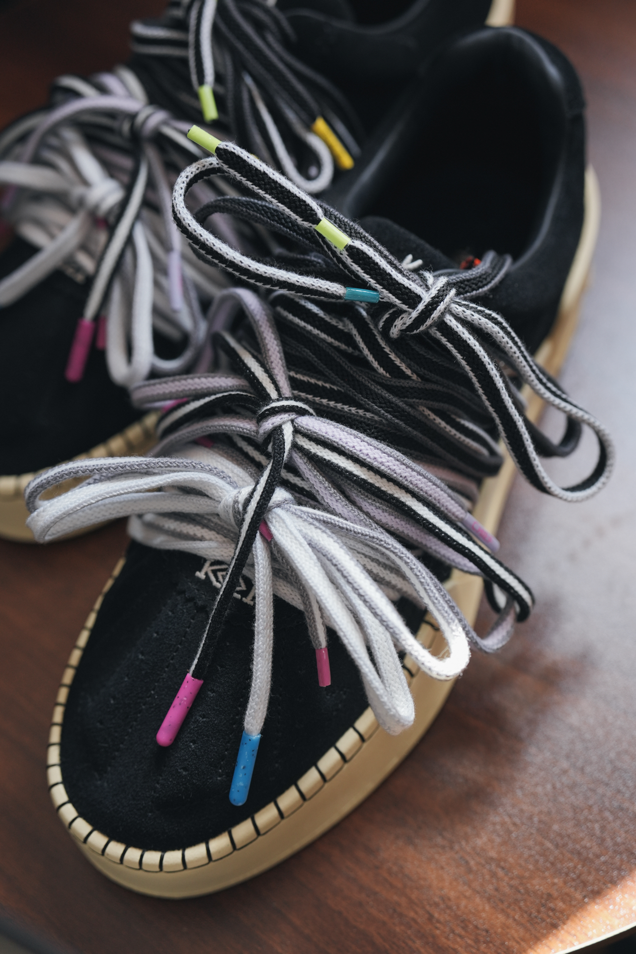 鞋身上3幅鞋带的设计真的很有特点,收了一个浅色后又收了一个黑色的!