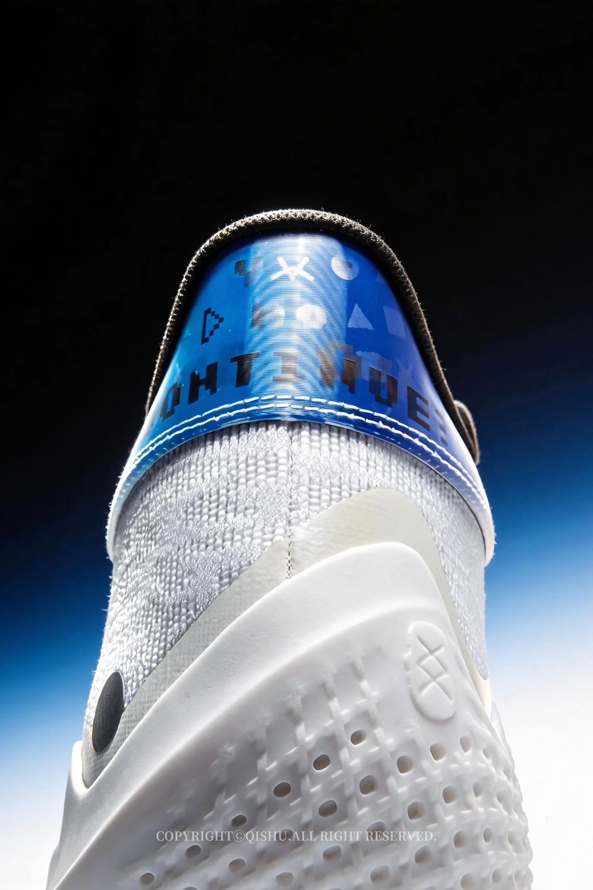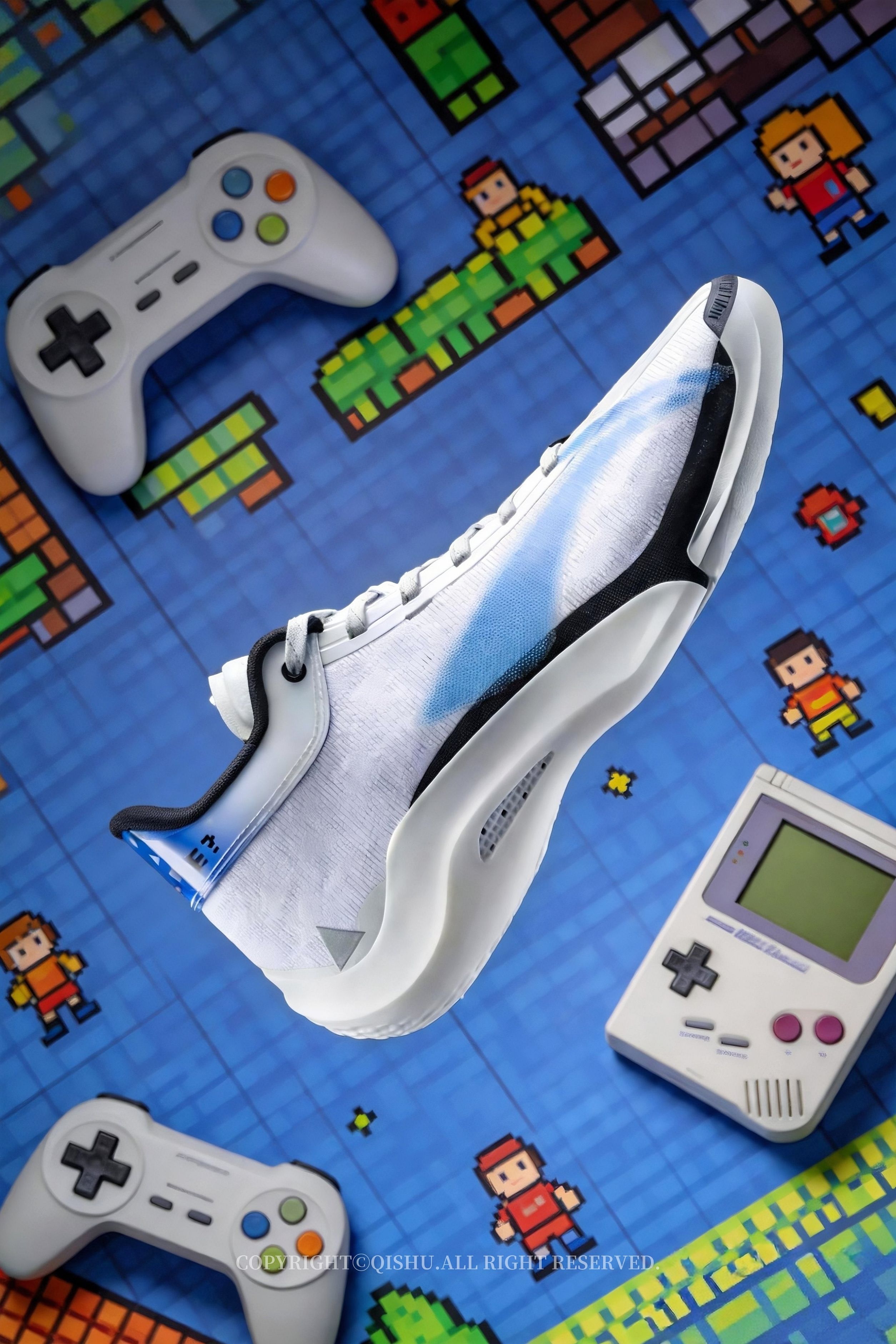 看到后跟闪卡那一刻,DNA动了——“YES or NO”“CONTINUE or GAME OVER”,像极了街机投币后的灵魂拷问。这双杨瀚森全明星同款,把游戏手柄的三角、方块、圆、叉直接搬上鞋身,白蓝配色干净又有少年感。 鞋头绒面灰和鞋舌同材质,细节拉满。鞋垫还藏着“是否继续”的选项,穿上它,每一步都像在按开始键。全掌疾䨻中底韧弹到位,启动不拖沓,落地也稳。鞋面换了新材质,被踩了也不心疼 打球累...