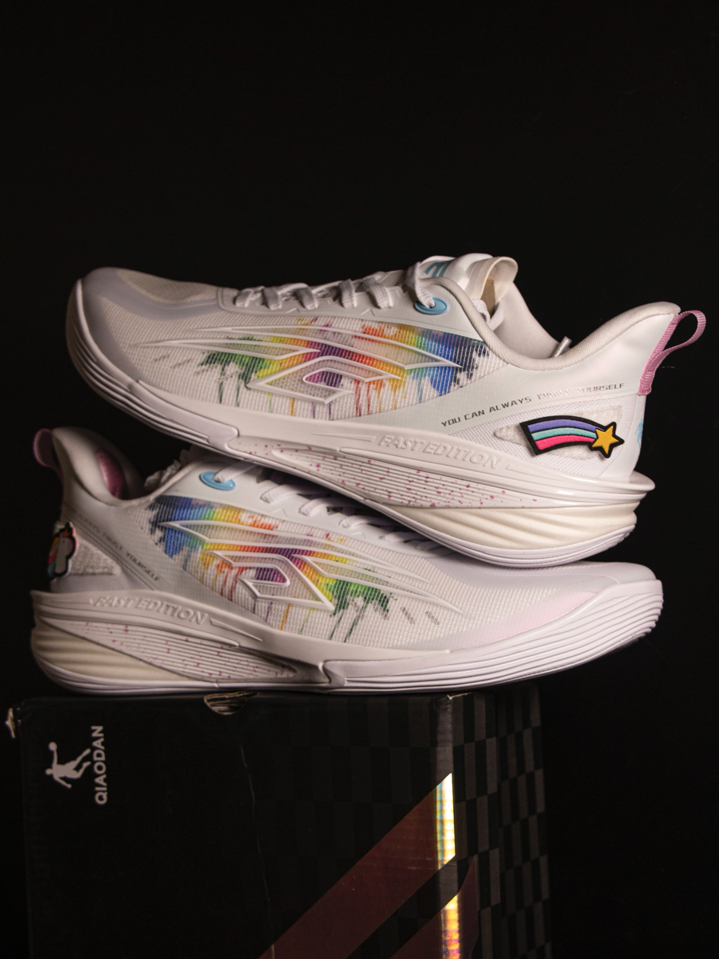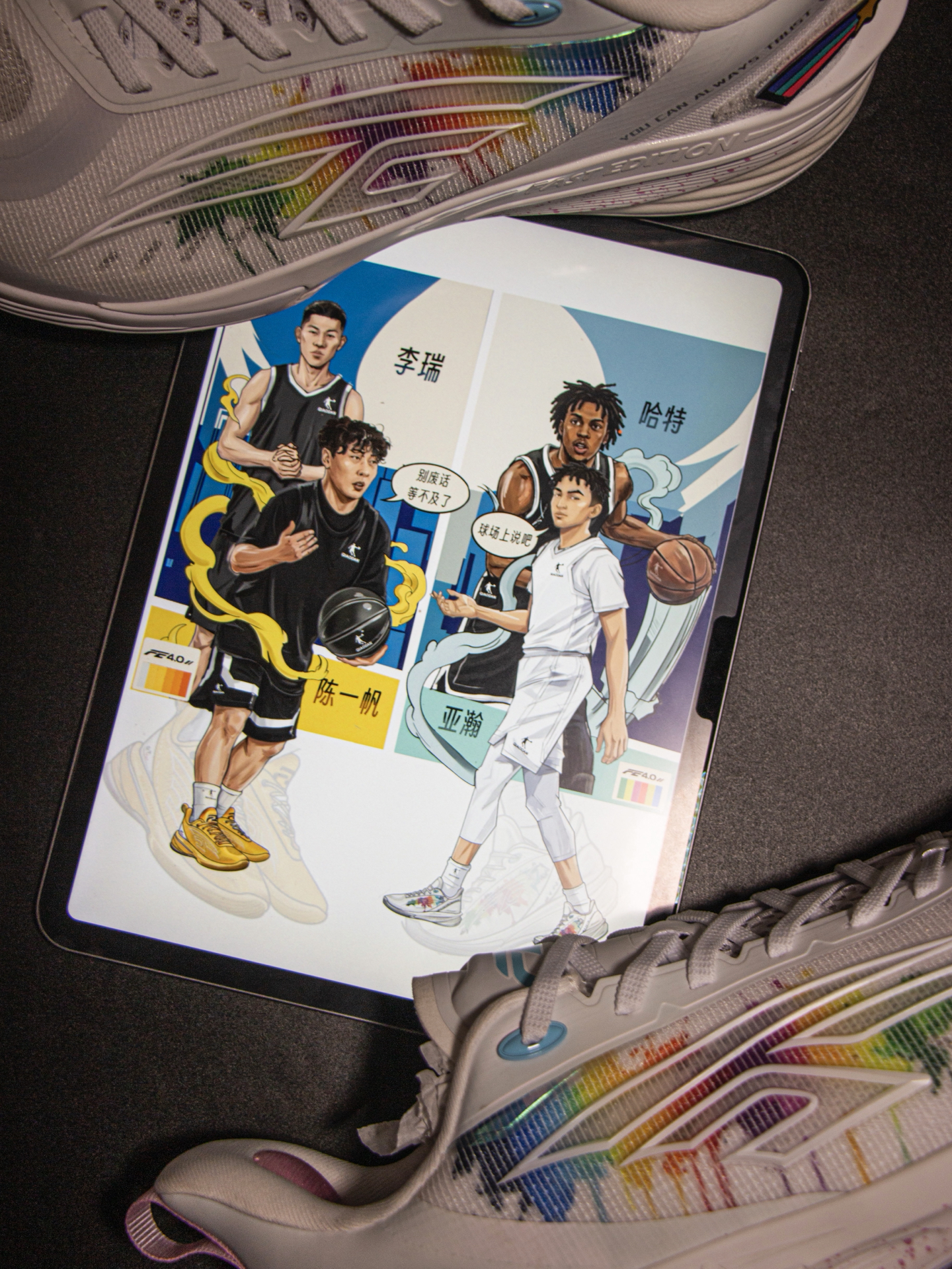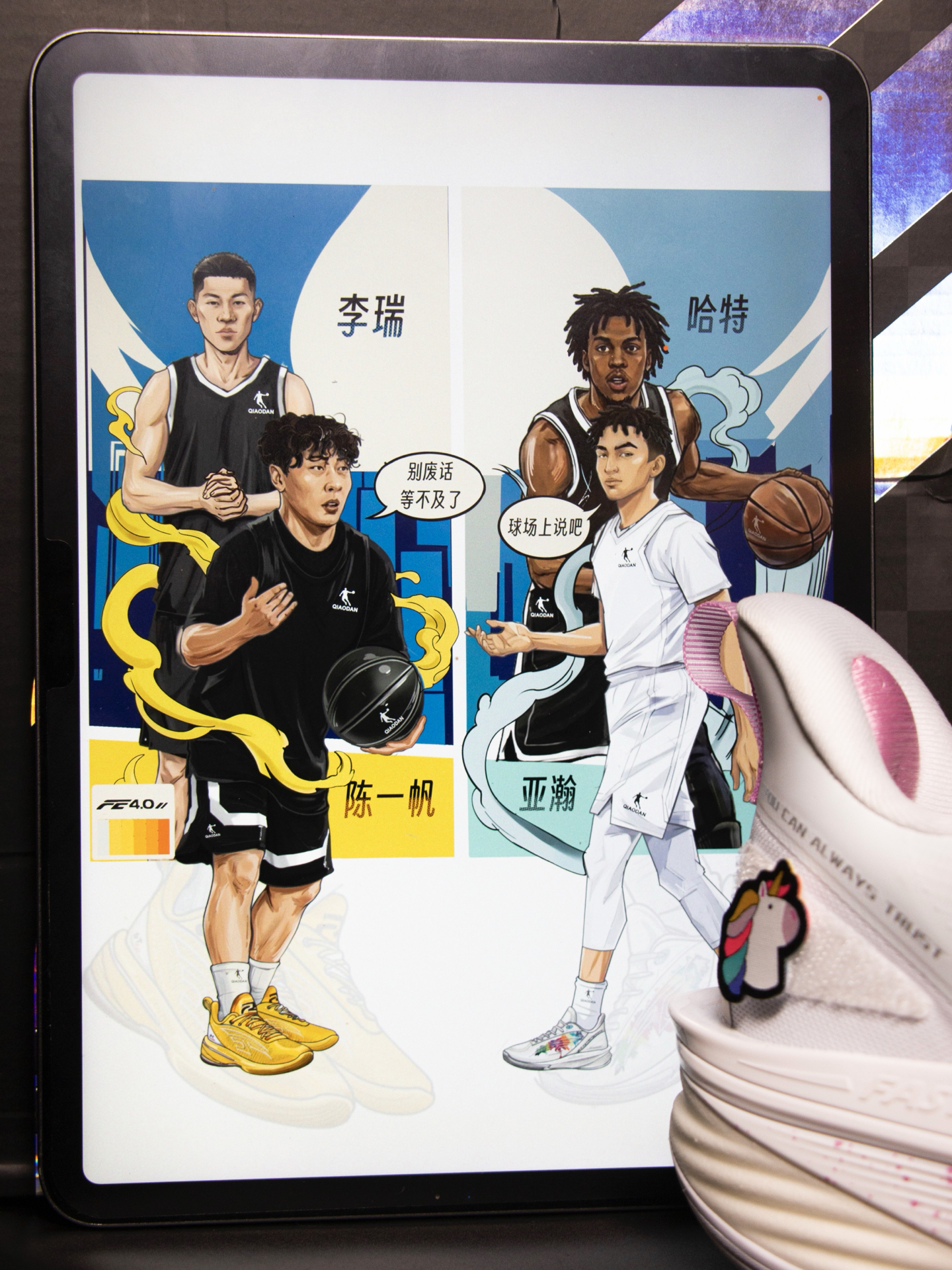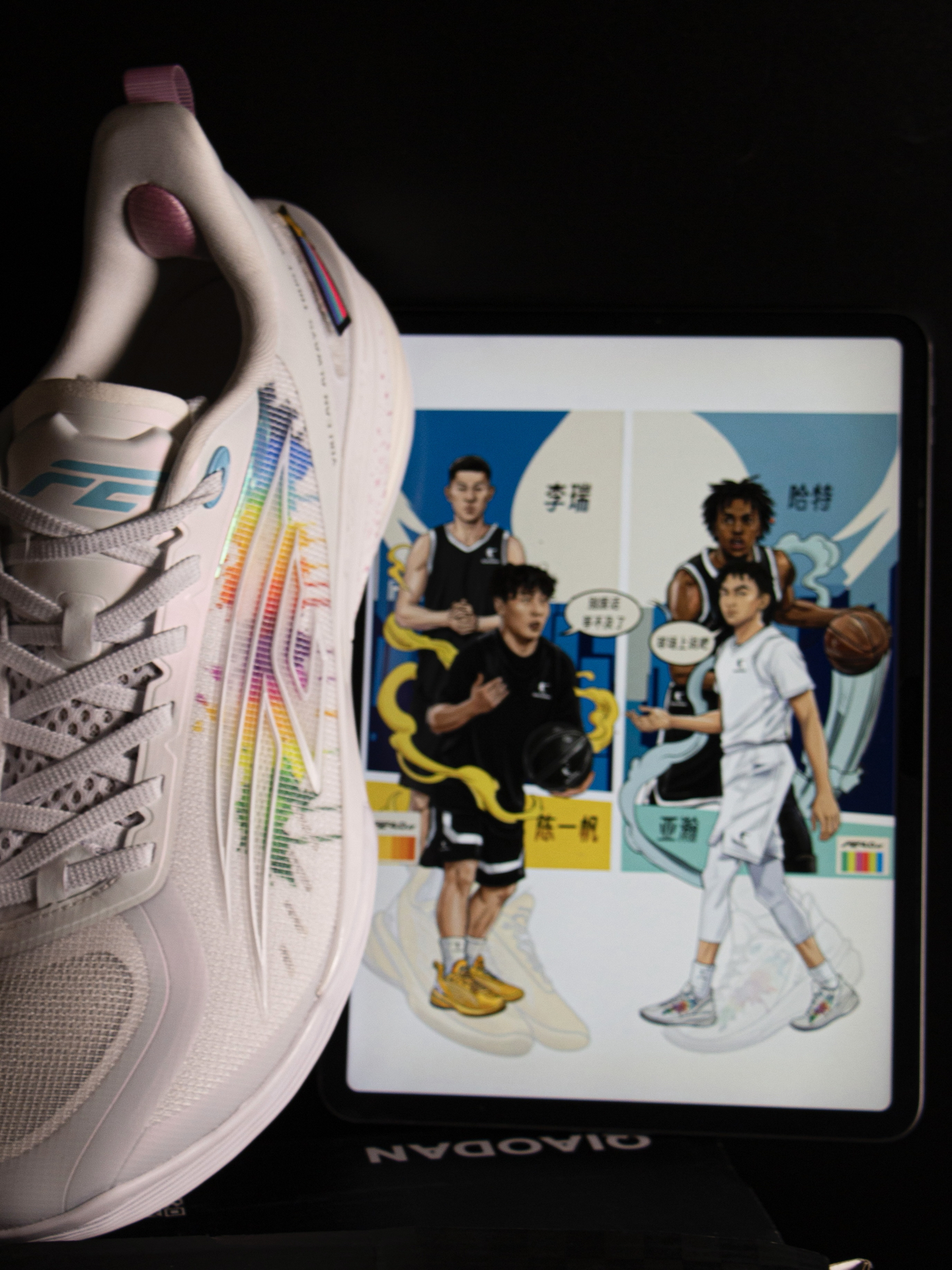 近期街球圈 双人百分大战关注度很高 其中 亚翰×哈特 VS 陈一帆×李瑞 这组我也看了尤为精彩 同时他们脚下的中乔FE4.0 也是前一阵子入手过 印象很不错的实战鞋 今天再入手一双彩虹配色 朋友画的这幅实战风插画 以云雾氛围突出速度感与对抗强度 还原场上对抗与装备细节 非常酷忍不住拍摄一组 你们会喜欢这种球鞋插画吗 @乔丹QIAODAN官方