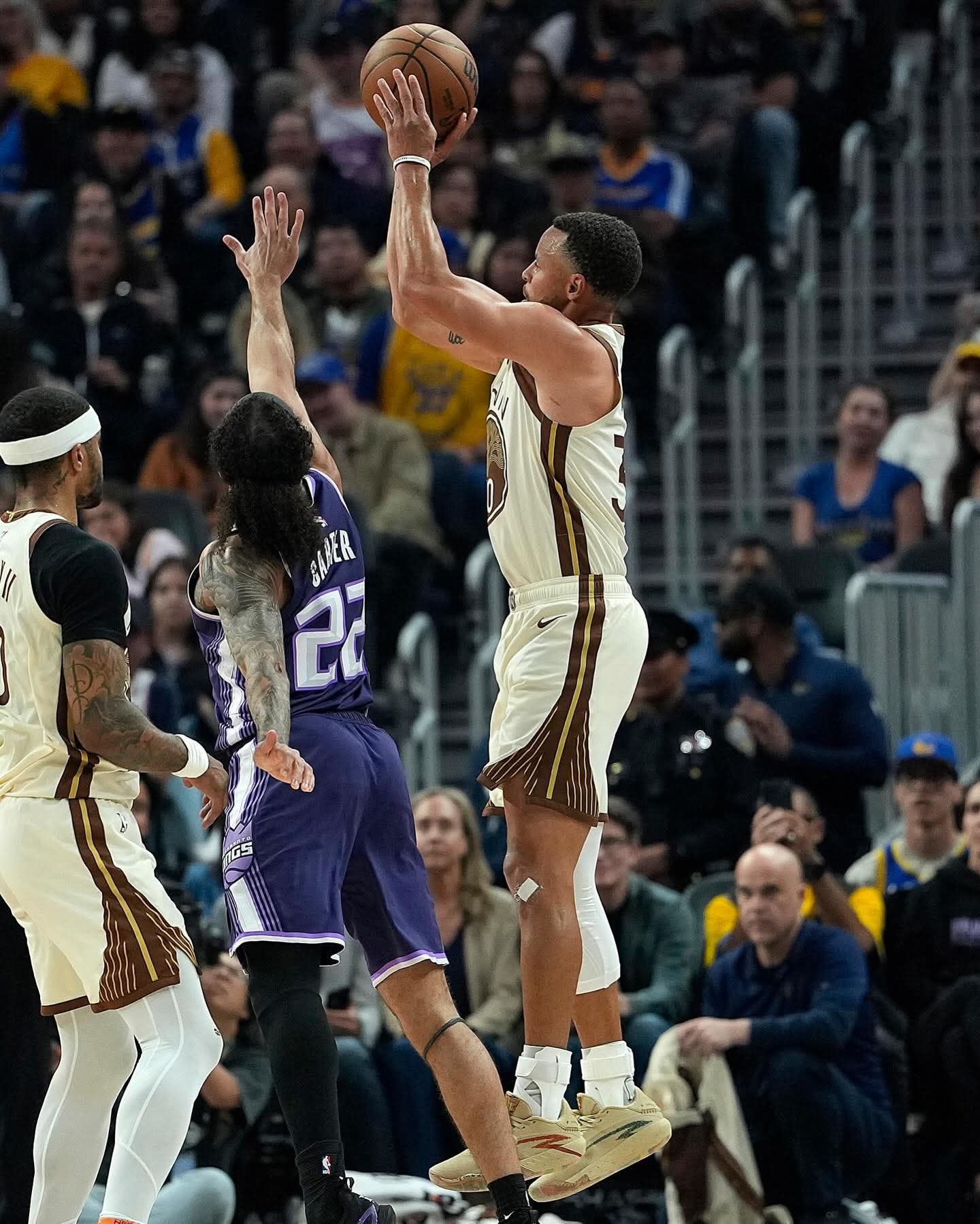 家人们谁懂啊!库里上脚欧文的安踏KAI 3了!! 两大控球之神的梦幻联动直接把球鞋圈炸穿! 这双全新配色的KAI 3,颜值直接拉满,米棕主调+细节点缀,复古感拉满,不管是实战还是日常穿搭都绝了! 库里亲测上脚,欧文签名鞋的实力不用多说,缓震、包裹、启动全在线,球场实战神器! 这波跨界同框,直接把安踏的排面拉满,国货球鞋越来越顶了!