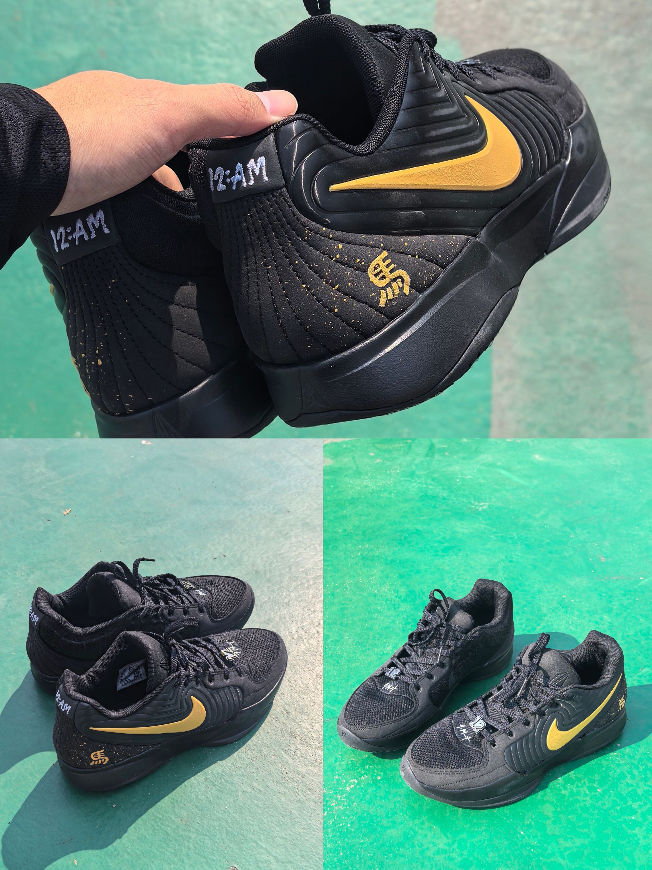 这双Nike Ja2是新年惊艳我的实战黑马这鞋子黑金配色太酷了!鞋面的质感透露着低调又奢华 这双鞋穿起来的包裹性很不错,鞋面的编织材料贴合脚型,系鞋带后不会滑动。我感觉起跳落地的缓震充足落地不震膝盖,前掌的反馈也够弹,突破时能明显感受到助推感。在室外塑胶场做急停变向,鞋底纹路没有打滑 参考尺码:我平时穿42码,但这双得选大一码就很适合实战局:突破流、跳投党都能驾 驭,适合室内外各种场地。