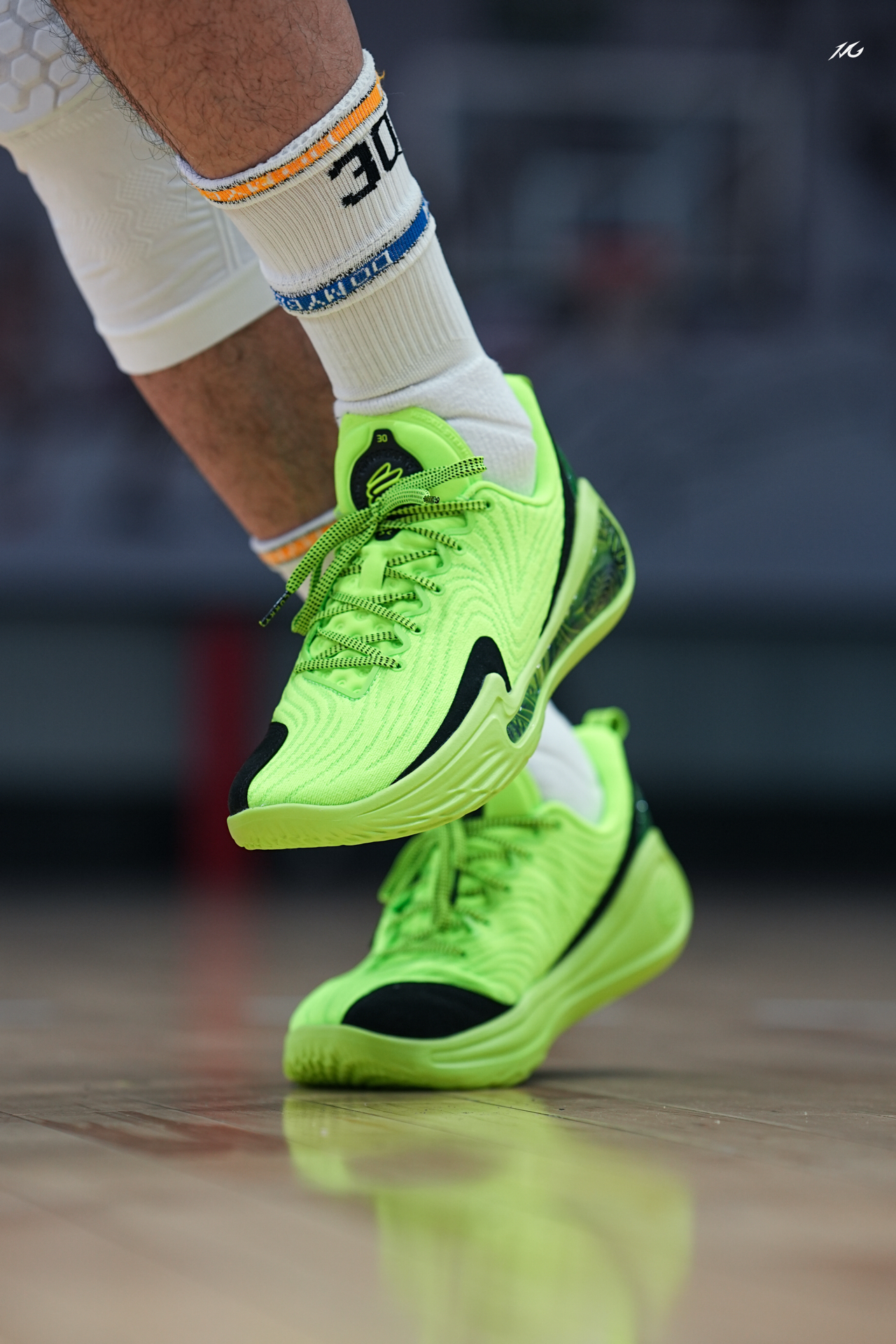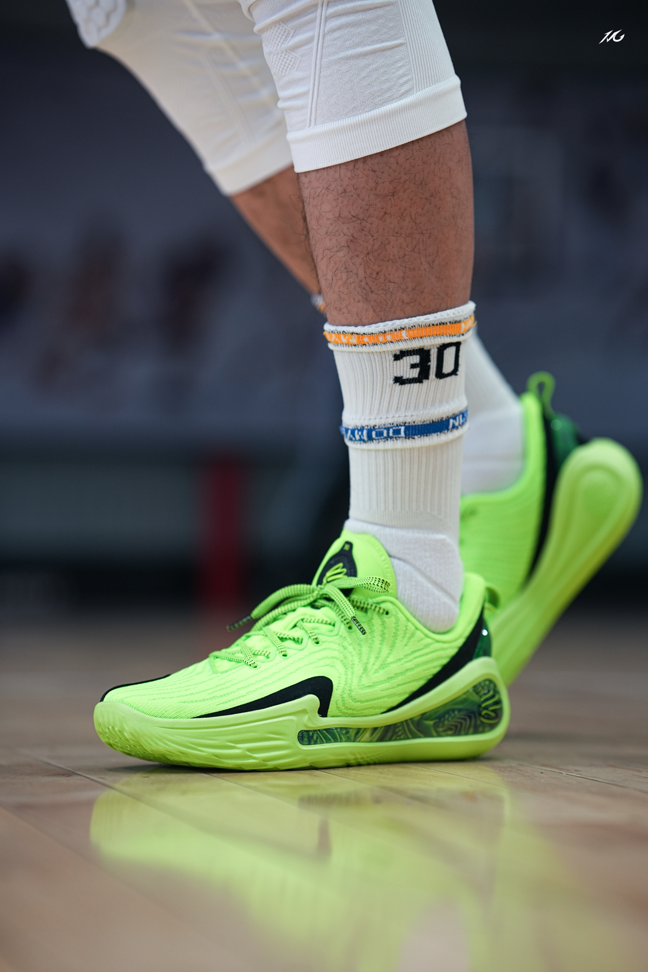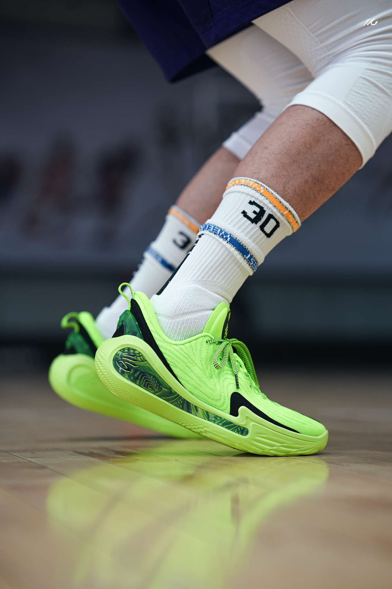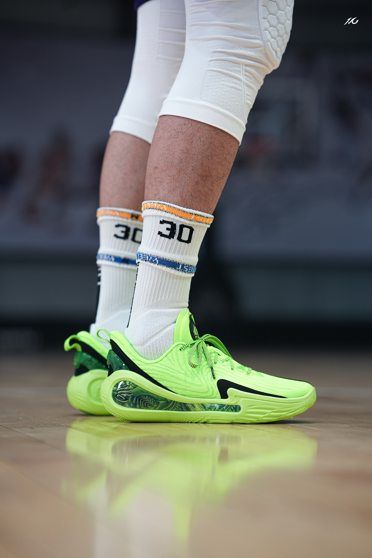 自从库里解约安德玛后,它曾经的签名鞋也是开启了超级折扣模式,299买的库里12绿色其实我蛮喜欢的,多巴胺很饱满的配色哦! 上脚体验首先推荐尺码尽量大半码哈,内长不是很够要注意,而且我觉得这鞋还是为库里服务的,更适合需要戴护踝的选手穿着,缓震也更适合小体重跑动型射手. 你们觉得上脚效果咋样?