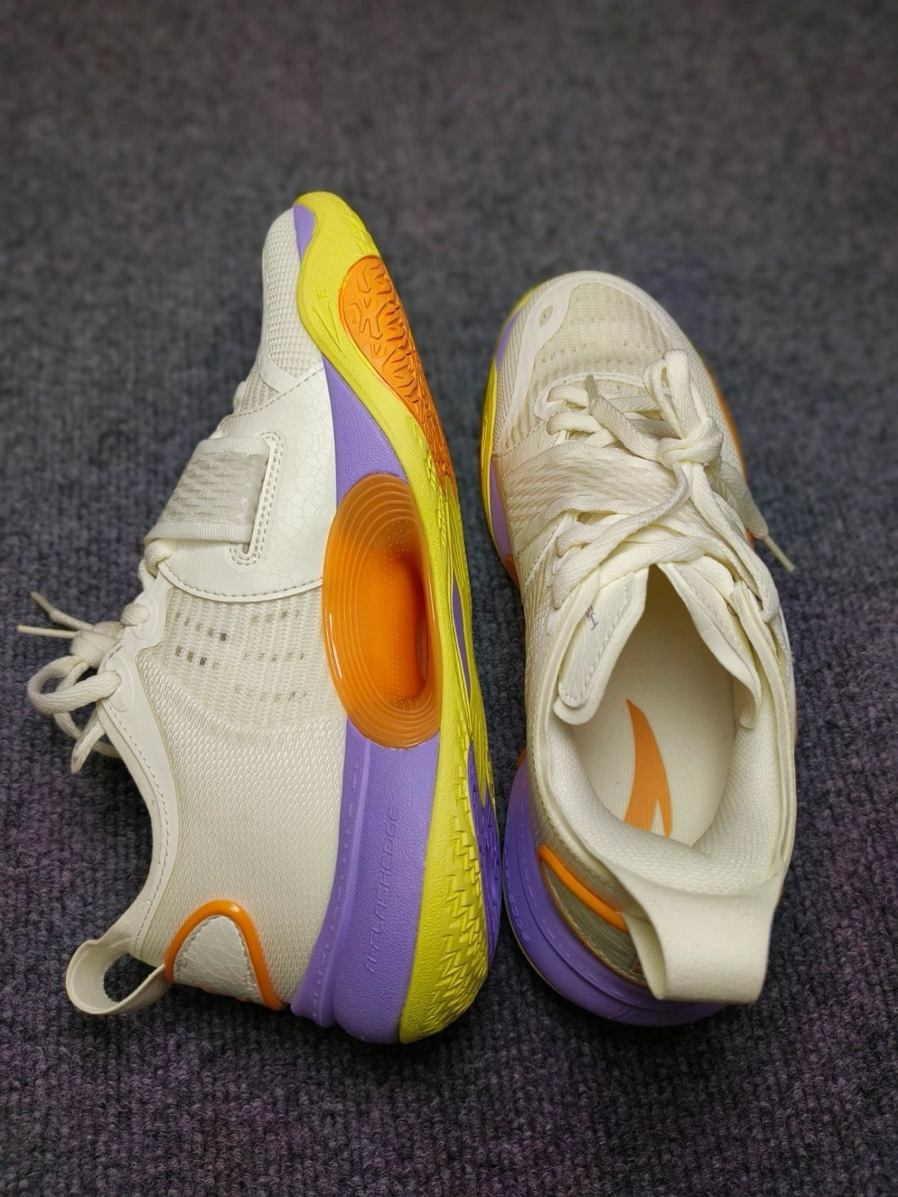 今天和大家分享的这双篮球鞋是安踏水花💦6我是被它的颜值和价格吸引过来的,而且多巴胺配色真的很让人心动💓 鞋身设计了环绕式绑带,包裹性还是挺不错的;鞋面使用网纱材质,透气性很好;镂空中足抗扭片不仅减轻了鞋身重量,而且还提升了稳定性;鞋底使用了功能外底纹路设计,耐磨性和抓地力都🆗