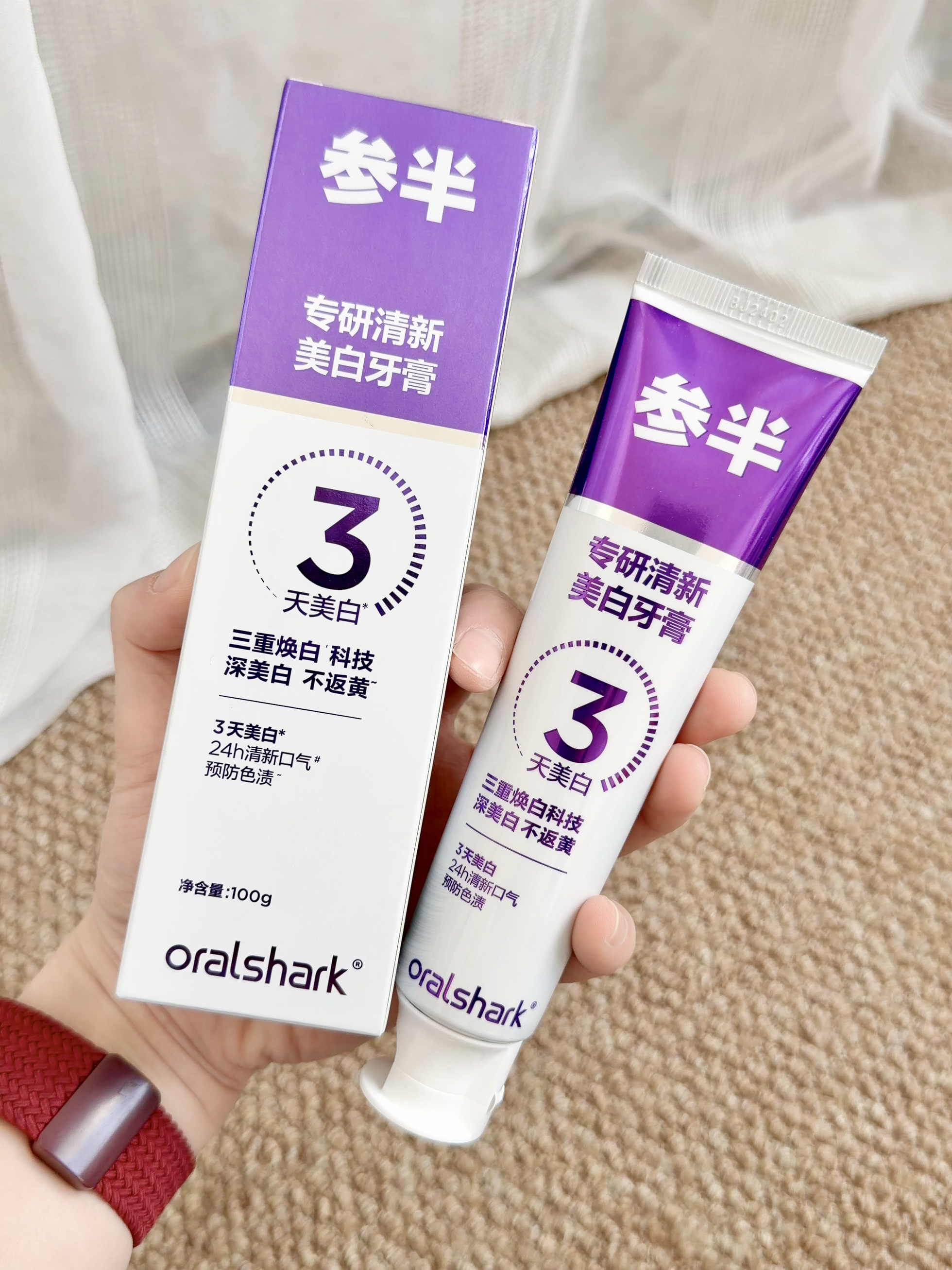 有没有宝子和我一样很羡慕别人的牙白白的 也没有口臭口气什么的 最近发现了这个参半色修美白牙膏✨ 紫色晶体质地很特别里面还有小颗粒 颜值高还好用 刷牙温和不刺激牙龈 味道也清新 泡沫也很绵密 而且刷出来的泡沫是蓝色的! 以紫修黄 3重美白锁白👍 用了几天牙齿🦷好像尊嘟白了泥😌 参半/NYSCPS 我尊嘟喜欢噜~ 平价也能轻松拥有亮白笑容!