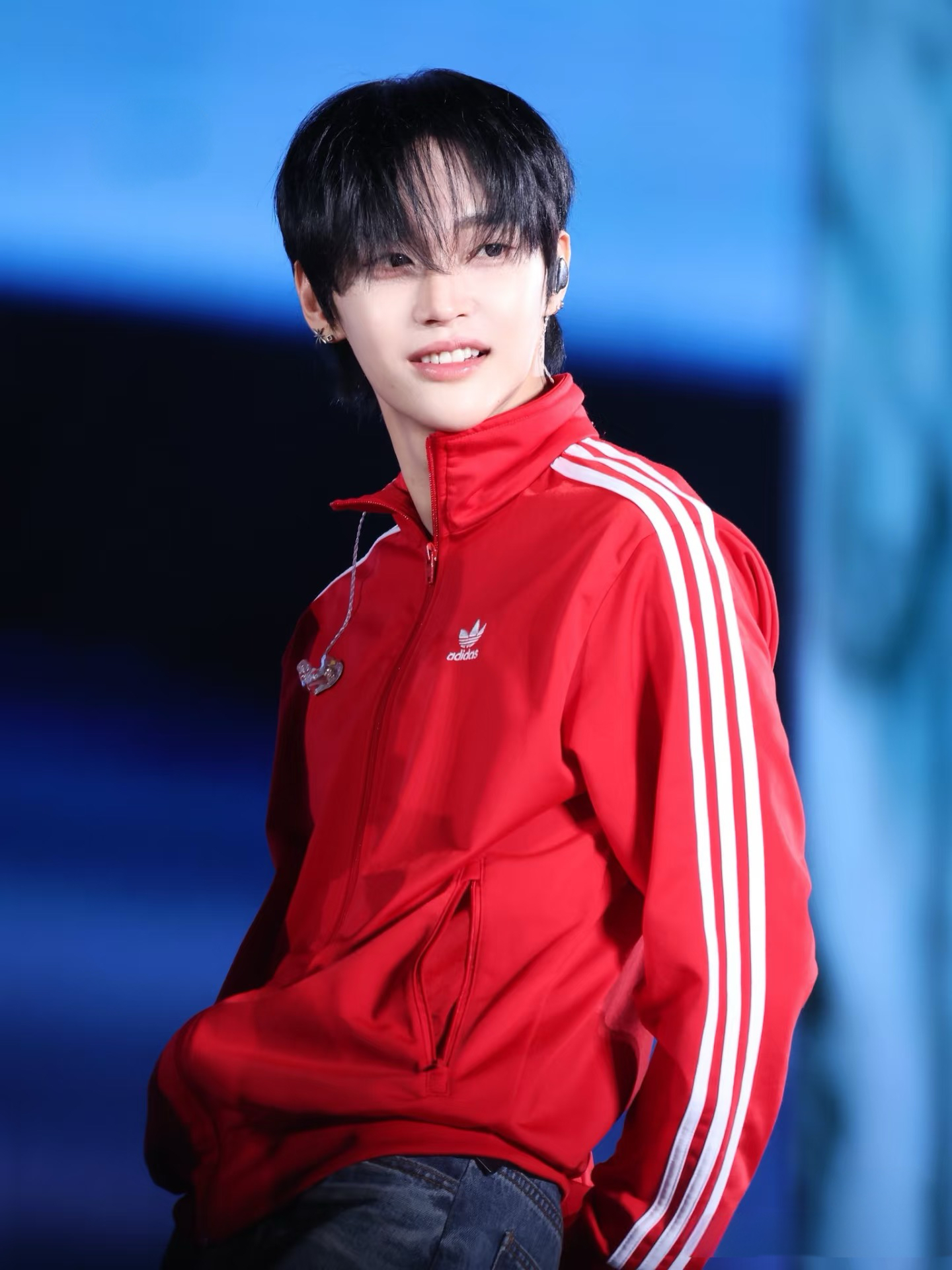 朴元彬这套红阿迪穿搭简直是杀疯了!经典复古运动外套,正红色衬得肤色超透亮,三杠设计自带怀旧滤镜。立领版型利落精神,拿捏住满满的少年感,活力值直接拉满!