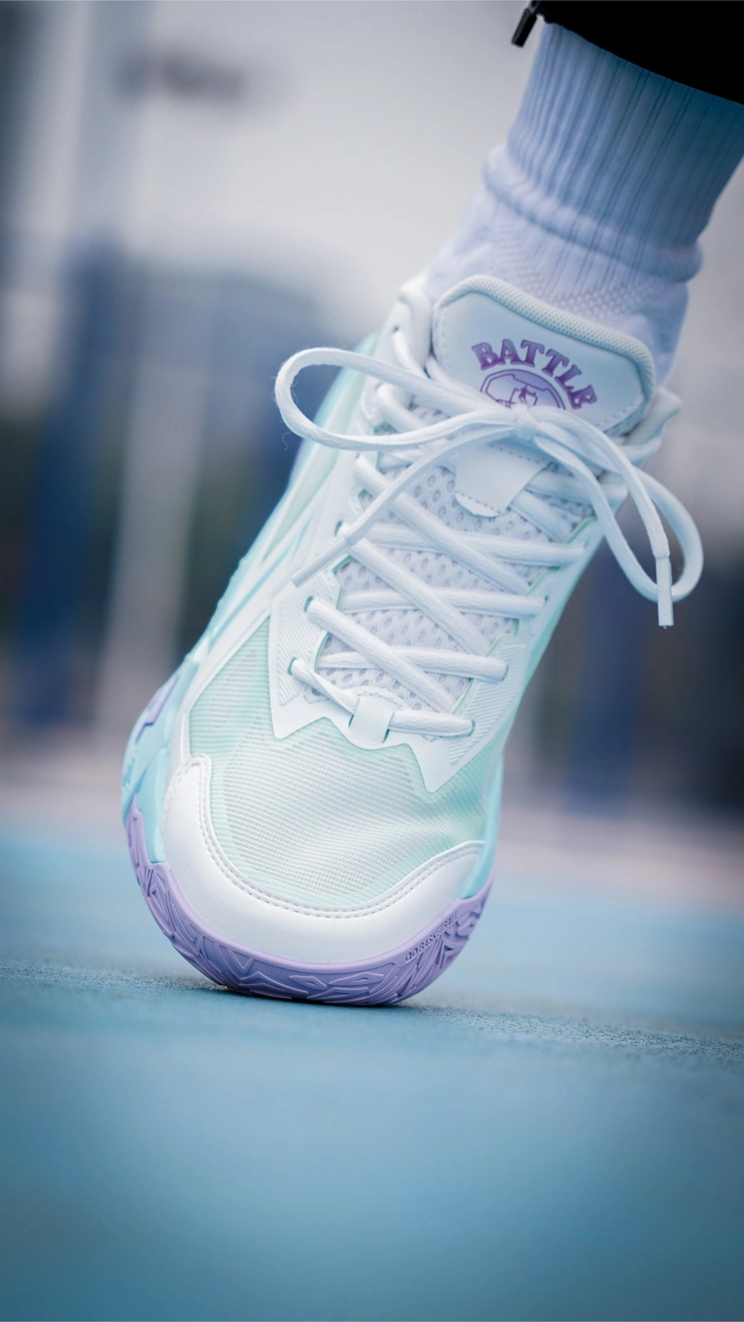 现在这天气打外场是真舒服,给学生们安利这双 battle系列球鞋,价格不贵但颜值属实不低,复活节既视感的蓝紫渐变色,上脚满满活力。 这外底纹路看着就很粗犷,实际也是比较硬的,外场水泥地也没啥问题。鞋面也是大面积的网纱结合局部加固,我前天20°打了两小时,透气性表现不错。 中底咻轻速,也是比较软弹取向,缓震极限适中,室外打不至于震脚。2张左右,性价比不赖~