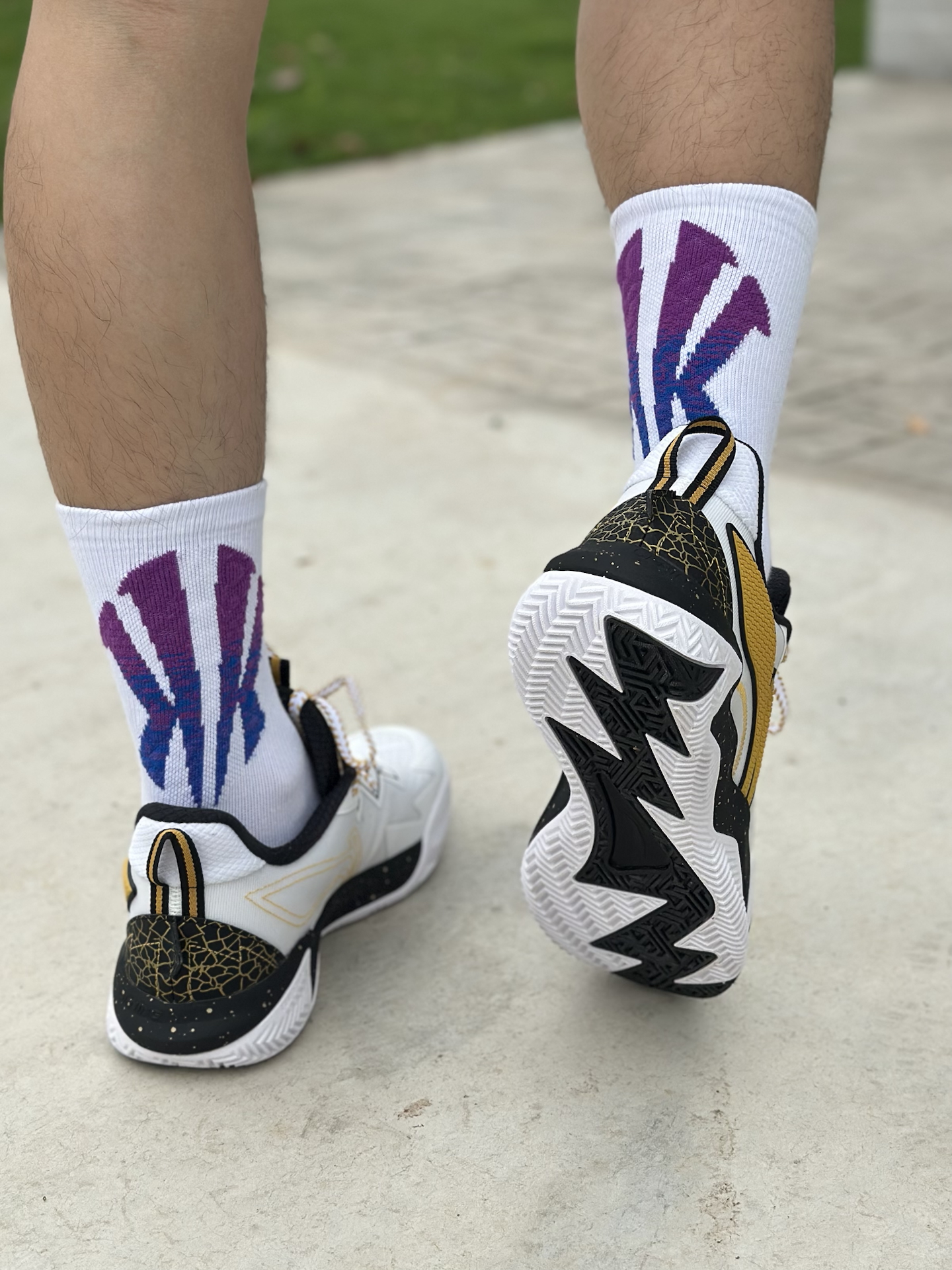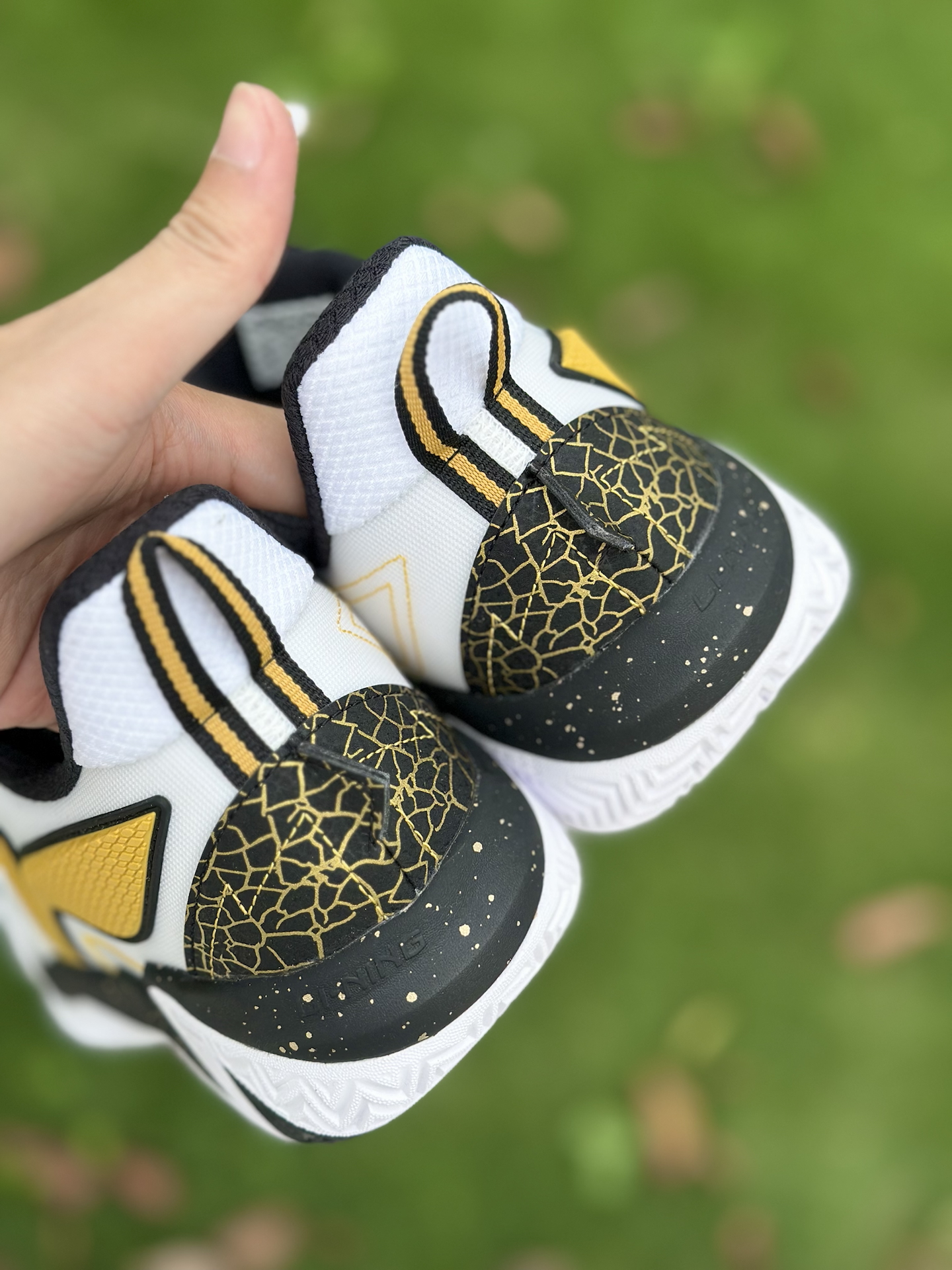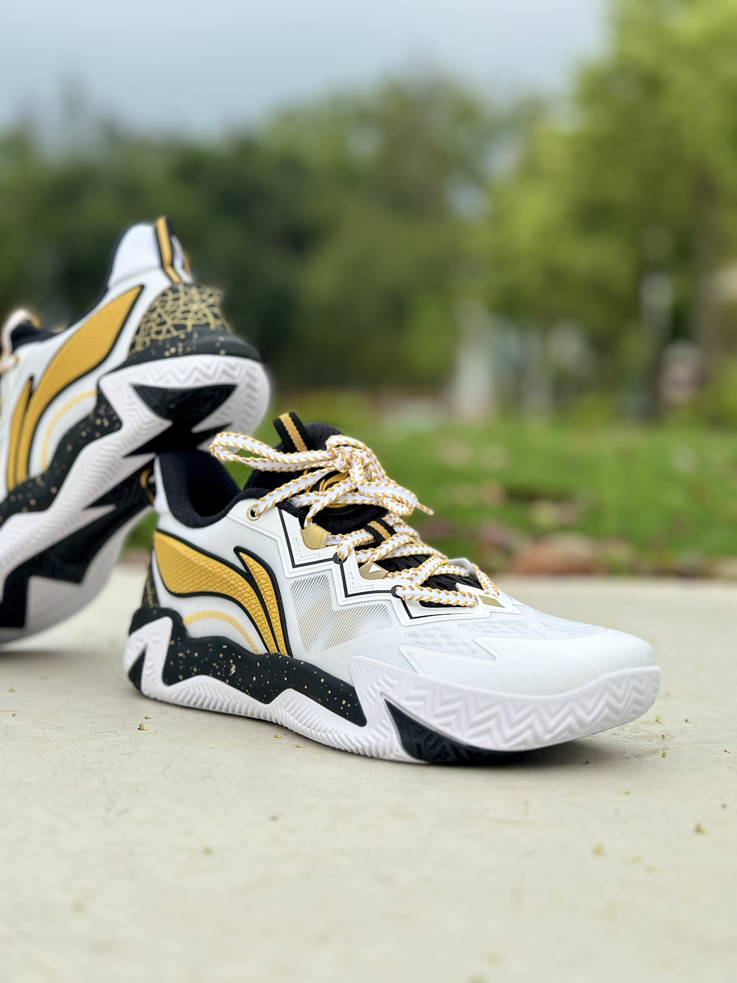 李宁儿童疆域2这款白金黑的配色球鞋确实非常有质感,黑金点缀显得大气 鞋身侧面的李宁LOGO采用了金色描边,鞋带采用了白黄相间的编织设计,增加了层次感和精致度✅ 搭载李宁常用的轻量发泡中底,脚感偏弹韧,跑跳训练都ok