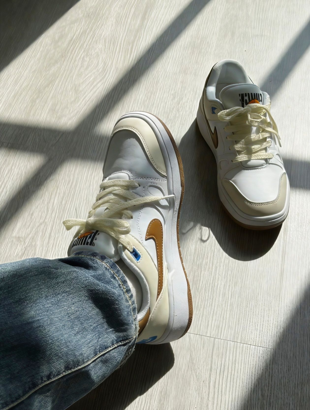 分享一双超好穿的Nike低帮板鞋,日常上学、上班通勤、周末出门逛街都能穿。棕白褐这个配色真的太耐看了,复古又高级,配牛仔裤、休闲裤都特别搭。鞋面是软皮革的,好打理还透气,鞋头有透气孔,穿久了也不闷脚。鞋底软软的,走路久了也不磨脚、不累脚,橡胶底还挺防滑耐磨,整体脚感特别舒服。低帮版型很利落,上脚显利落,日常穿完全不挑衣服,百搭又实穿。