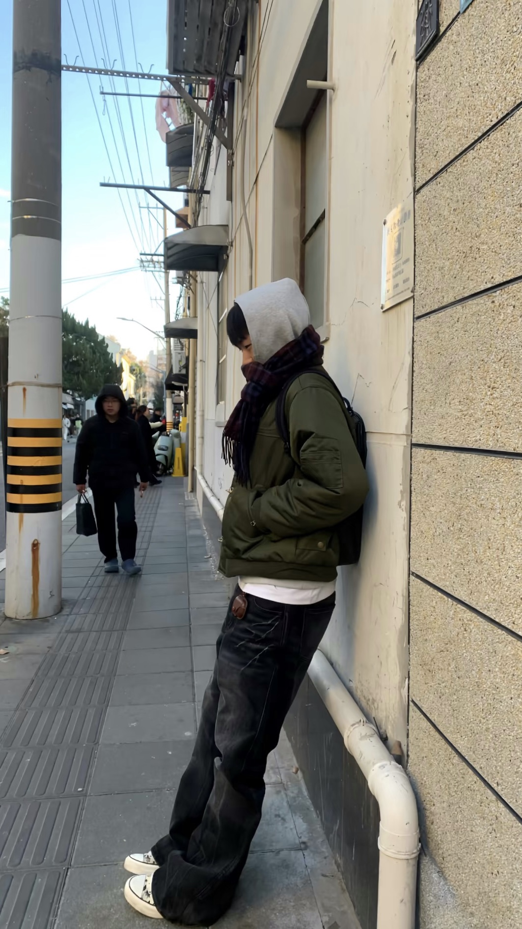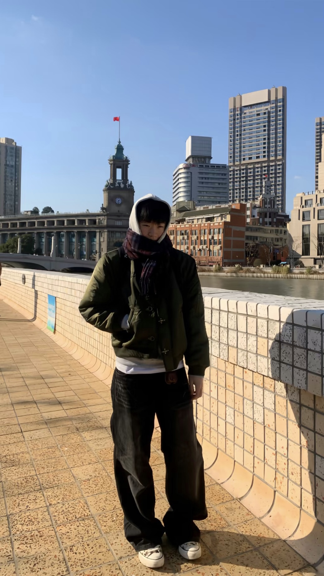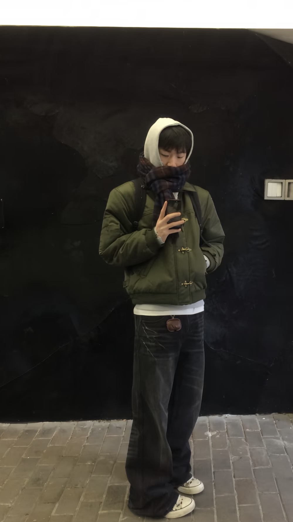 军绿色牛角扣棉服真的是冬日氛围感神器! 内搭连帽卫衣+白T叠穿,层次感直接拉满, 格纹围巾+做旧阔腿牛仔裤,复古感拉满不费力, 脚踩脏脏帆布鞋,松弛感拉满, 通勤逛街都适配,男生冬日穿搭直接抄作业!