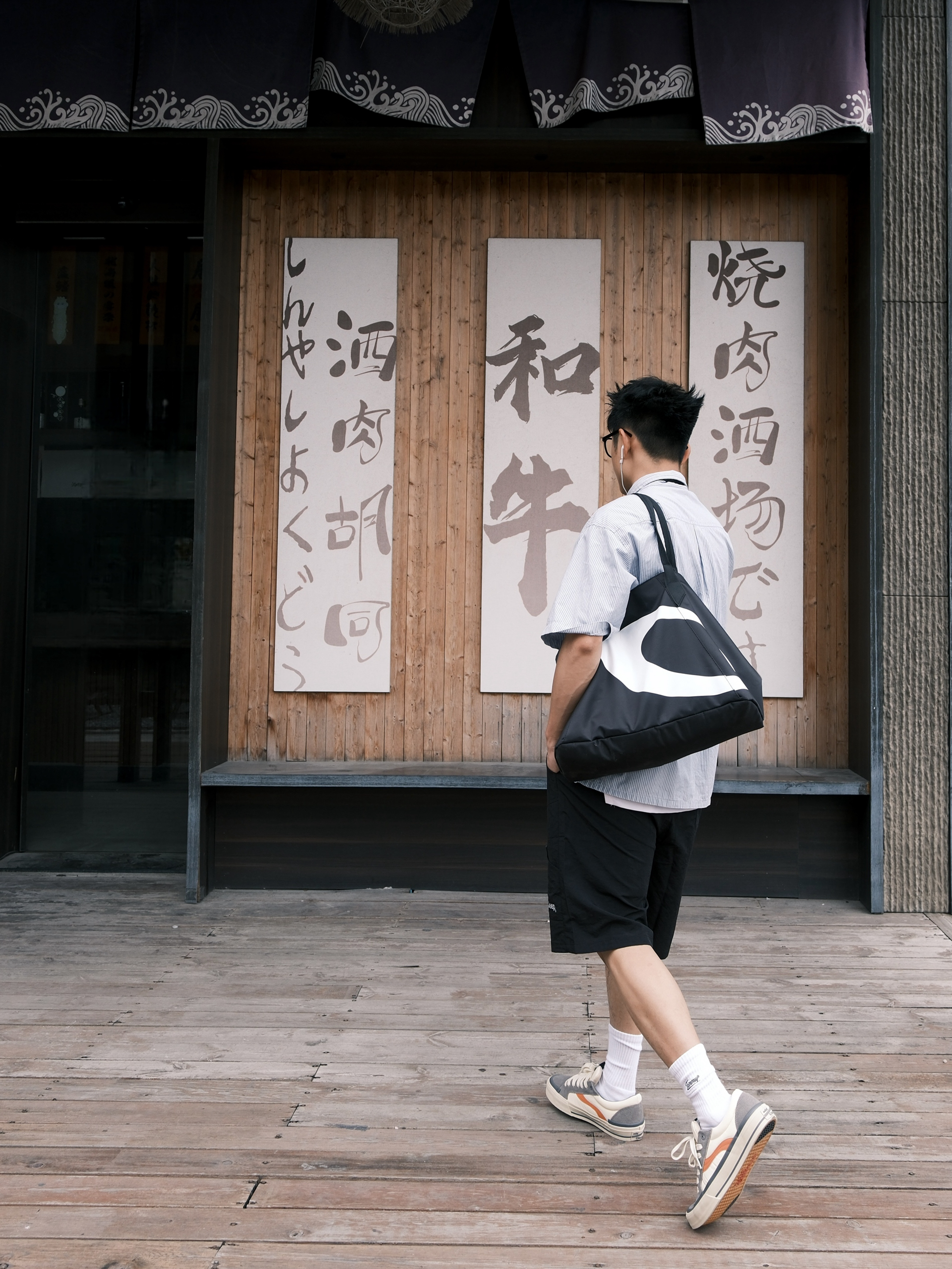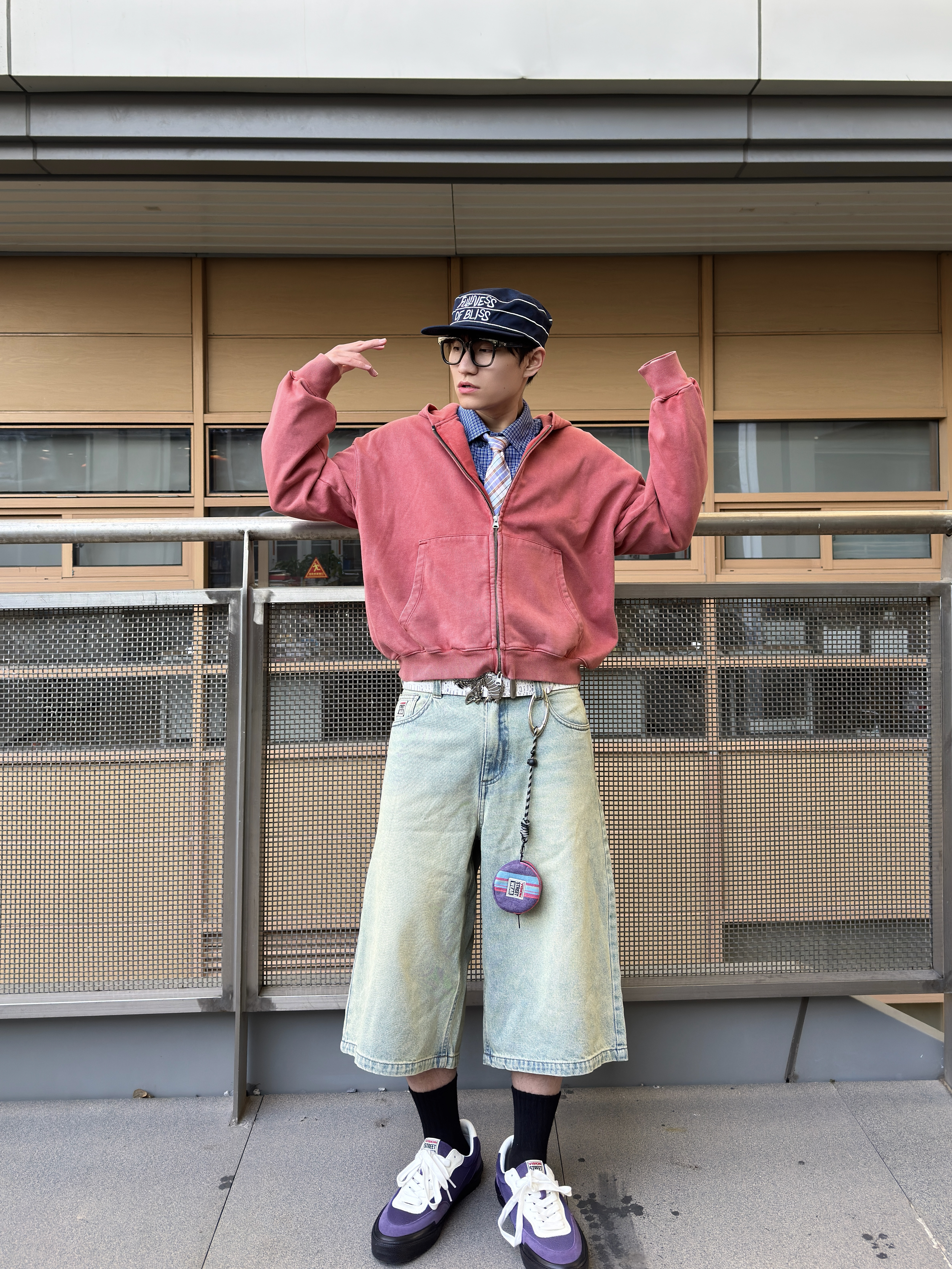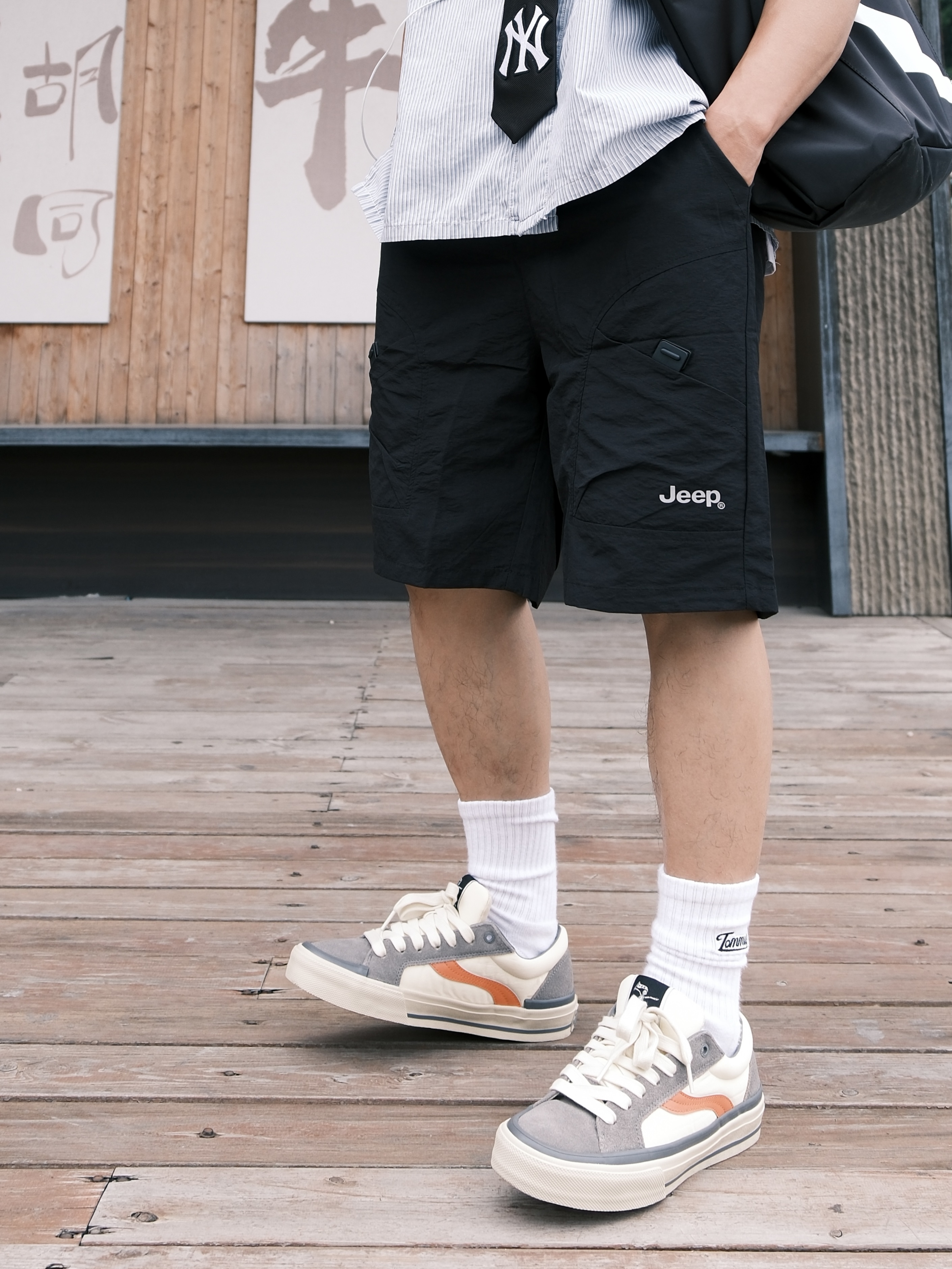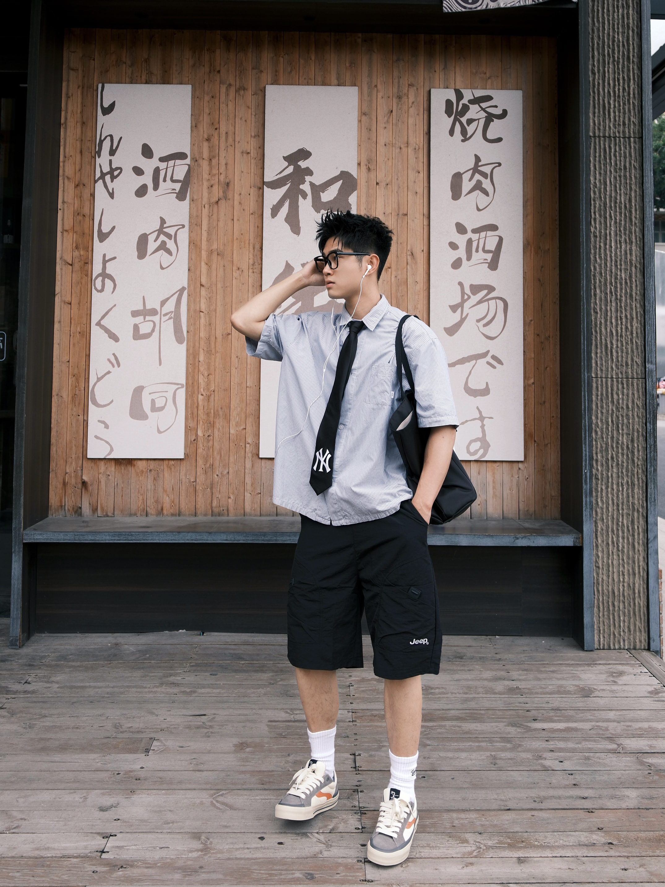 最近好像犯了春困💤 一整天都懒洋洋的不想动弹 今天下午天气不会太闷热,出门溜溜 ~ 蓝色条纹衫简直就是少年感利器 上身干净又减龄,内搭件白T就OK 打条领带点缀一下还挺加分 裤子是黑色的户外工装短裤 再上脚这双拼色街头板鞋 一整个日系少年感轻松拿捏咯