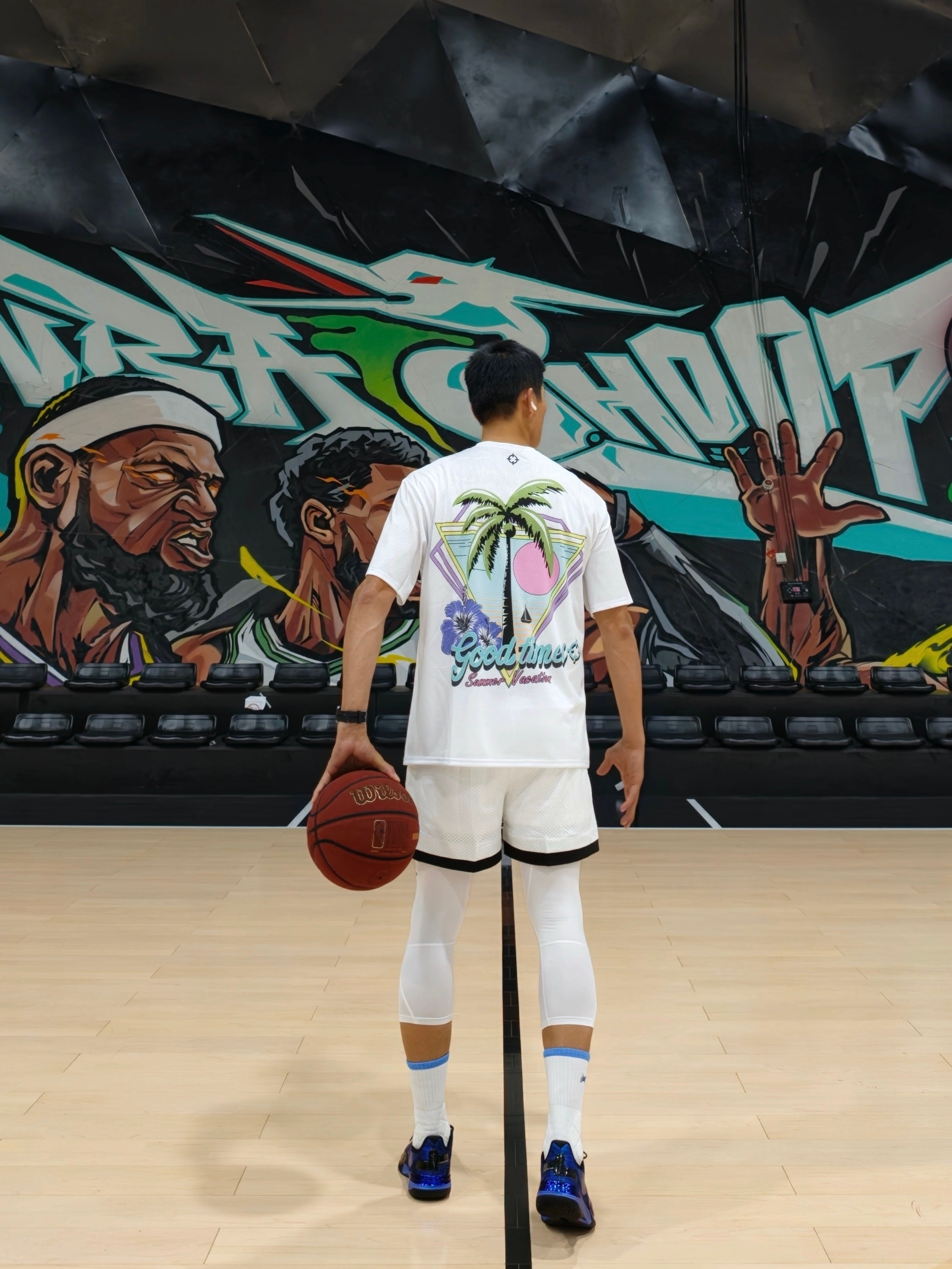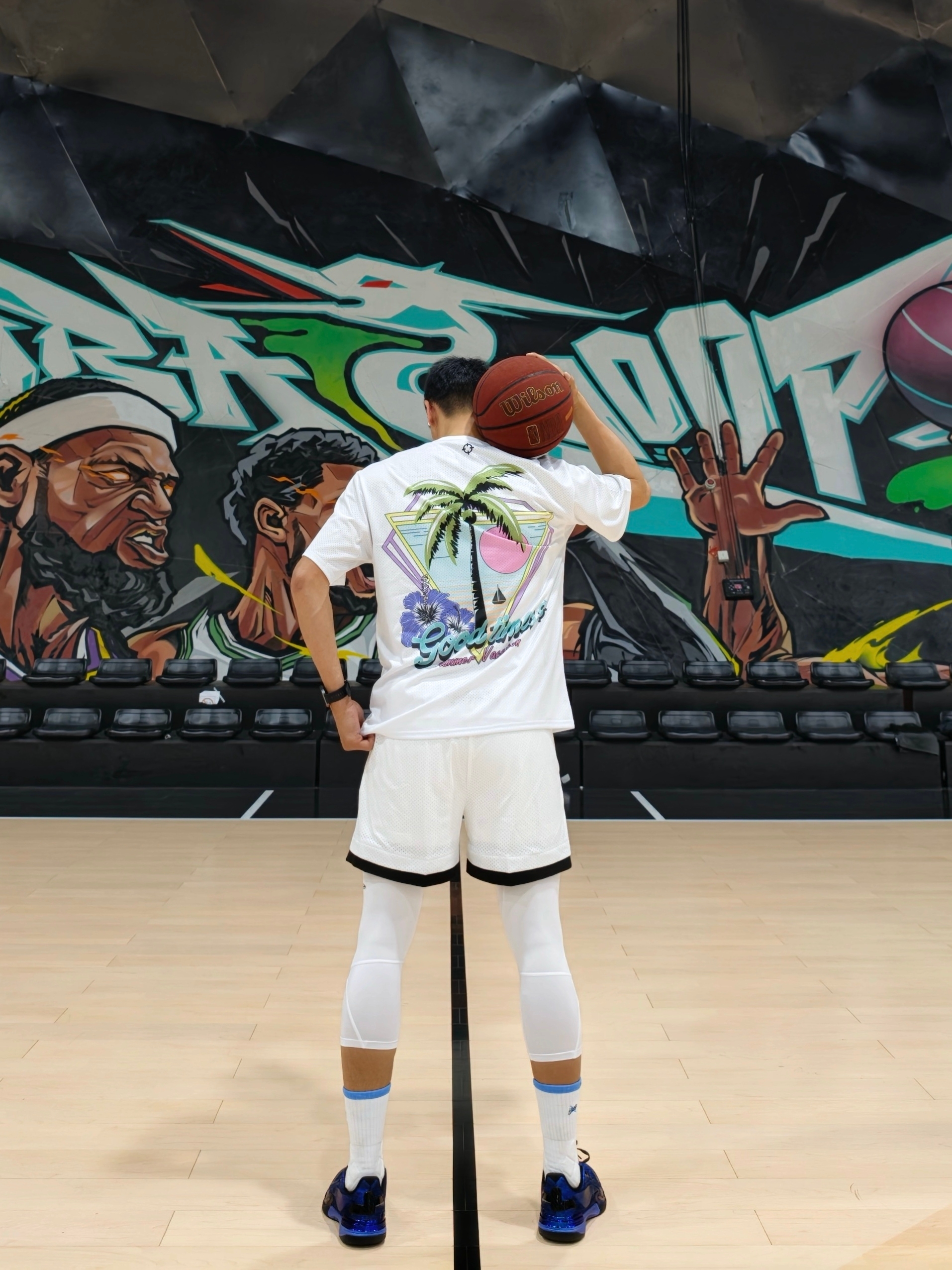 四月的天说变就变~ 今天球馆闷得像蒸笼, 还没开始打球汗就已经流出来了🌊 还好穿了这件 RIGORER 椰子树T恤! 🌴🌴🌴美式复古印花特别吸睛, 宽松版型运动无束缚, 大网眼的速干面料真给力, 打了两小时汗透了却没贴在身上, 练完脱下没异味,直接穿去吃宵夜, 球馆街头穿都很好看! 我186/82,选择XL码~ 给兄弟们参考一下👀 @准者篮球 RIGORER
