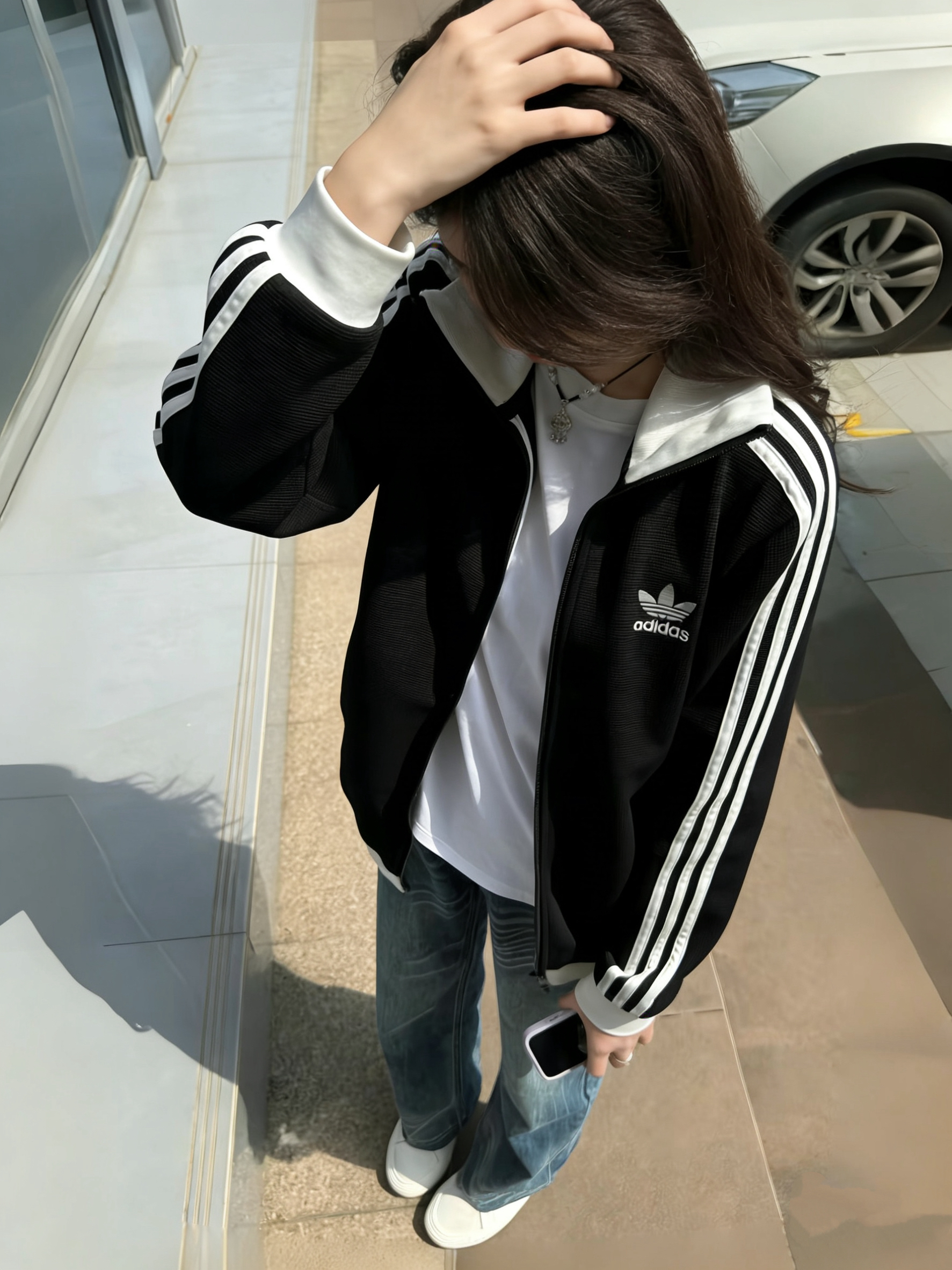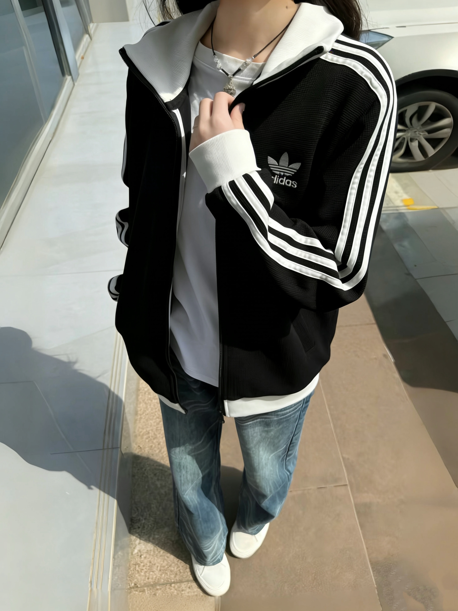 adidas三叶草华夫格立领夹克 真的是今年挖到的宝藏单品✨ ✅拿到手质感绝了 华夫格面料软乎乎的 完全不硬挺 上身巨舒服🎒 黑白经典配色🐼三条杠+三叶草标 复古感直接拉满 随便穿都好看~ 立领设计超显头小 修身版型不臃肿 单穿内搭都ok春秋当外套📷冬天叠穿大衣羽绒服都超合适 实用性拉满💤 ❌唯一小缺点就是 黑色容易粘点小毛絮 穿之前粘一下就好啦 还有就是价格不算便宜 但质感和颜值真的配得上 ...