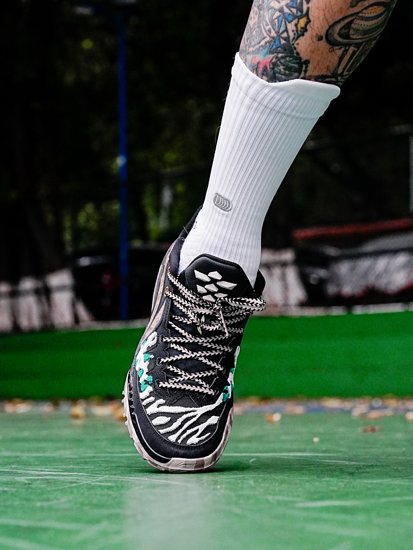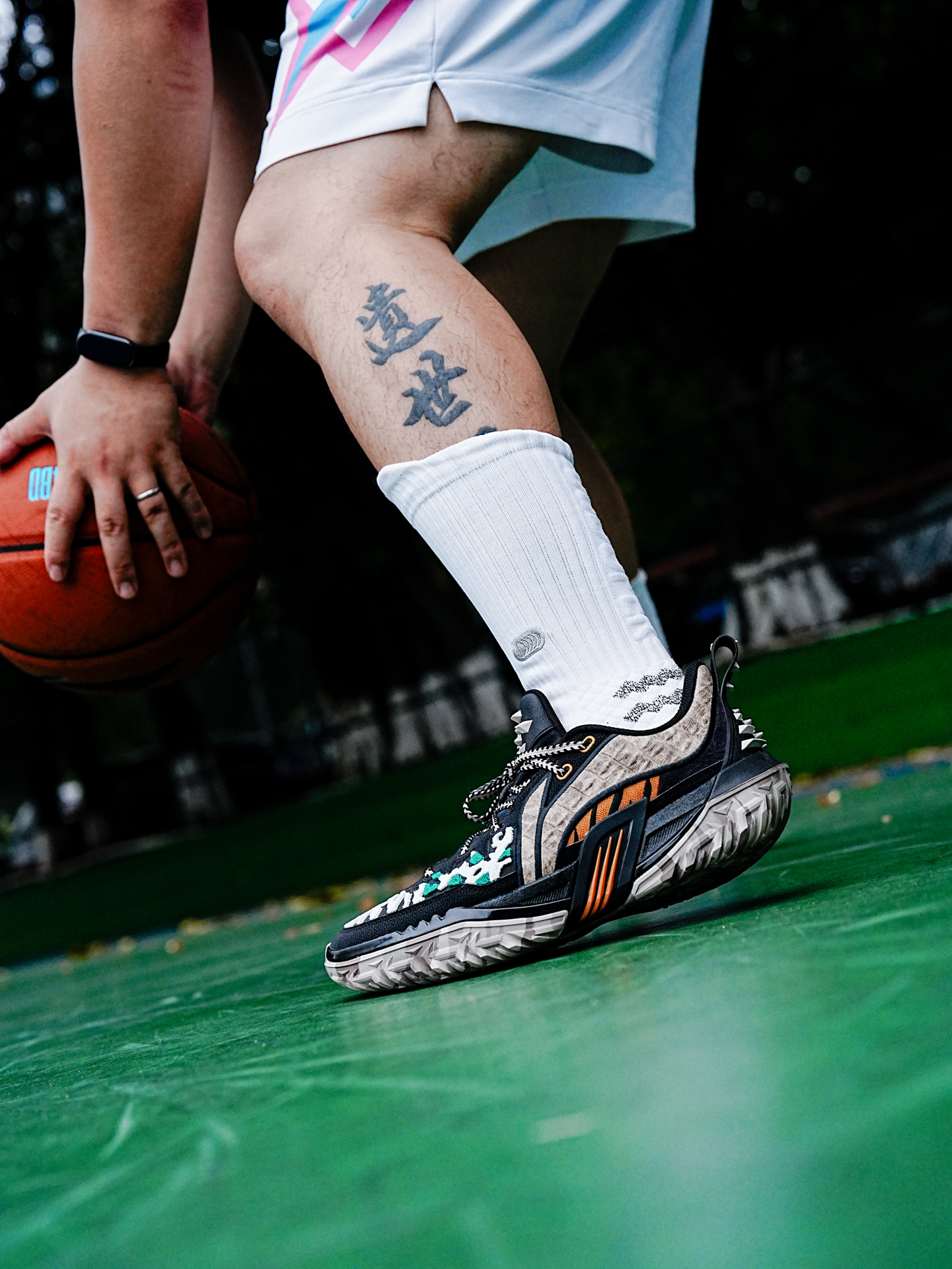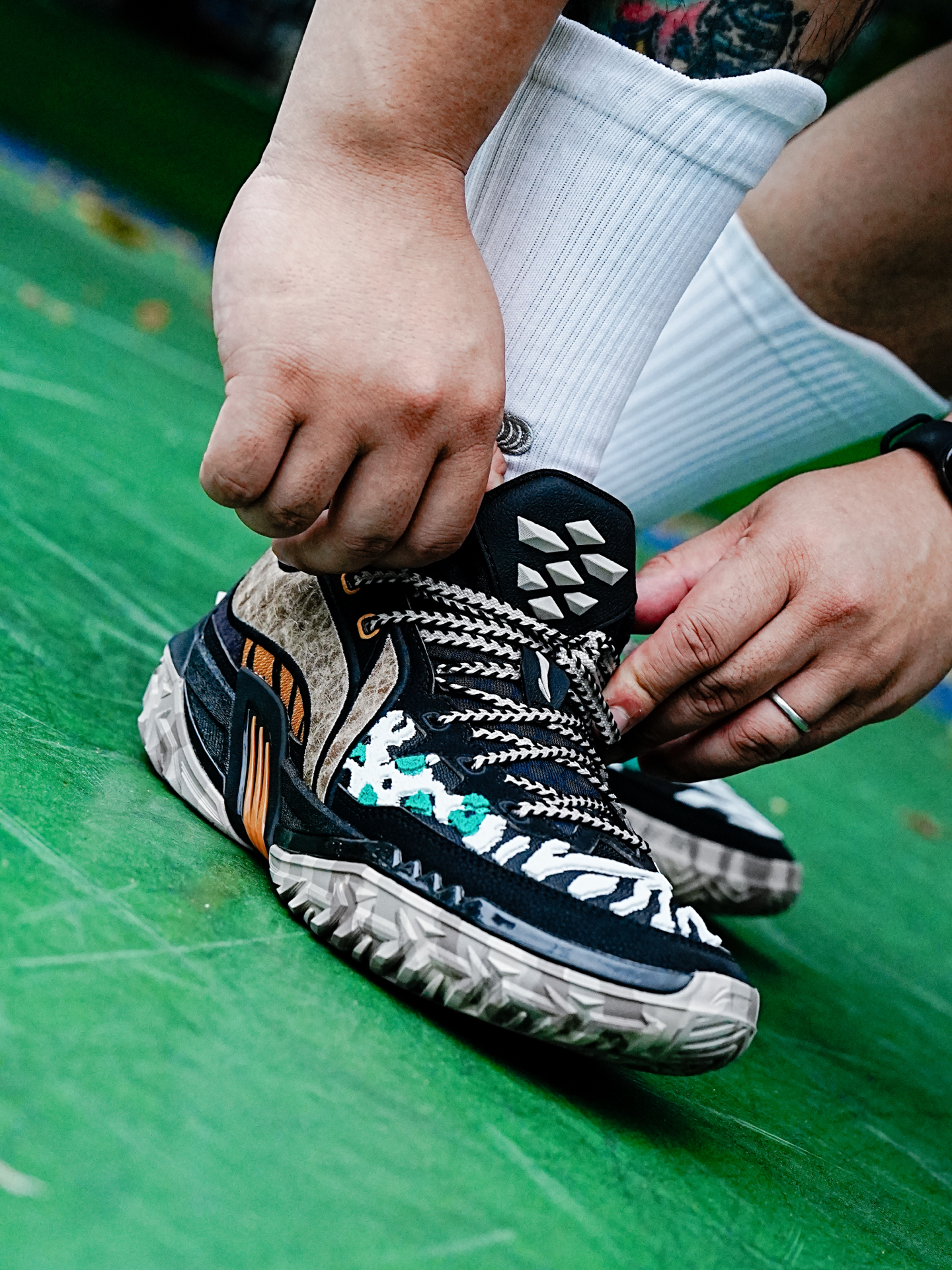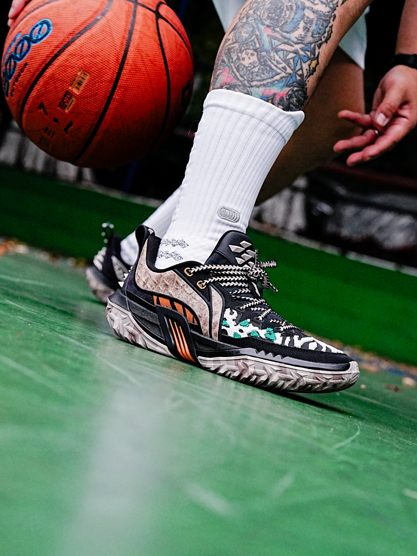 李宁的桀骜也是外场野兽的代表,今天分享的这个桀骜3还是万兽之王主题配色,粗犷的鞋型加上动物图案的设计,配色花里胡哨,真的很有辨识度。 这一代桀骜依旧是非常适合打外场的鞋子,在水泥地实战止滑耐磨都很足够,偶尔穿这个到室内场实战也没有问题,码数的话按照正常入即可。