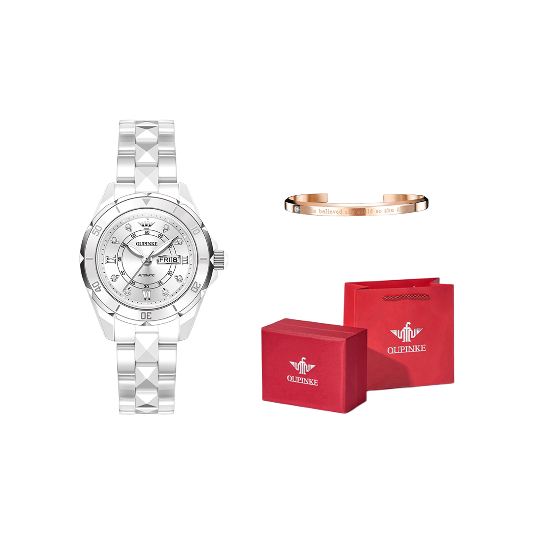 本篇笔记关联了OUPINKE/欧品客 时尚简约百搭轻奢优雅50米防水机械女士手表 【礼盒装】白色、OUPINKE/欧品客 时尚多功能双日历夜光机械男士腕表 P-G3189-MH 白盘/黑带等商品,为用户提供真实的使用体验和购买参考。