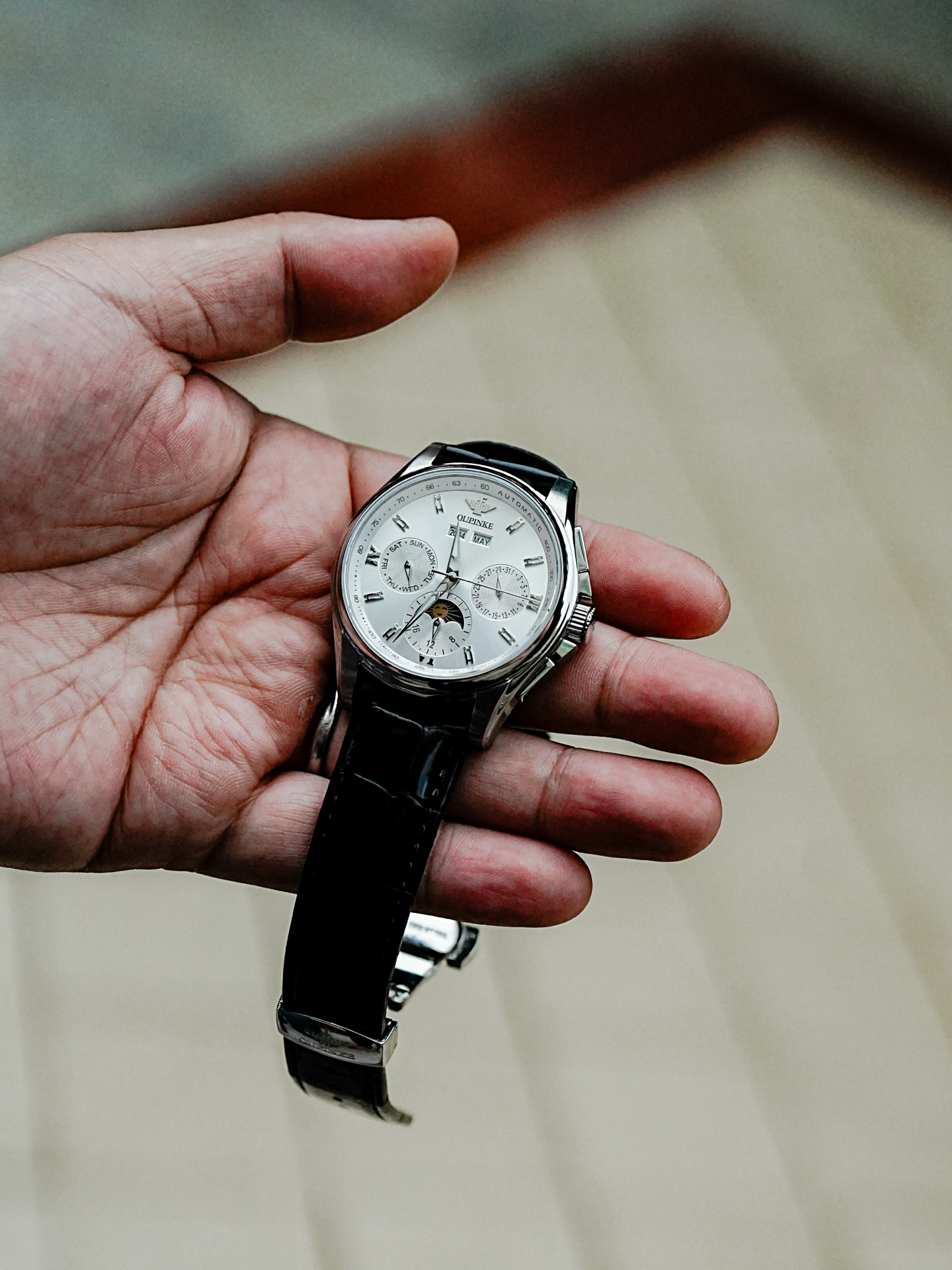 假期匆匆过去真的有点舍不得,不过这个假期倒是入手了一个我挺喜欢的手表,就是 这款机械手表,像我这样皮肤比较暗沉的就适合白色表盘,佩戴起来更有辨识度。 当然,最吸引我的还是质感很不错的皮质表带,佩戴也舒服,可以搭配不同的出门穿搭,卡扣调节也方便,喜欢的可以拿下哦