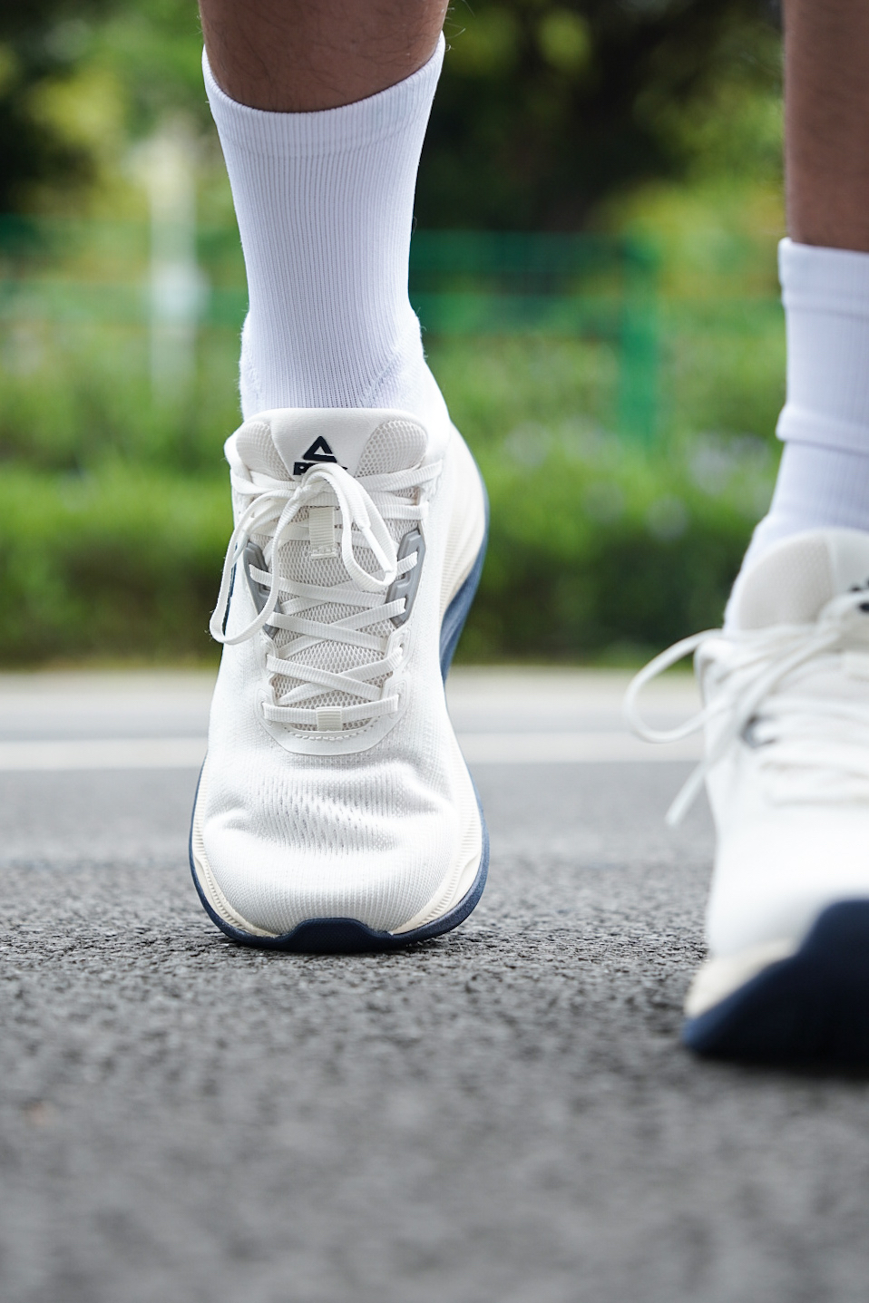 这双浅青蓝跑鞋颜值清爽,上脚特别显活力! 鞋身很轻,跑起步来完全不压脚,缓震感也在线,落地软弹不震膝盖,日常穿都很舒服! 鞋底抓地力不错,通勤走路也不累脚! 透气网面不闷汗,夏天穿也清爽,搭配运动短裤、休闲裤都好看,不管是健身跑步还是日常出街,都是省心又好穿的选择!