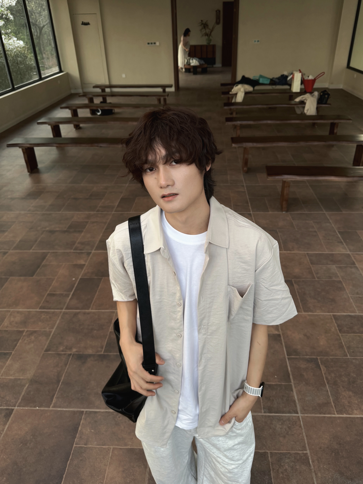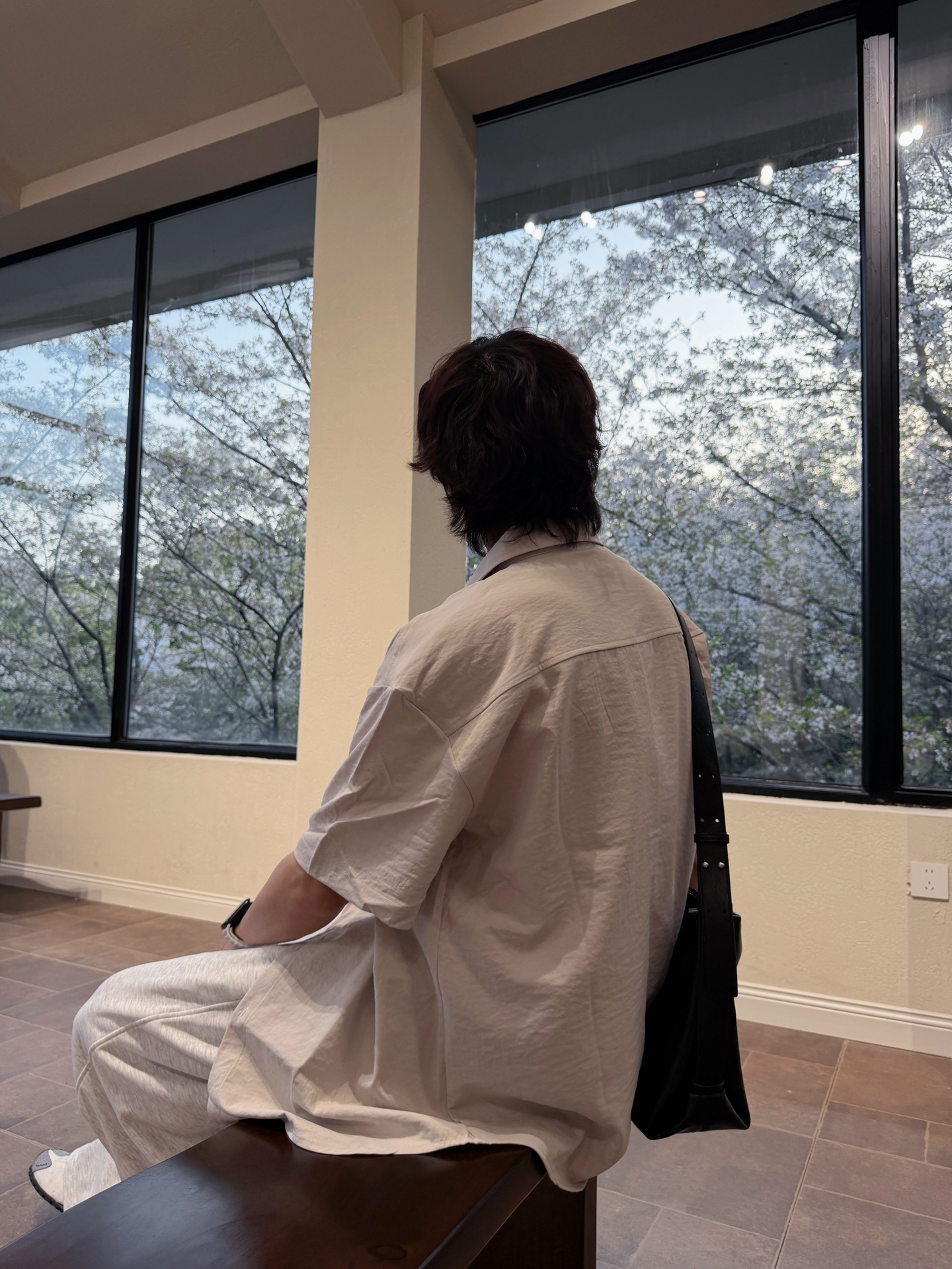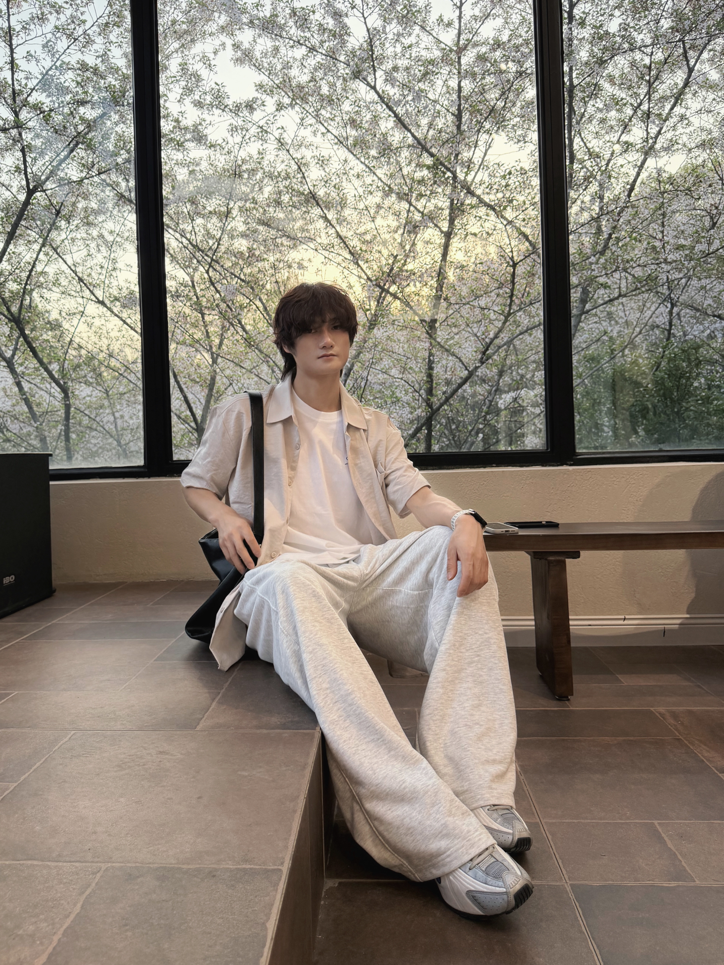捕捉春日里的片刻宁静🍃 一身浅灰调,温柔又治愈 衬衫+阔腿裤的万能公式 干净利落,不费力的时髦感 简单穿搭,也能穿出氛围感