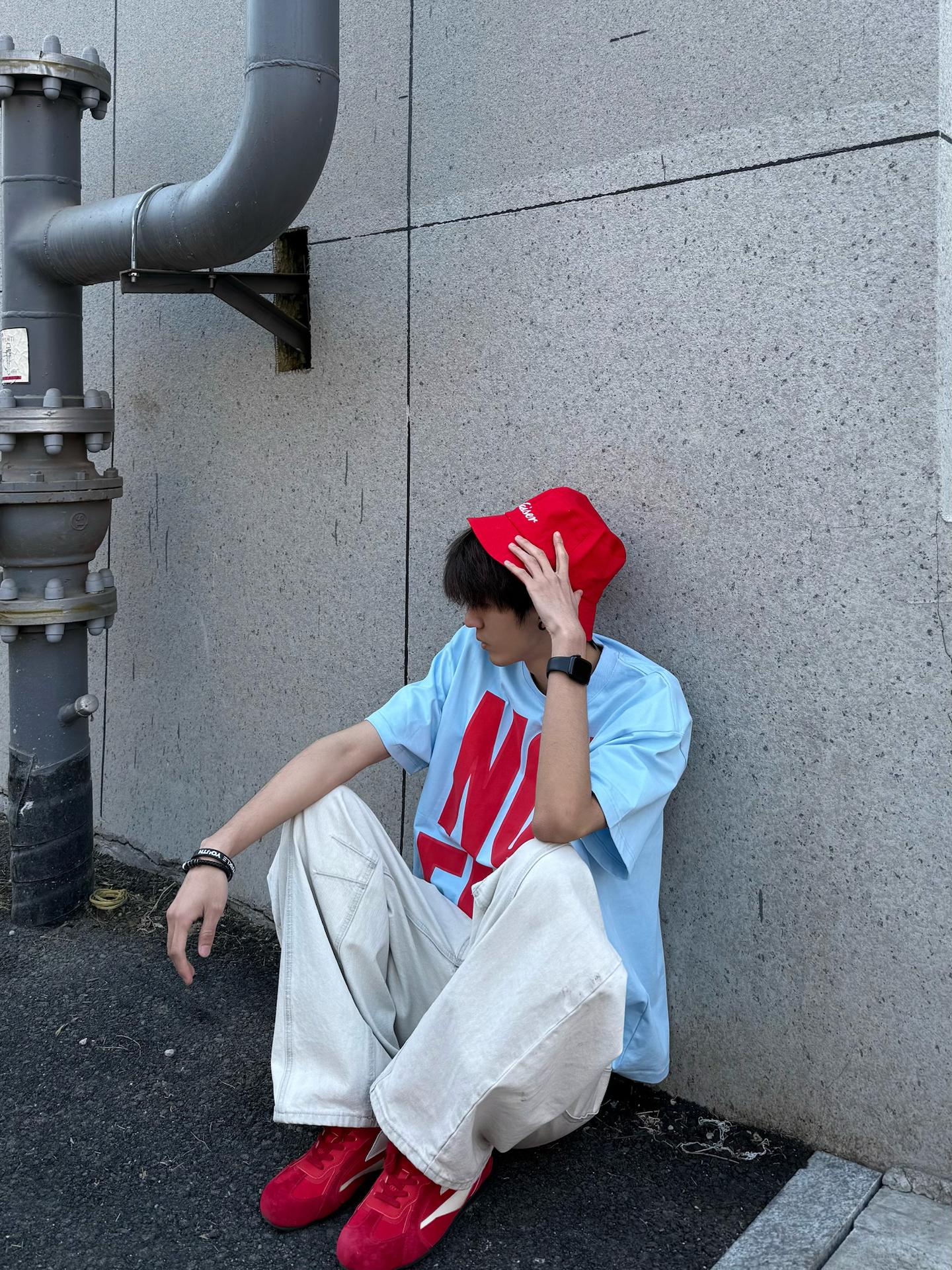 春天就该把亮色焊在身上❗️ 今天直接整了套“早春多巴胺显眼包”穿搭 出门晃悠一圈 给街头添点活力~ 上身浅蓝底大红字母短袖 撞色超吸睛 ✅ 搭了条米白阔腿裤 用浅底色中和一下 不会太乱还显清爽😎 找了顶渔夫帽和T恤的红做了呼应 踩了双同色系的德训鞋👟晃晃悠悠逛一下午都不累 买了个小可乐 喝上两块 哈哈哈哈可以说一天都红运当头了🤭 今天是大大咧咧的街头感 感觉早起的困意都被这抹亮色冲没了✌️ ...