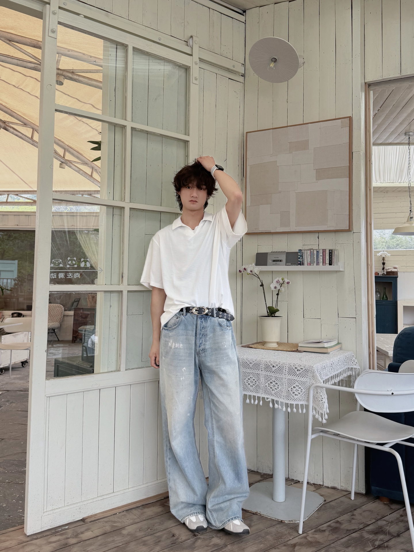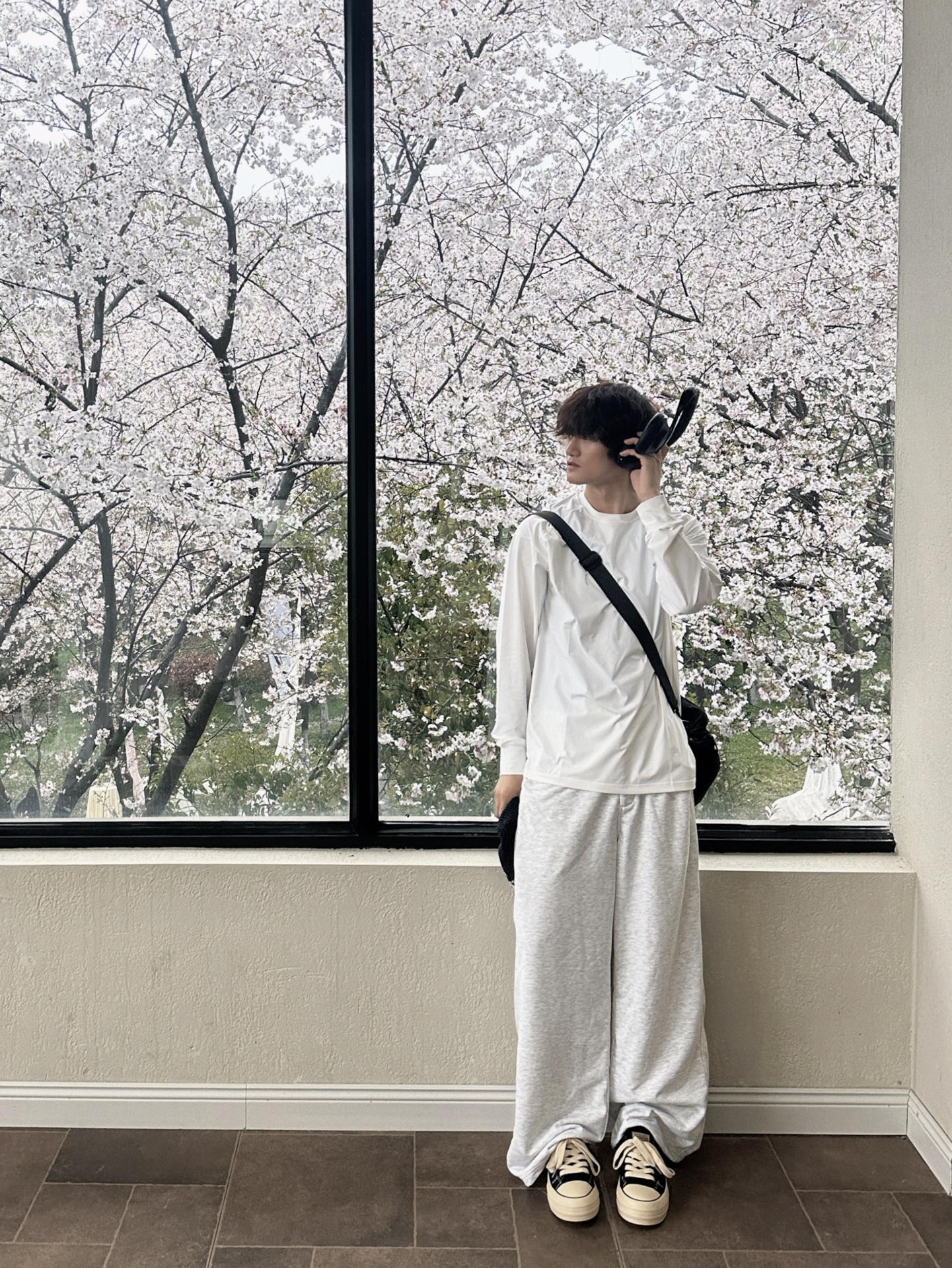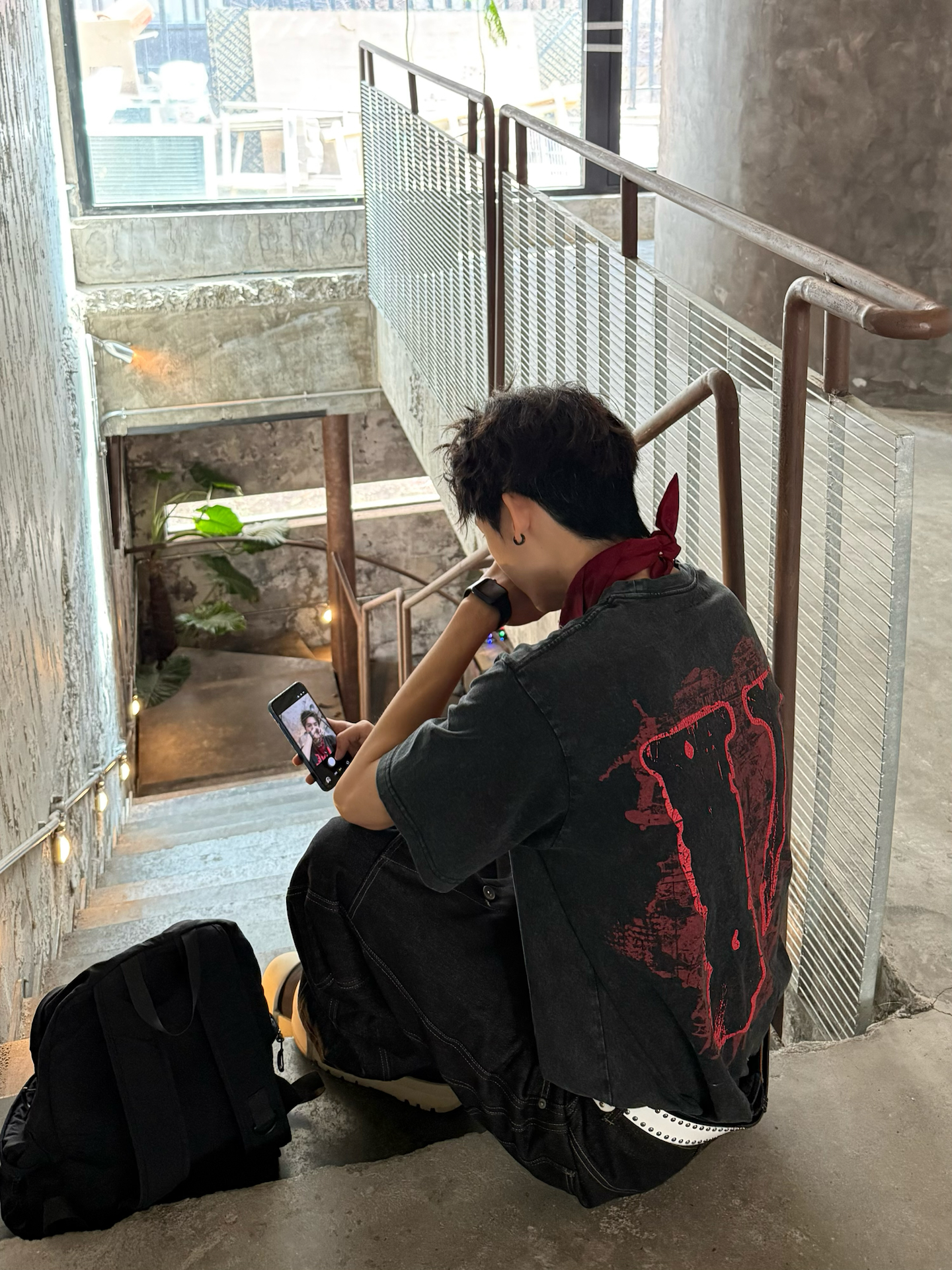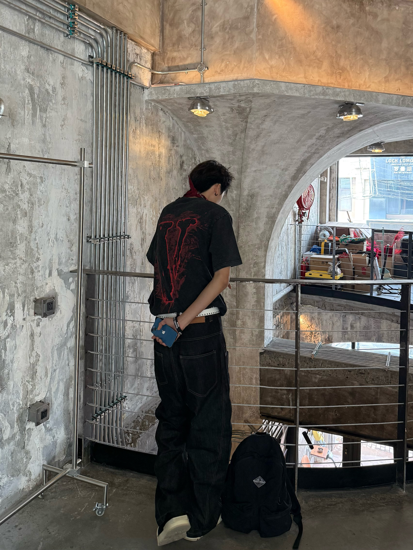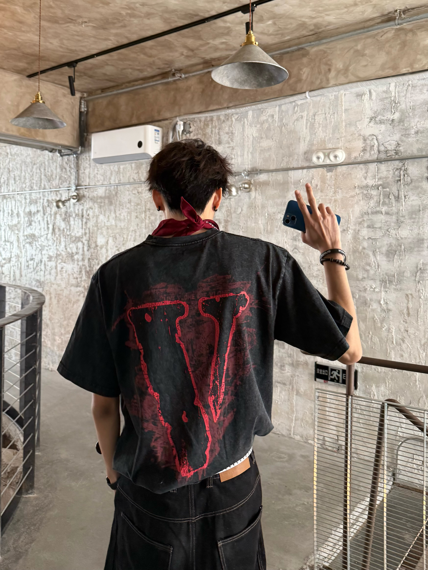 终于入早春啦🌿天气不冷不热的刚刚好 出门前冲了杯咖啡 瞄了眼窗外👀 发现人还挺多 的都跑出来晒太阳了 我也出去晃两圈 补补钙✌️ 今天穿了件vlone的做旧黑红印花T👔 配了条阔腿弯刀裤 怕一身黑太过沉闷没层次✅ 就用白腰带卡了下腰线 顺便抓条红白方巾系在脖子上😎颜色刚好和T恤的下印花做个小呼应 还挺有调性的 这两天也是兜兜转转的 试了好多风格🤔但还是觉得松弛的街头风 更适配这种随便乱晃的日子 不...