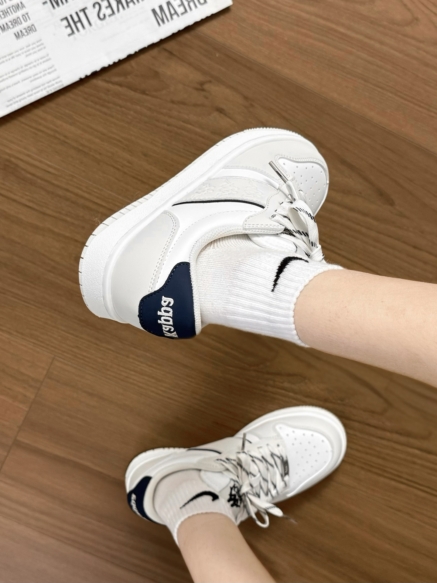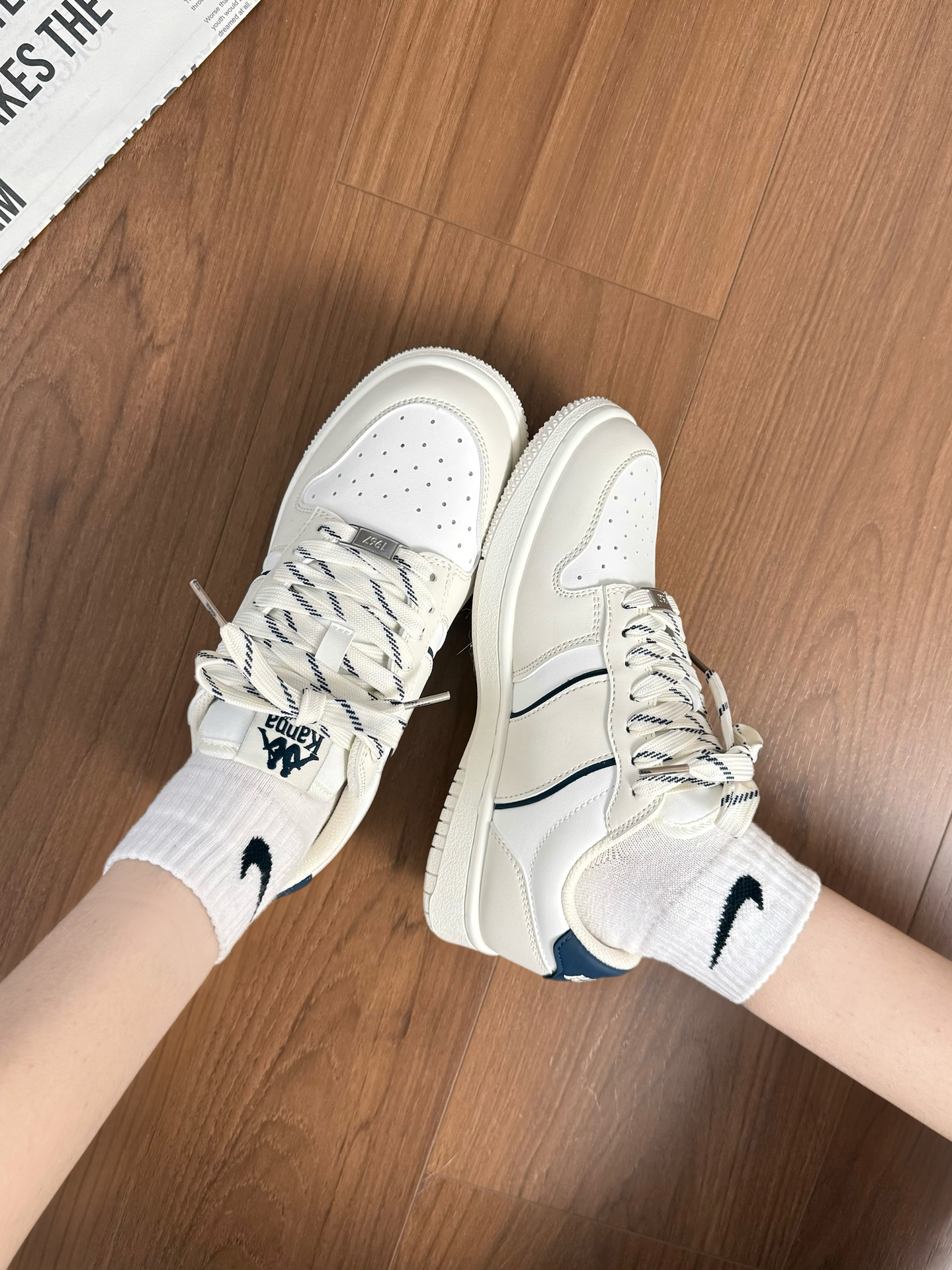 基础款真不错 整体是奶油米的感觉 部分采用了海军蓝的线条设计 简洁时髦感好顶 上脚踩着板板正正的好修饰脚型