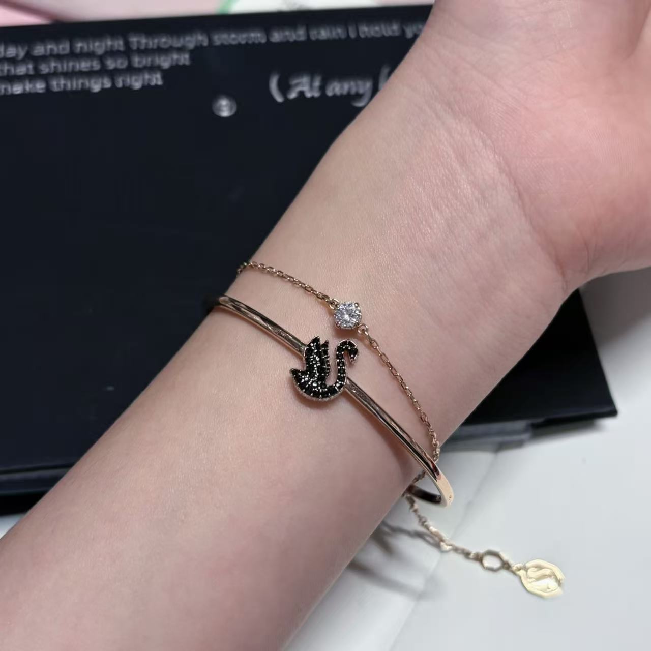 本篇笔记关联了Swarovski/施华洛世奇 黑天鹅水晶手镯 5678048 玫瑰金色、【阚清子同款】Swarovski/施华洛世奇 Iconic Swan系列天鹅ICONIC SWAN仿水晶手链 5656841 黑色等商品,为用户提供真实的使用体验和购买参考。