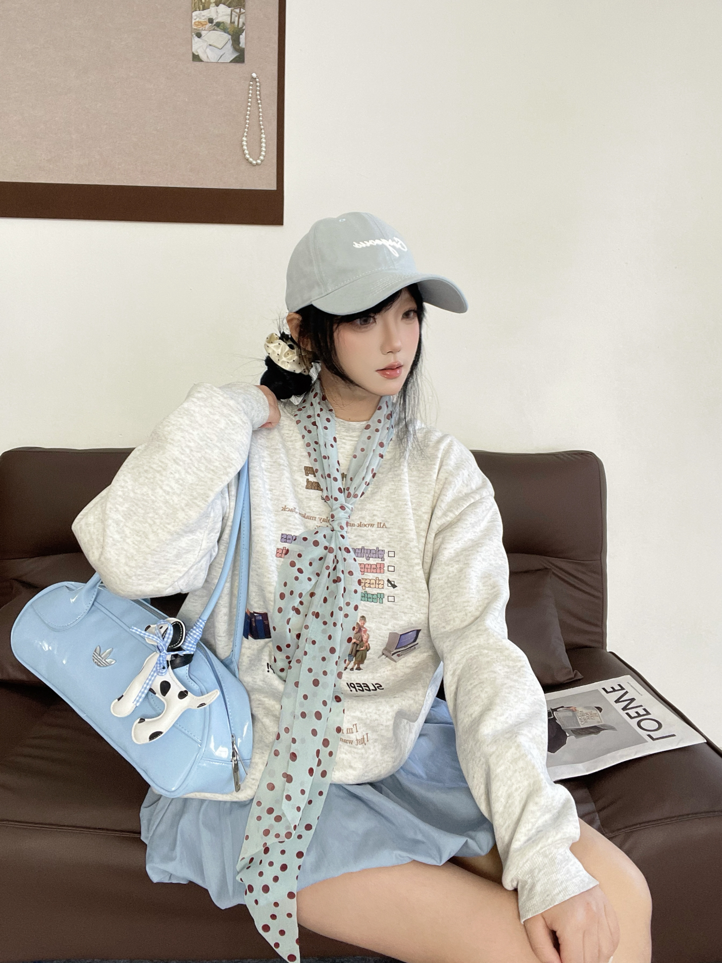 🗣️今日份穿搭分享来啦! 春日色彩这么穿✅:奶蓝色的棒球帽🧢+韩系卫衣,再搭配蓝色系的包包和丝巾,一整套蓝白配色的清爽感穿搭get❕妥妥的韩系ins风🌬️
