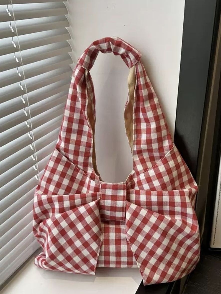 红白格纹蝴蝶结托特包|把春日温柔背在身 上 软fufu的红白格纹,像把野餐的阳光缝进包里界 超大蝴蝶结设计,甜妹DNA狠狠动了! 帆布材质耐造又轻盈,上课/通勤/约会都能背~ 容量感人,水杯、伞、笔记本统统装得下! 日常穿搭点睛之笔,温柔感直接拉满严 搭卫衣是元气少女,配连衣裙是温柔姐姐 小众不撞款,出门回头率爆表