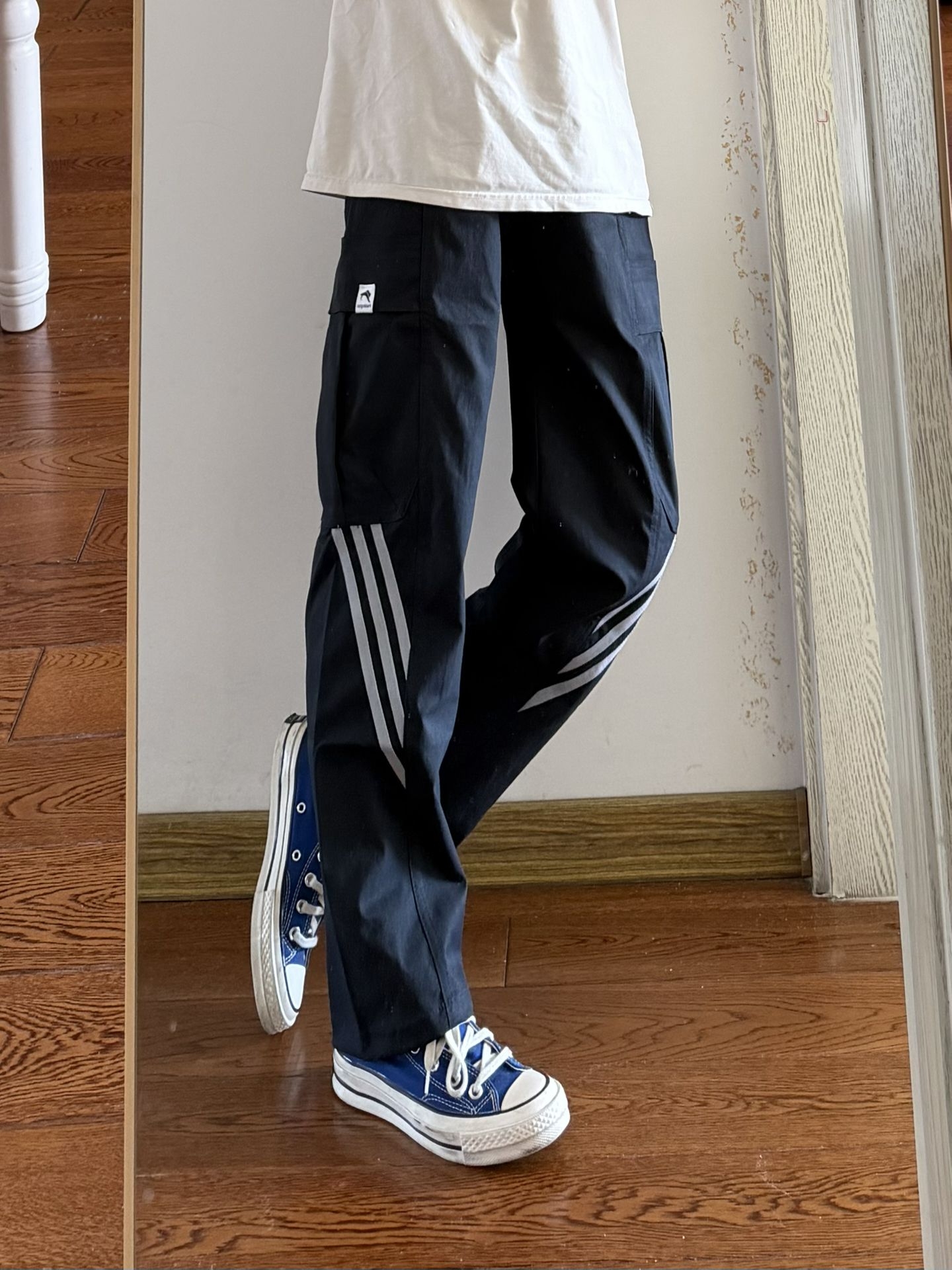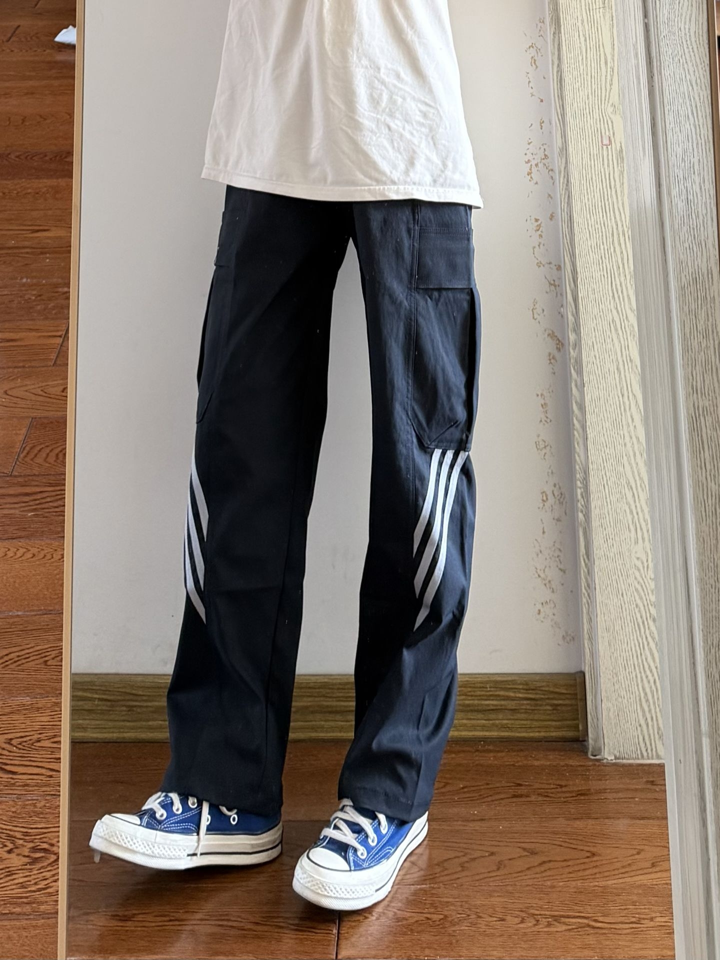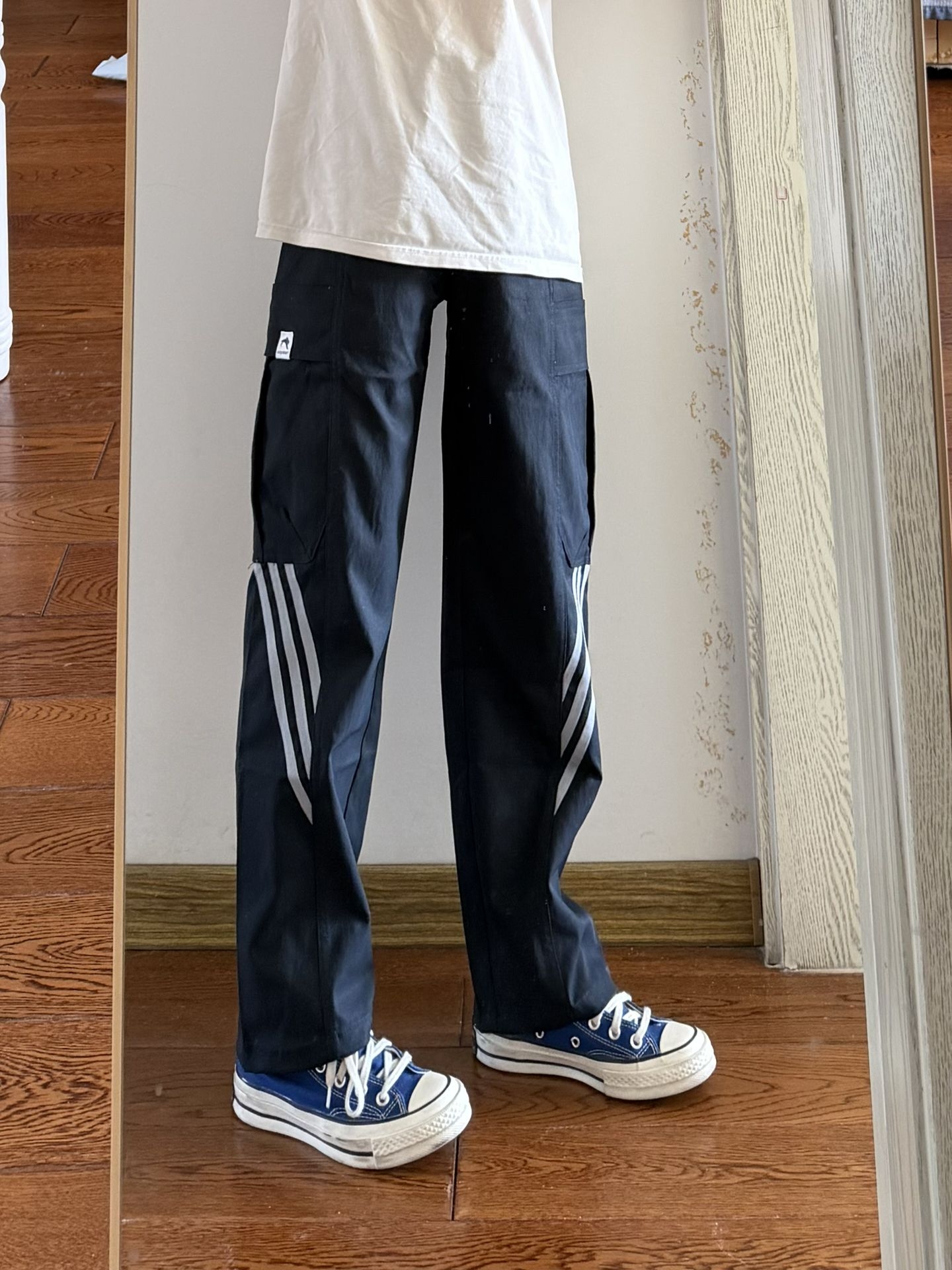 匡威搭配休闲裤穿起来也太爽了!|||妈呀是谁这么会穿!当然是我[耍帅_blue][捂脸_blue] 今天穿这条酷感拉满的美式休闲裤👖 经典三条杠设计➕工装大口袋,美式街头风十足。版型直筒宽松,遮肉显腿长,不挑身材不挑搭配,懒人首选神裤🤩🤩我搭配了一双蓝色匡威这套真帅爆了! 恨不得天天穿 #长得帅不如穿得帅 #踏春出片穿这双 #春日色彩穿上身 #一件入春穿搭 #裤子不拖地穿搭如儿戏
