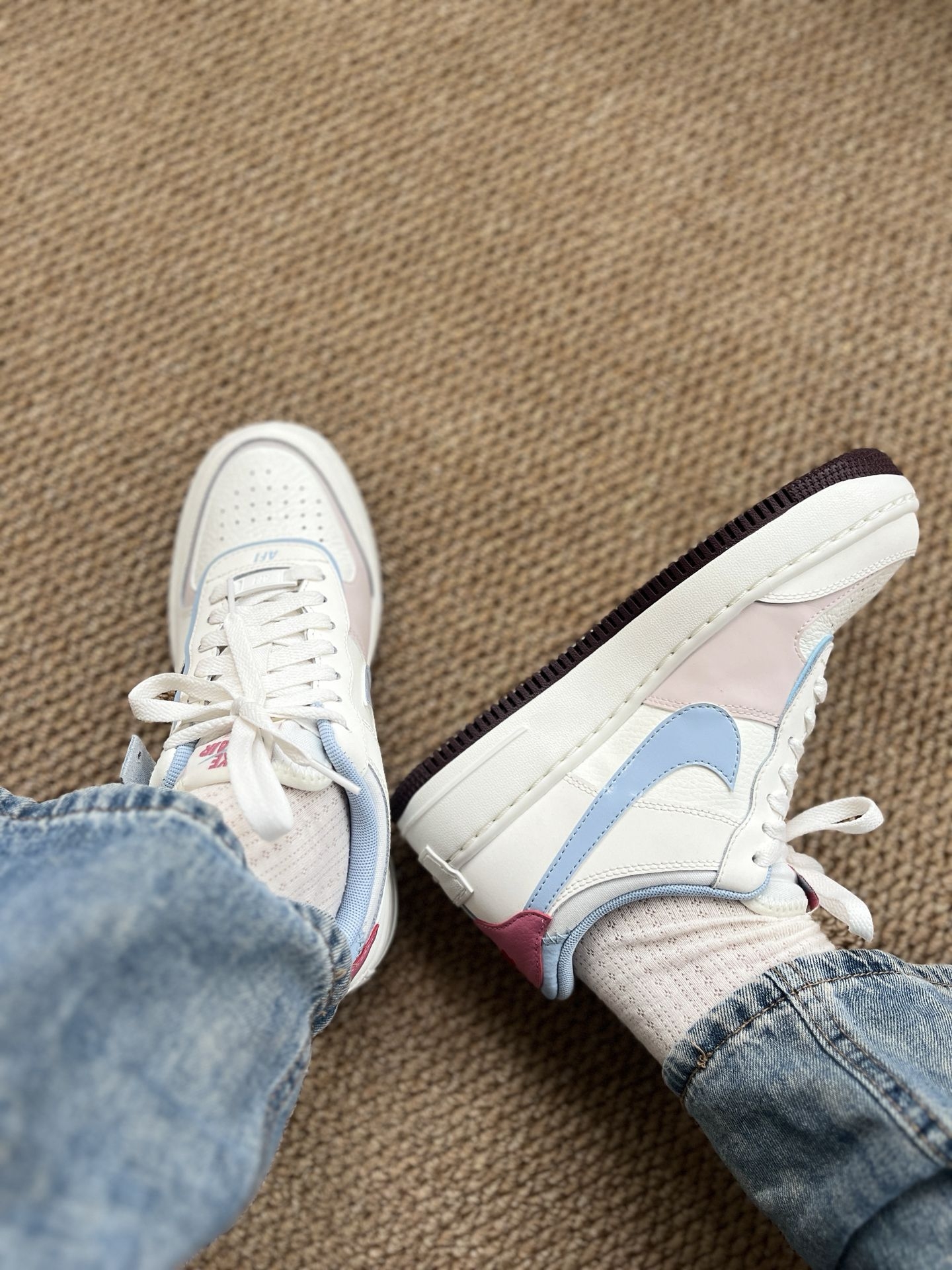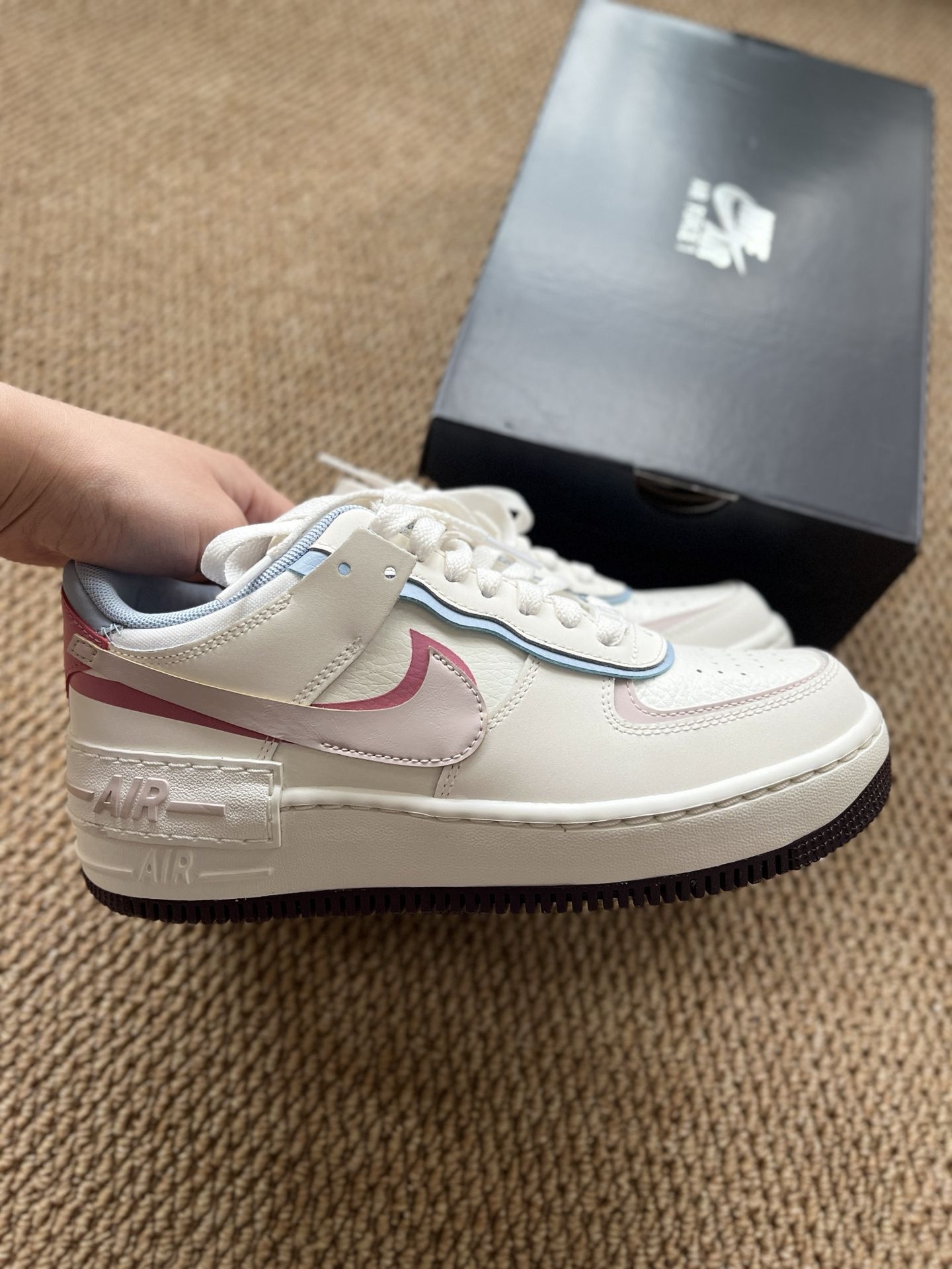 马卡龙空军Shadow情人节限定!春日甜妹板鞋首选|||谁能拒绝一双颜值和脚感都在线的板鞋啊🥹 这双Nike Air Force1 Shadow情人节限定真的太懂春天了! 白粉蓝的马卡龙撞色,温柔又清新, 不像以往AF1那么单调, 多层次的鞋型设计+粉蓝拼接, 上脚瞬间少女感拉满, 百搭又不张扬,谁穿谁是甜妹本人✨ 重点是它真的好舒服! 鞋底软弹不磨脚,走路轻飘飘的, 逛一天都不会累, 颜值和舒...
