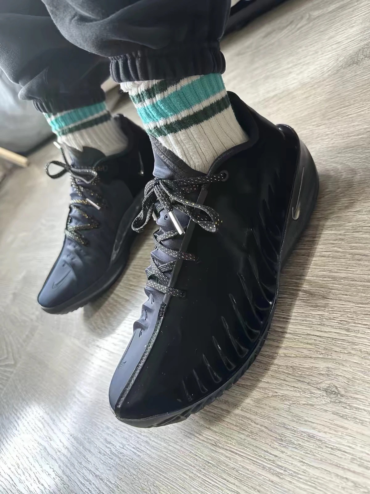 与其他gut4配色不同的皮质,毛绒和翻毛皮的质感更加高级,全黑的鞋面实战来说也耐脏不需要过多打理,现在一个6开的价格来当口粮鞋是很好的选择,gt系列也逃不过球鞋市场的不景气