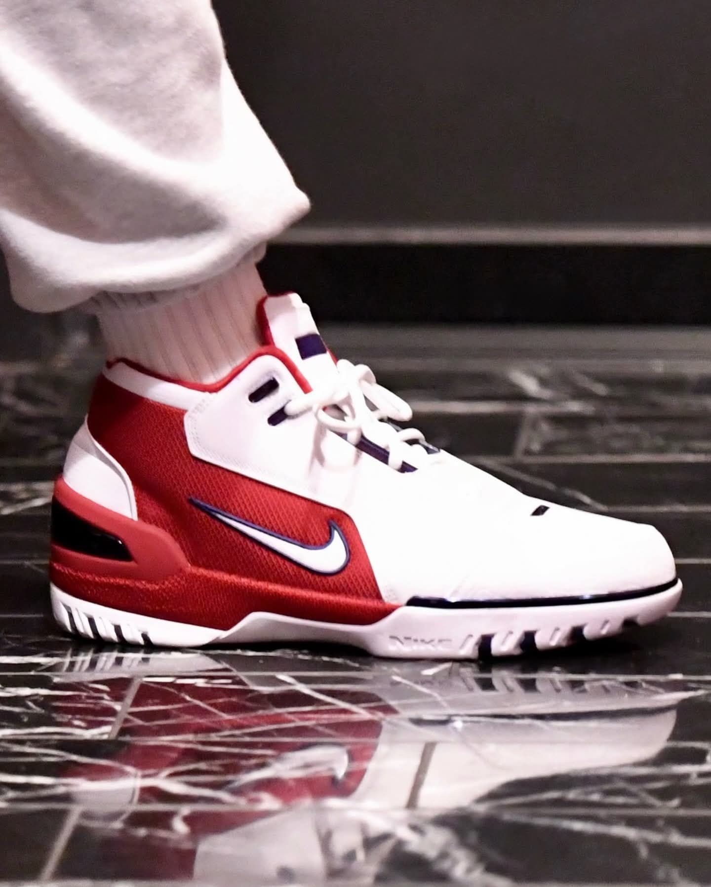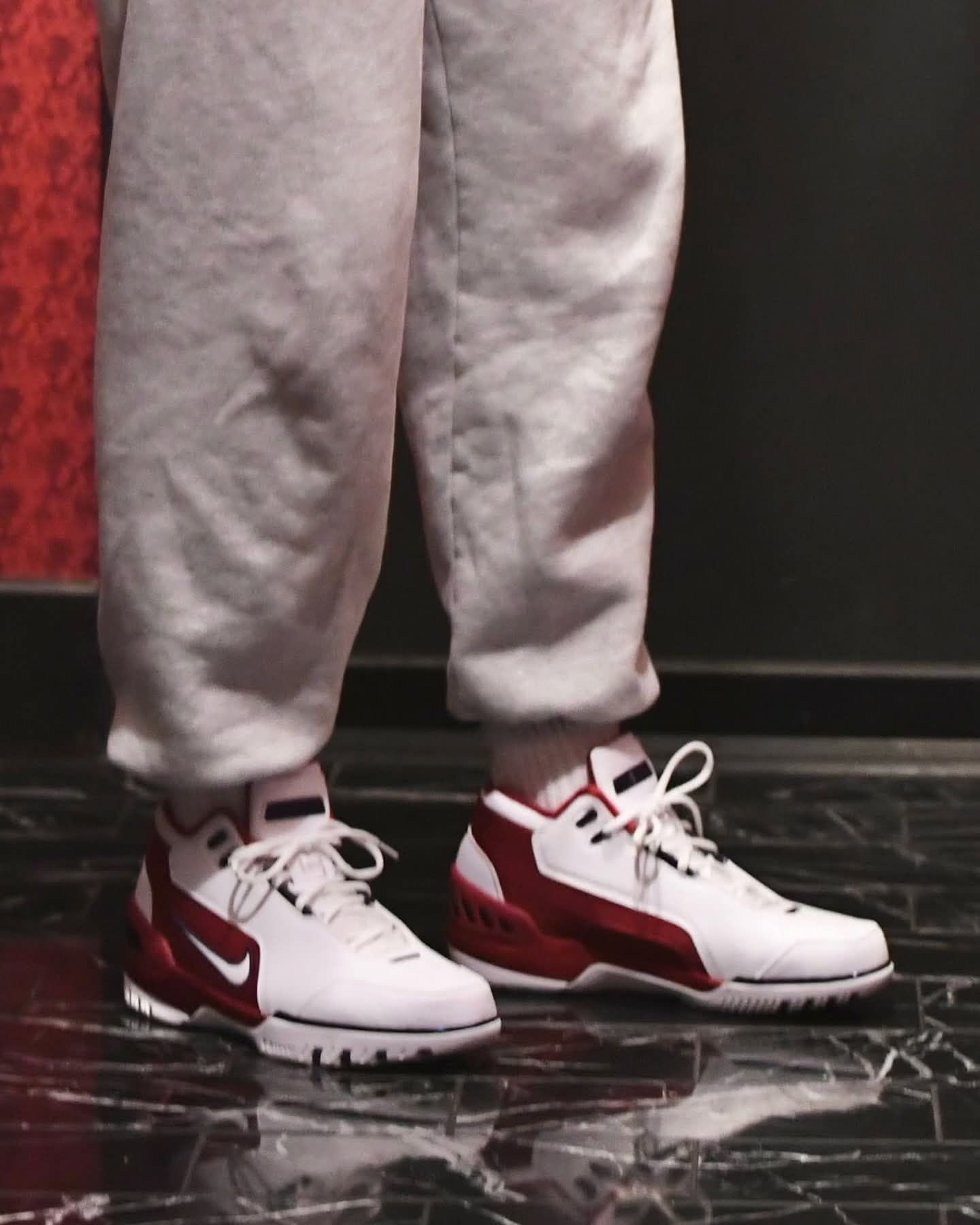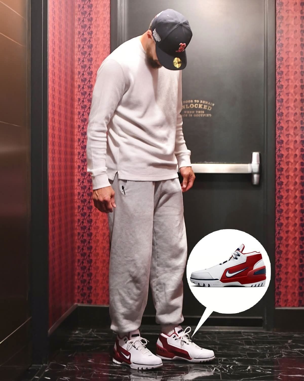 谁能想到!库里居然上脚了詹姆斯的初代签名战靴——Nike Air Zoom Generation! 这双诞生于2003年的球鞋,是勒布朗进入NBA的第一双签名鞋,承载了无数老球迷的青春回忆。如今库里上脚这双经典,不仅是对老詹的致敬,更是两代联盟超巨之间的惺惺相惜。 白红元年配色依旧能打,复古鞋型搭配现代穿搭,库里这波私服造型直接把情怀和潮流焊死了!