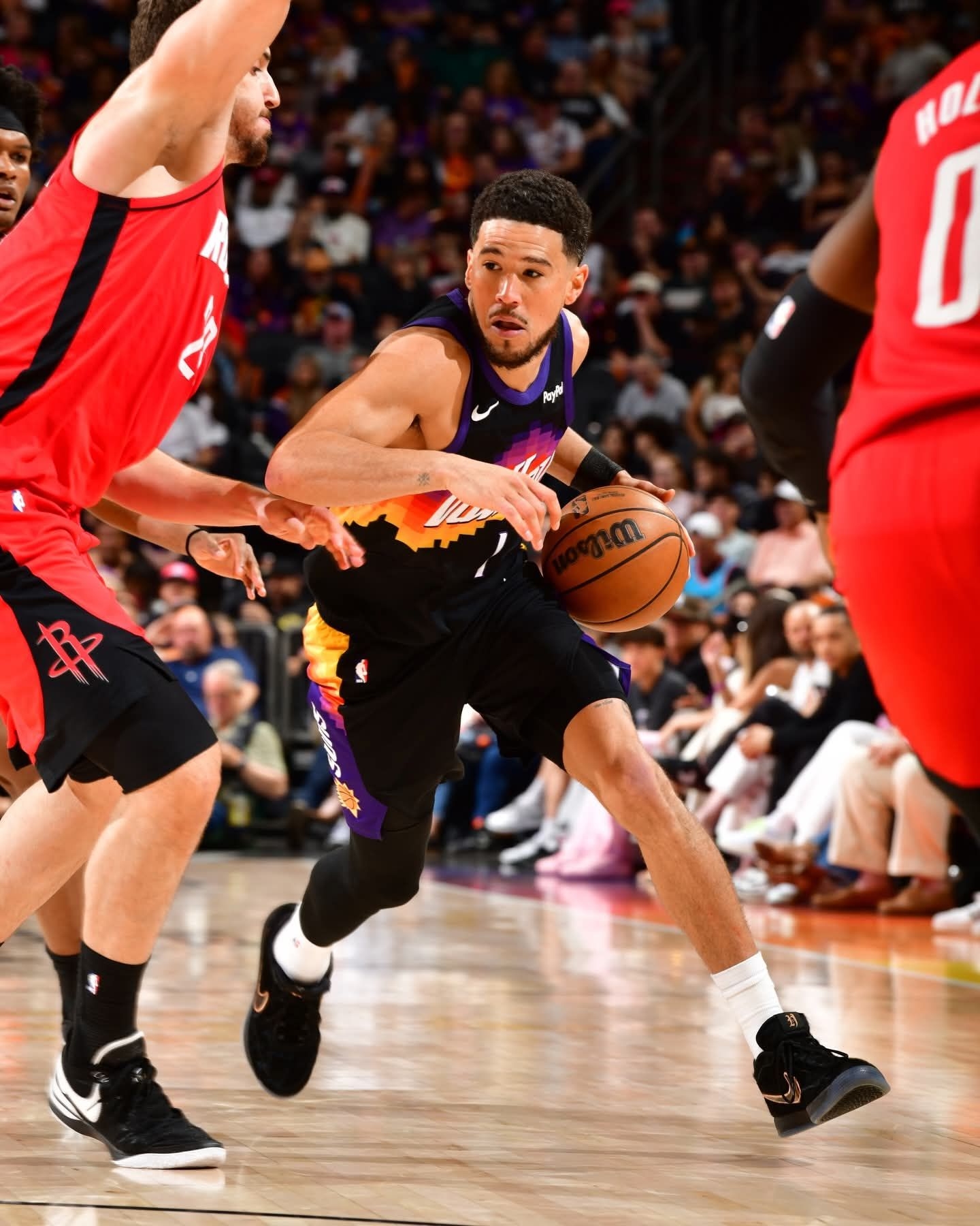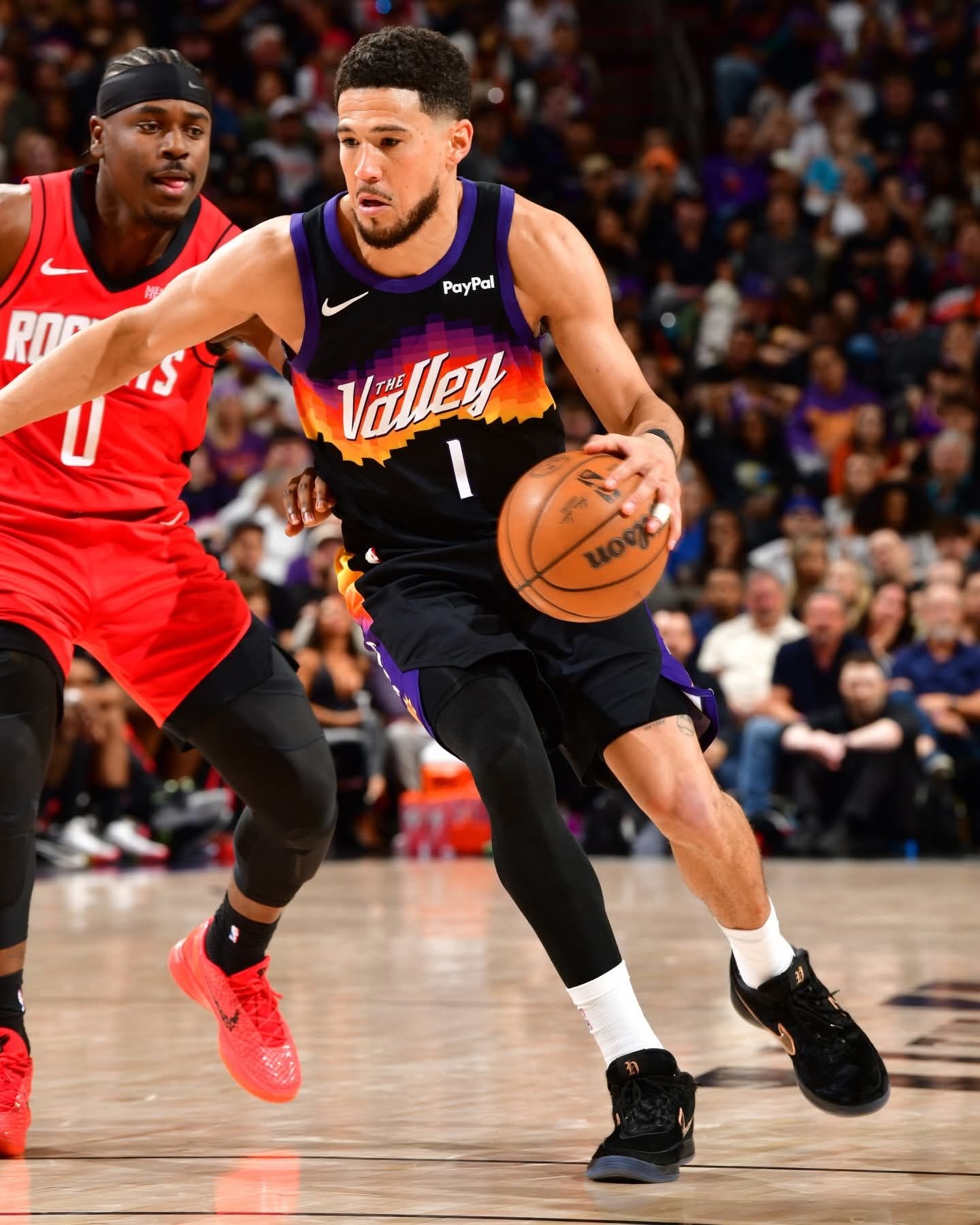 德文·布克全新Nike Book 2 PE正式亮相! 这双战靴以布克的爱犬为灵感打造,通体黑麂皮材质搭配古铜色Swoosh,低调又高级,黑武士质感直接拉满。鞋舌专属H标细节拉满,每一处设计都藏着布克对自家狗狗的爱。 作为布克的第二代签名鞋,Book 2本身就凭借出色的实战性能圈粉无数,这次的狗狗主题PE更是把球员的个人故事融入球鞋,情怀与颜值双在线!