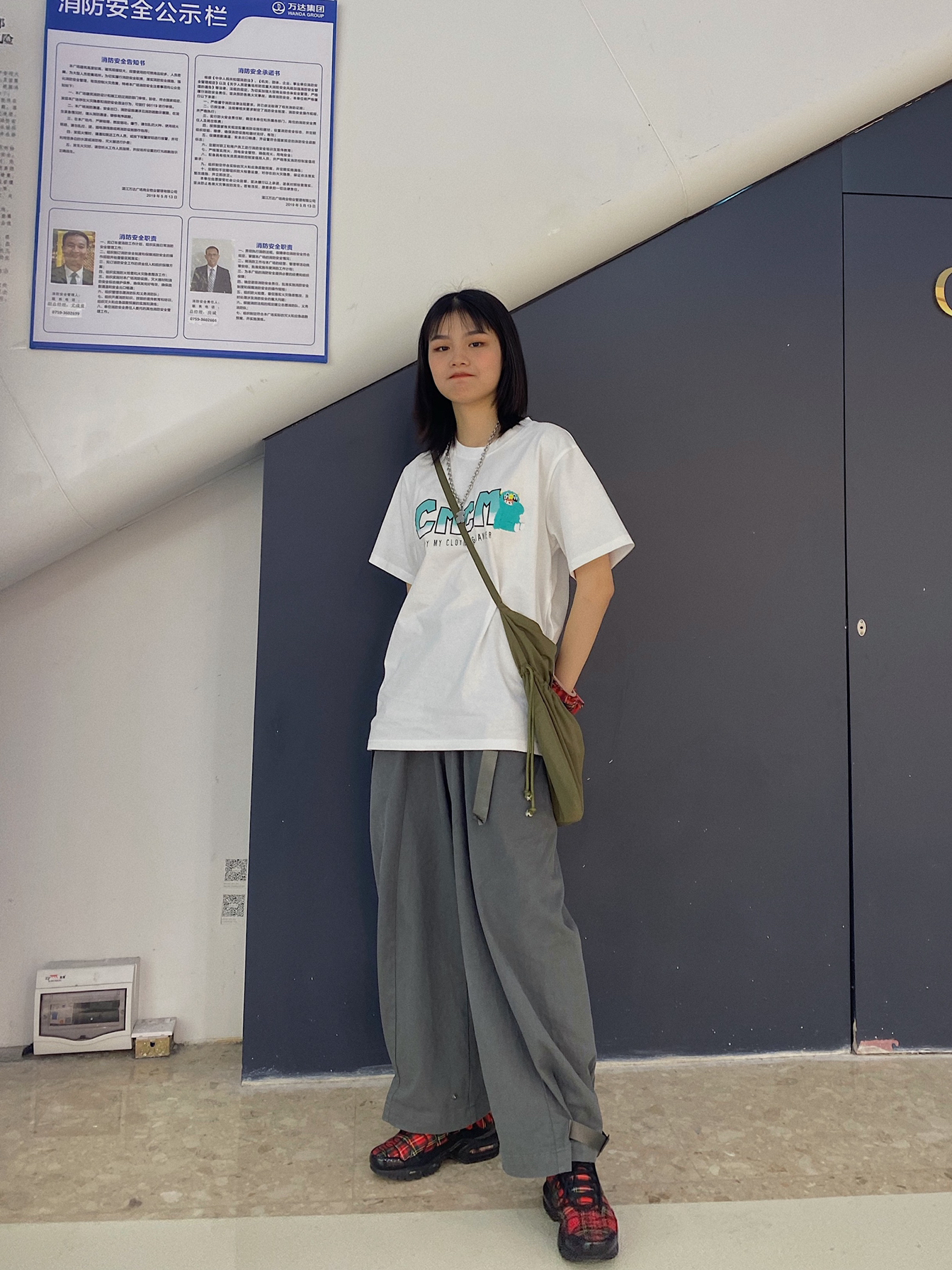 👕:stay gold official 这件t宽松版型,面料柔软,哭哭怪的logo很可爱! 👖:哭喊中心 这件是我超喜欢的宽松版型穿起来超级舒服,而且这个灰色很百搭我常穿。 👟:NIKE 这双鞋脚感很不错,格子花纹不会显得单调,最近常穿!