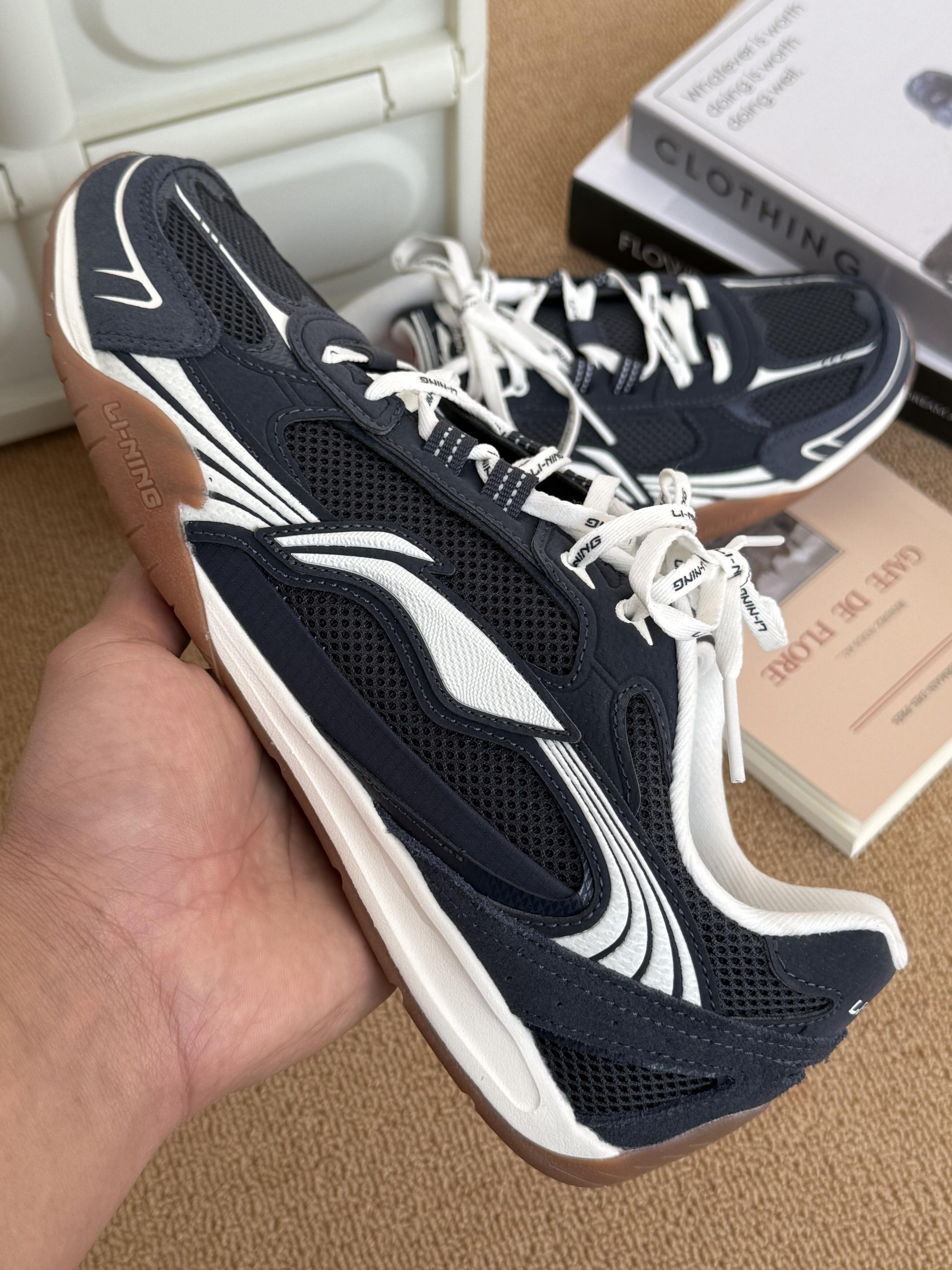 最近挖到的宝藏薄底鞋——李宁菲林Classic 银白配色很亮眼很有质感 网面透气 上脚轻盈脚感蛮不错的 薄底设计显腿长 脚感柔软 搭牛仔裤 阔腿裤都很韩系 日常通勤 穿搭 都舒服 这双鞋就是我的穿搭安全感 我穿42码 不偏码