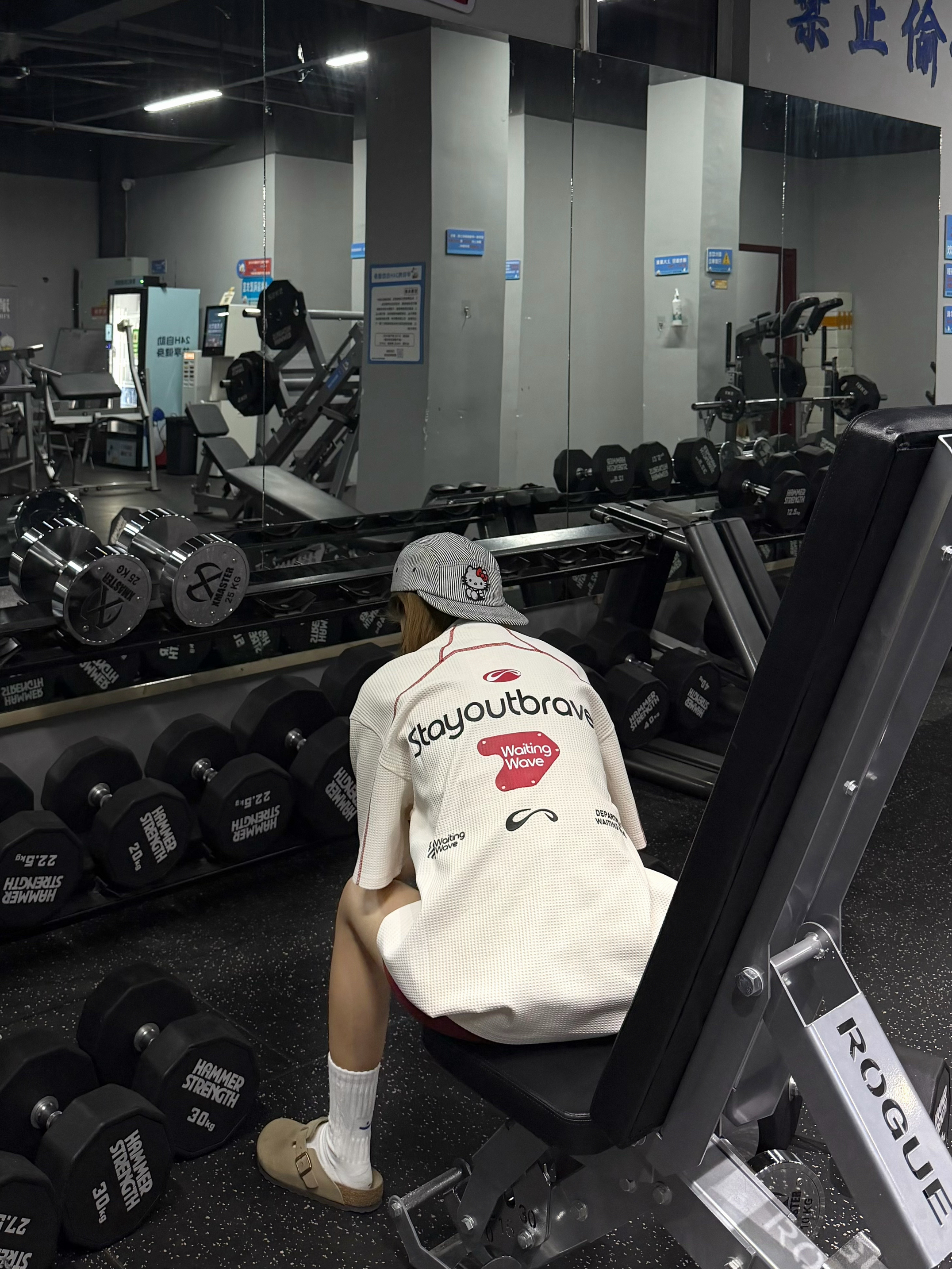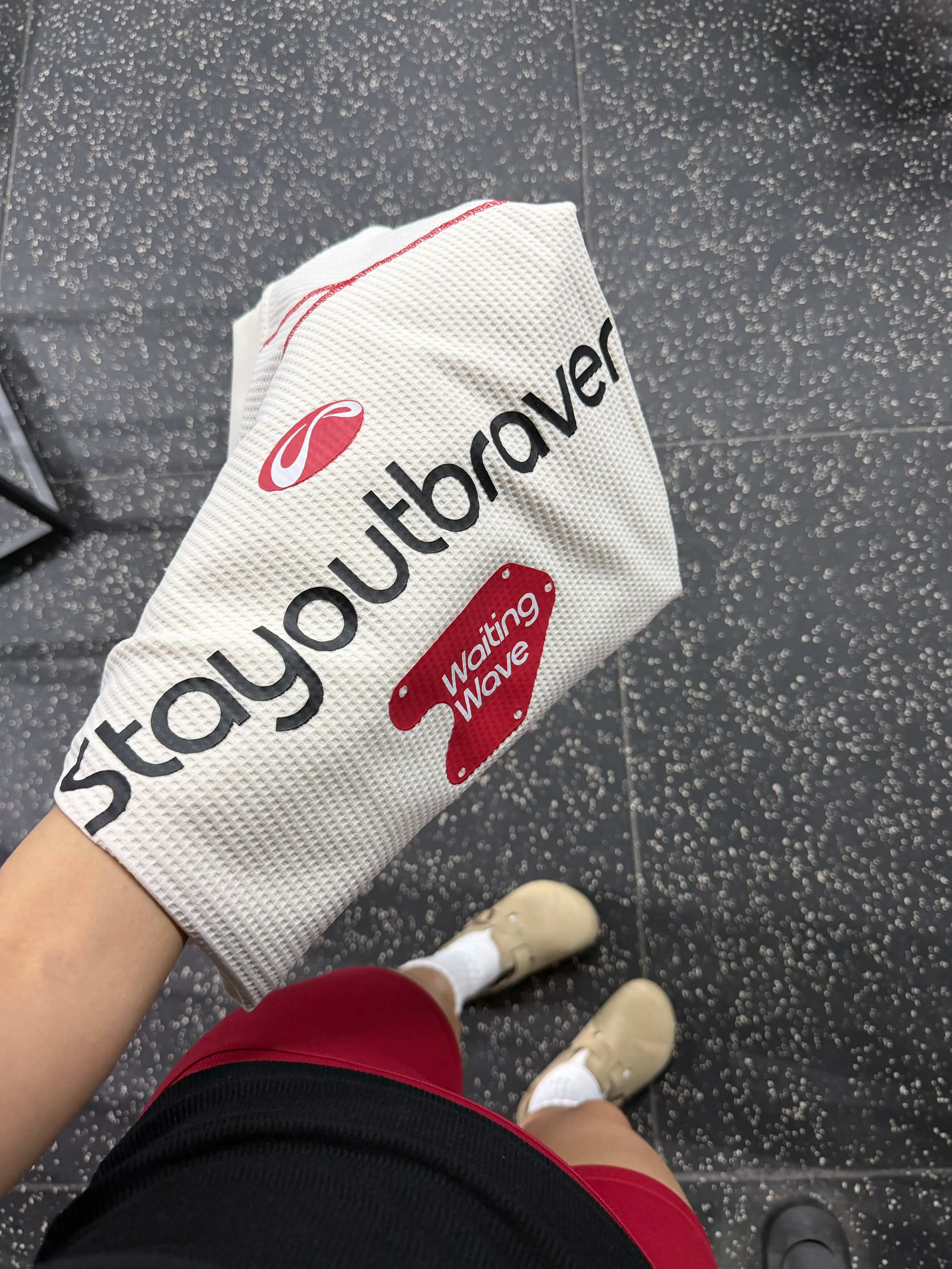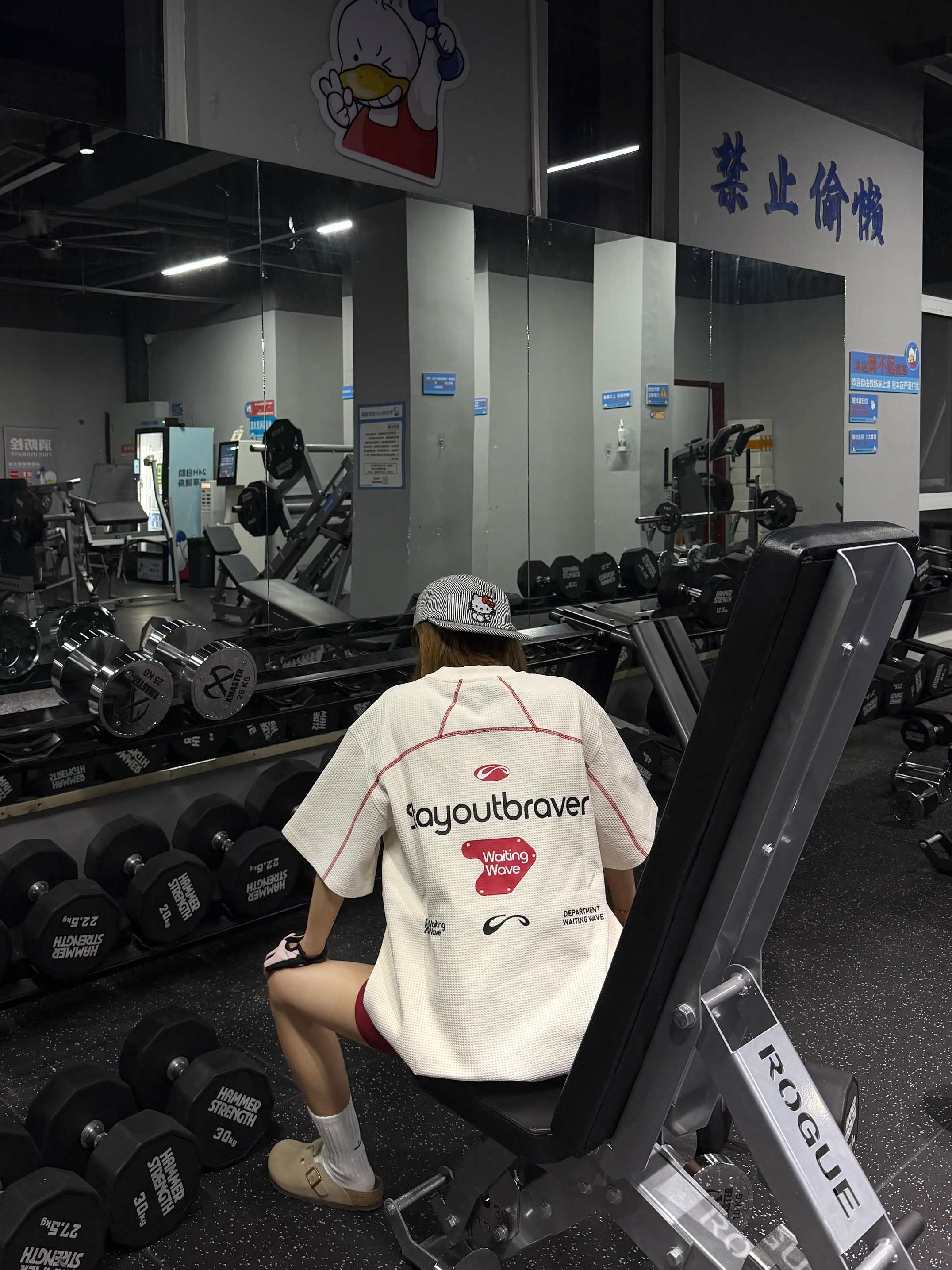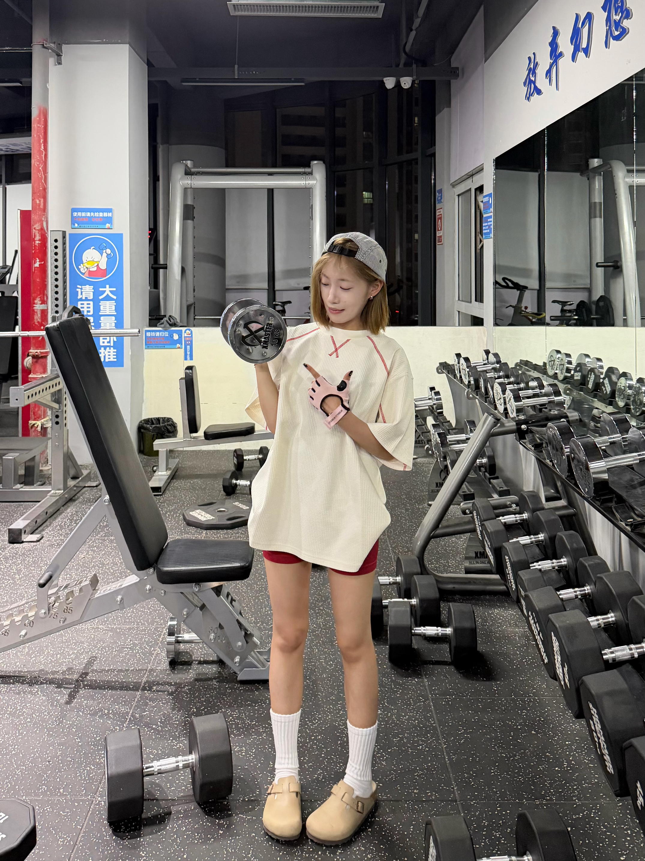 谁懂啊!这件华夫格短袖真的是健身穿搭神助攻!宽松版型藏肉又透气,背后印花潮到犯规,配红短裤+白袜勃肯鞋,休闲感拉满!撸铁时自在无束缚,出片率直接拉满,健身房回头率爆表,运动也要做最靓的崽~