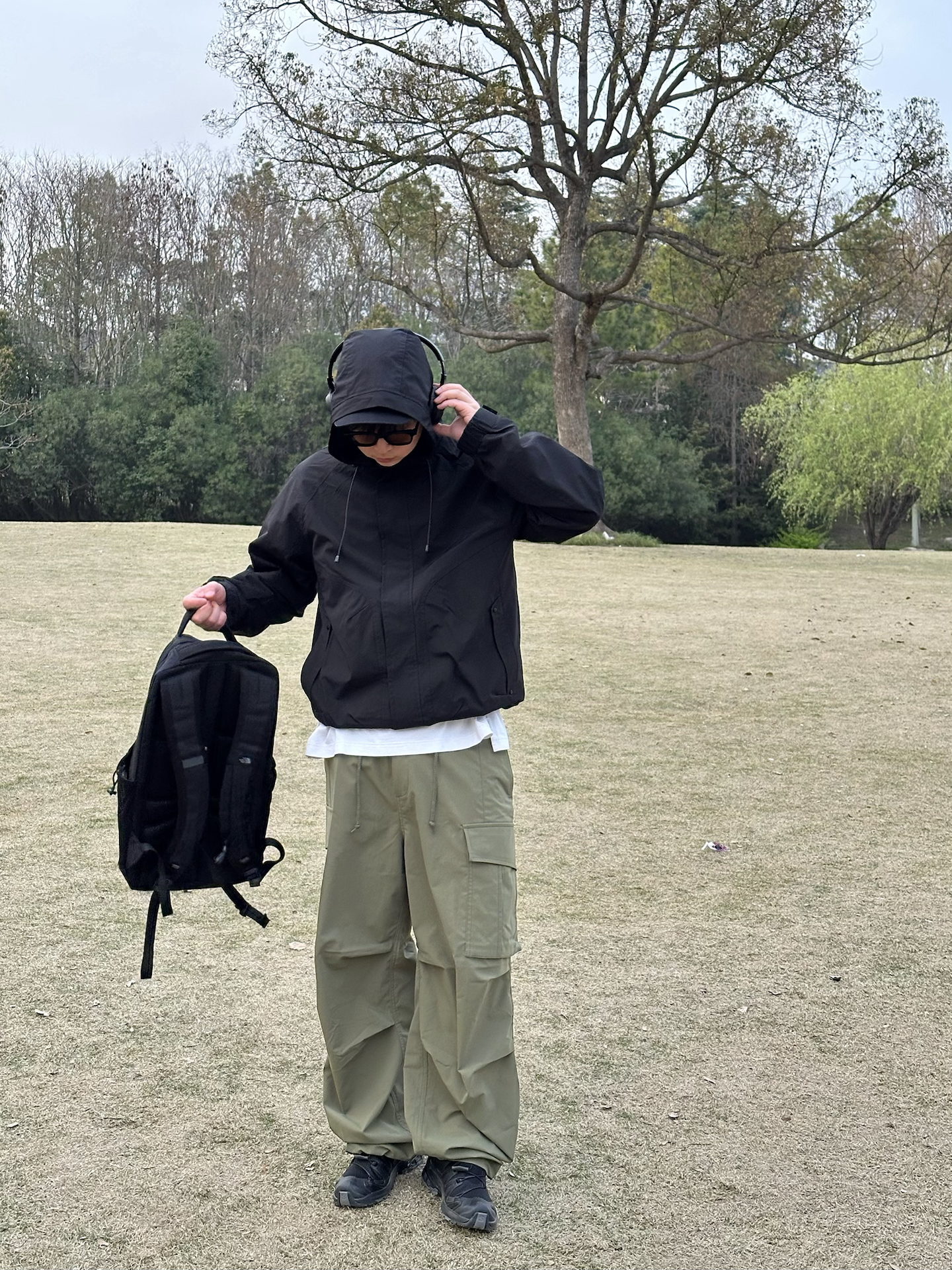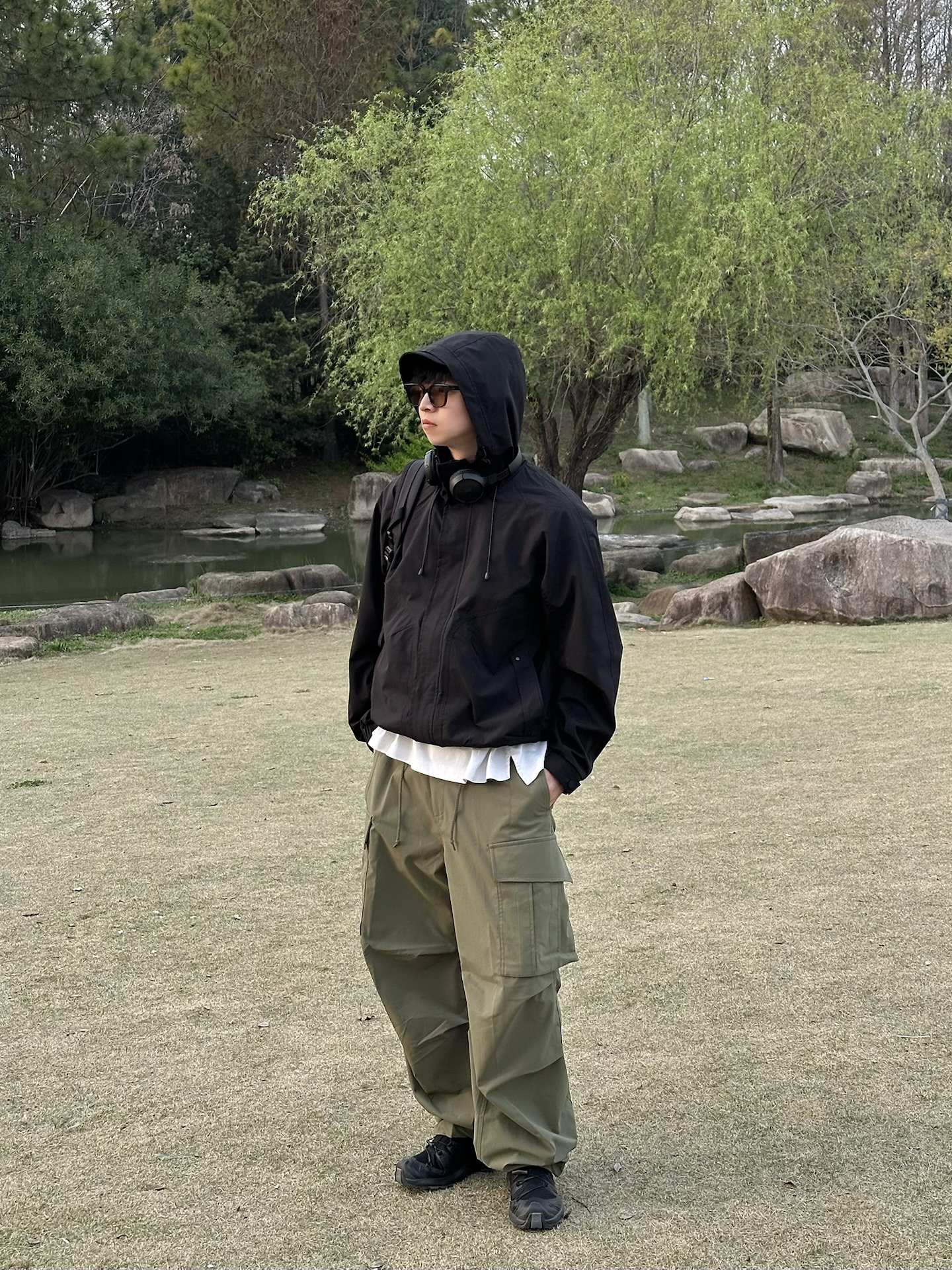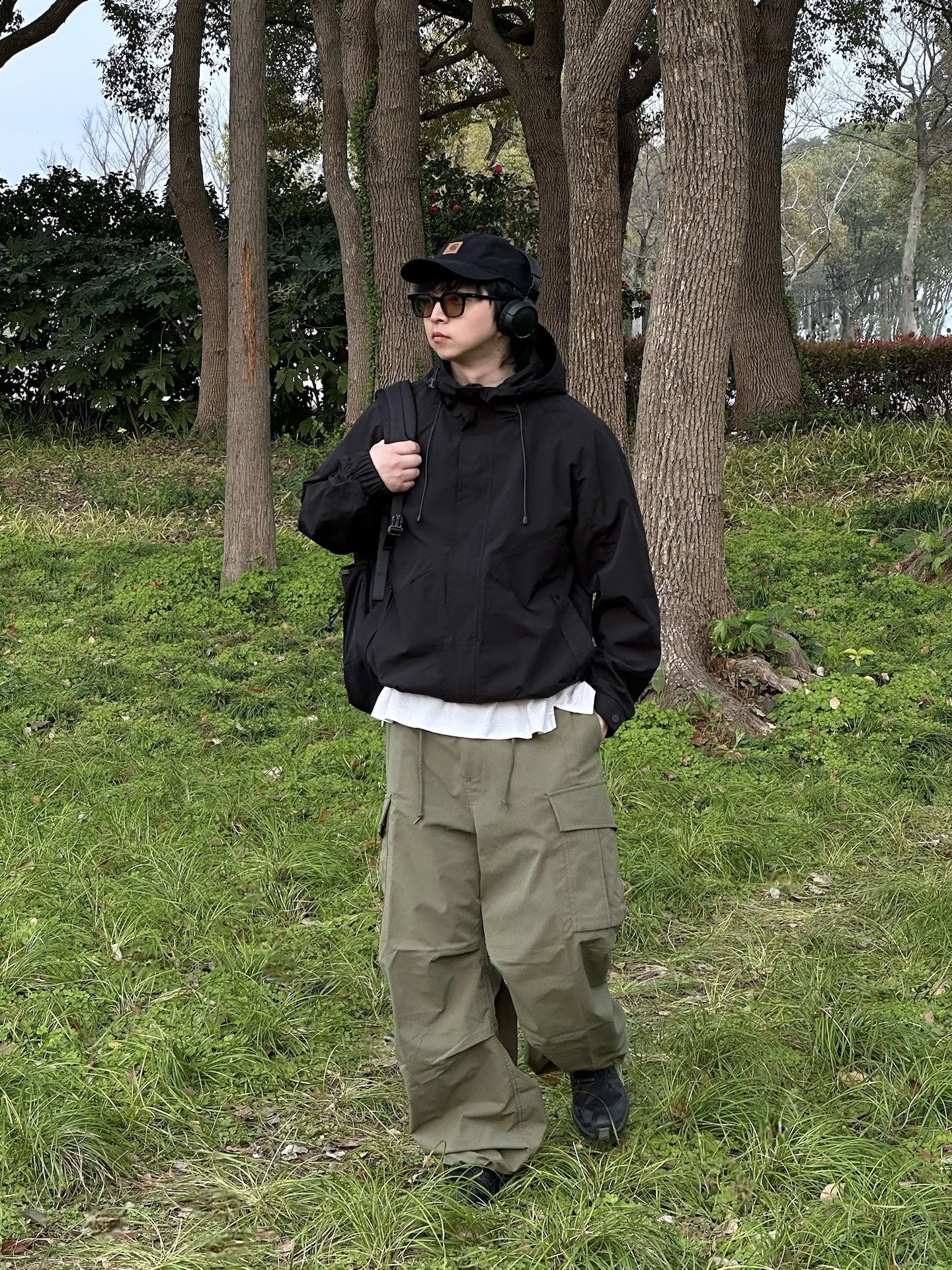 哈喽👋🏻大家好哇 这里是🪨石地夫的穿搭小日记📝 - 今天是Gorpcore户外机能风outfit🏕️ - 上身:黑色连帽冲锋外套是整套穿搭的核心 防风防泼水的面料☔️在户外非常实用 下摆带抽绳,收紧穿可以显腿长,大大加分➕➕➕ 连帽设计更是深得我心,帽子一戴谁都不爱😎 - 下身:选择了一条宽松的橄榄绿工装裤,这种低饱和度的绿色和黑色搭配简直绝了☑️ - 鞋履:搭配一双黑色户外鞋,和整体的机能...