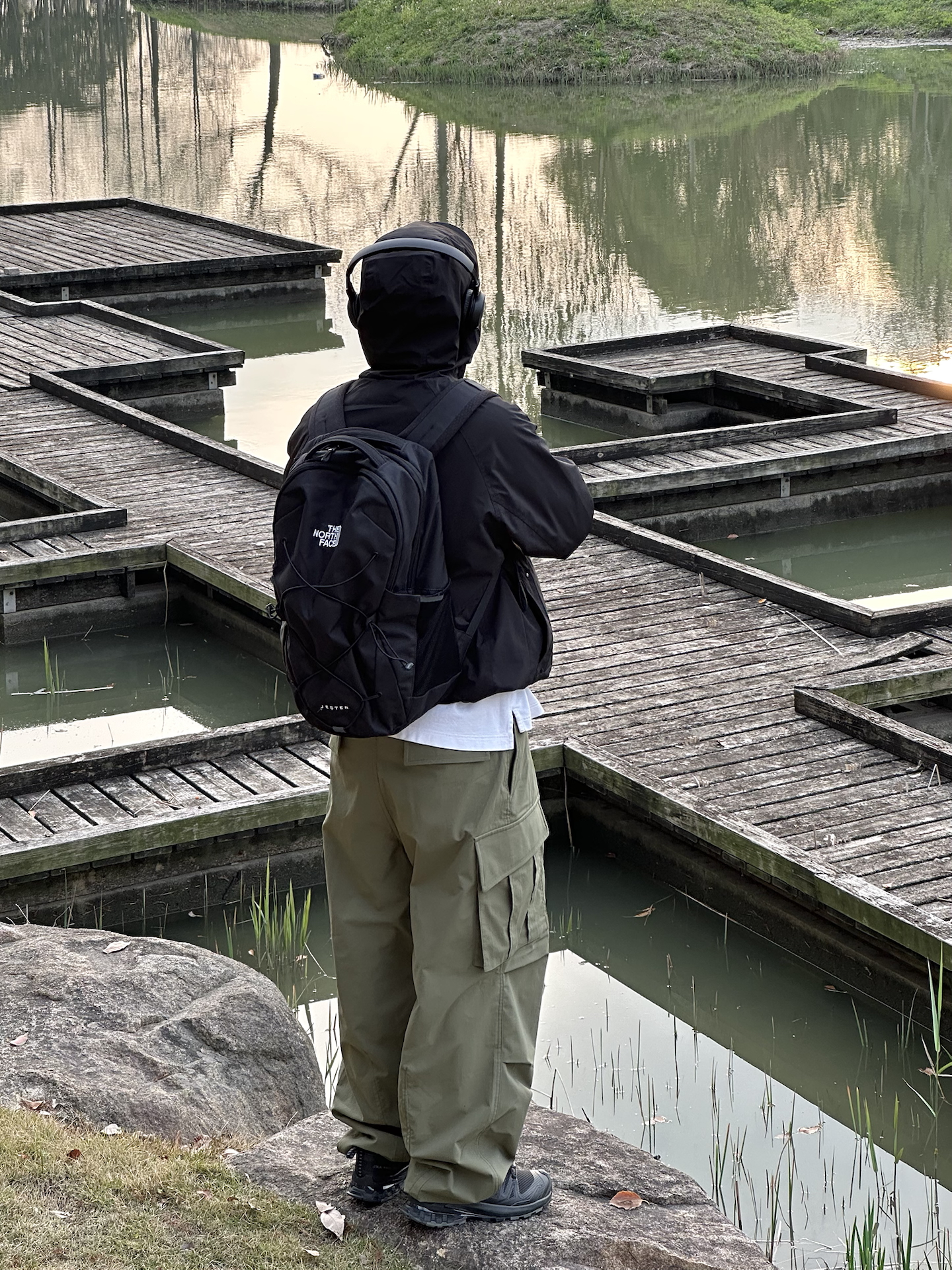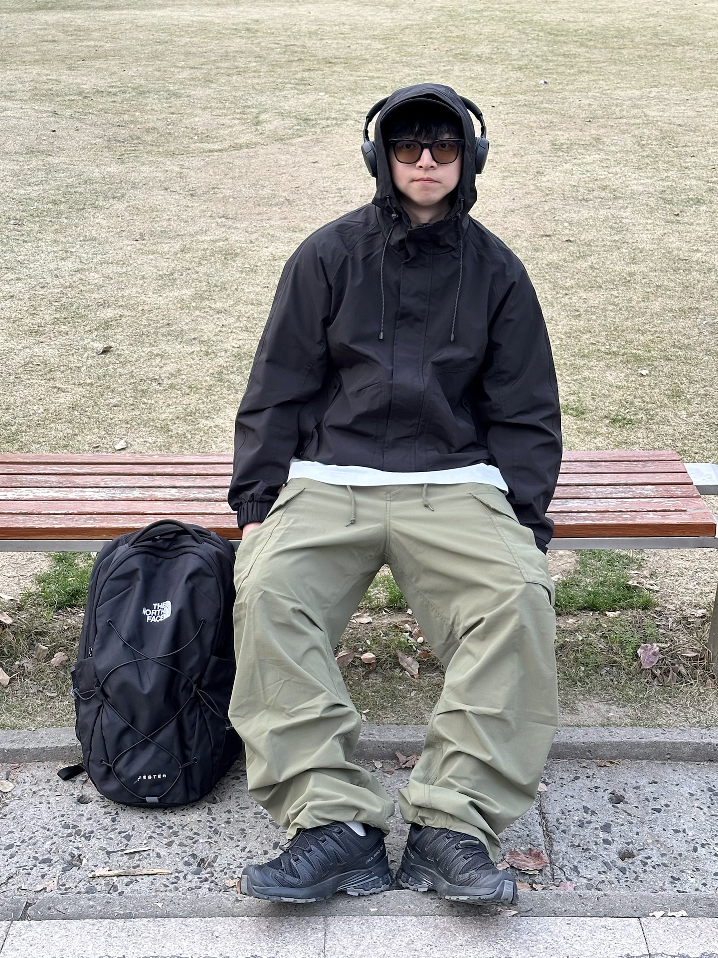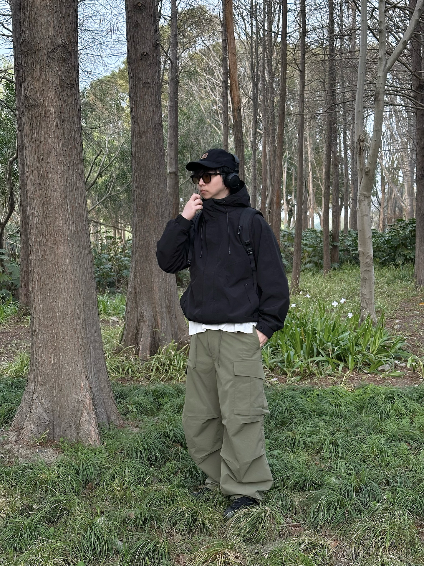 哈喽👋🏻大家好哇 这里是🪨石地夫的穿搭小日记📝 - 今天是Gorpcore户外机能风outfit🏕️ - 上身:黑色连帽冲锋外套是整套穿搭的核心 防风防泼水的面料☔️在户外非常实用 下摆带抽绳,收紧穿可以显腿长,大大加分➕➕➕ 连帽设计更是深得我心,帽子一戴谁都不爱😎 - 下身:选择了一条宽松的橄榄绿工装裤,这种低饱和度的绿色和黑色搭配简直绝了☑️ - 鞋履:搭配一双黑色户外鞋,和整体的机能...