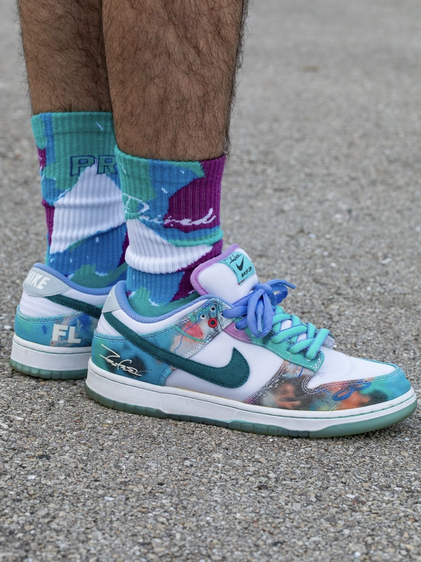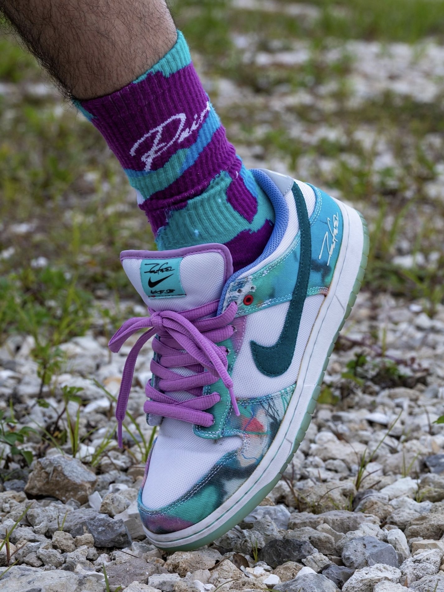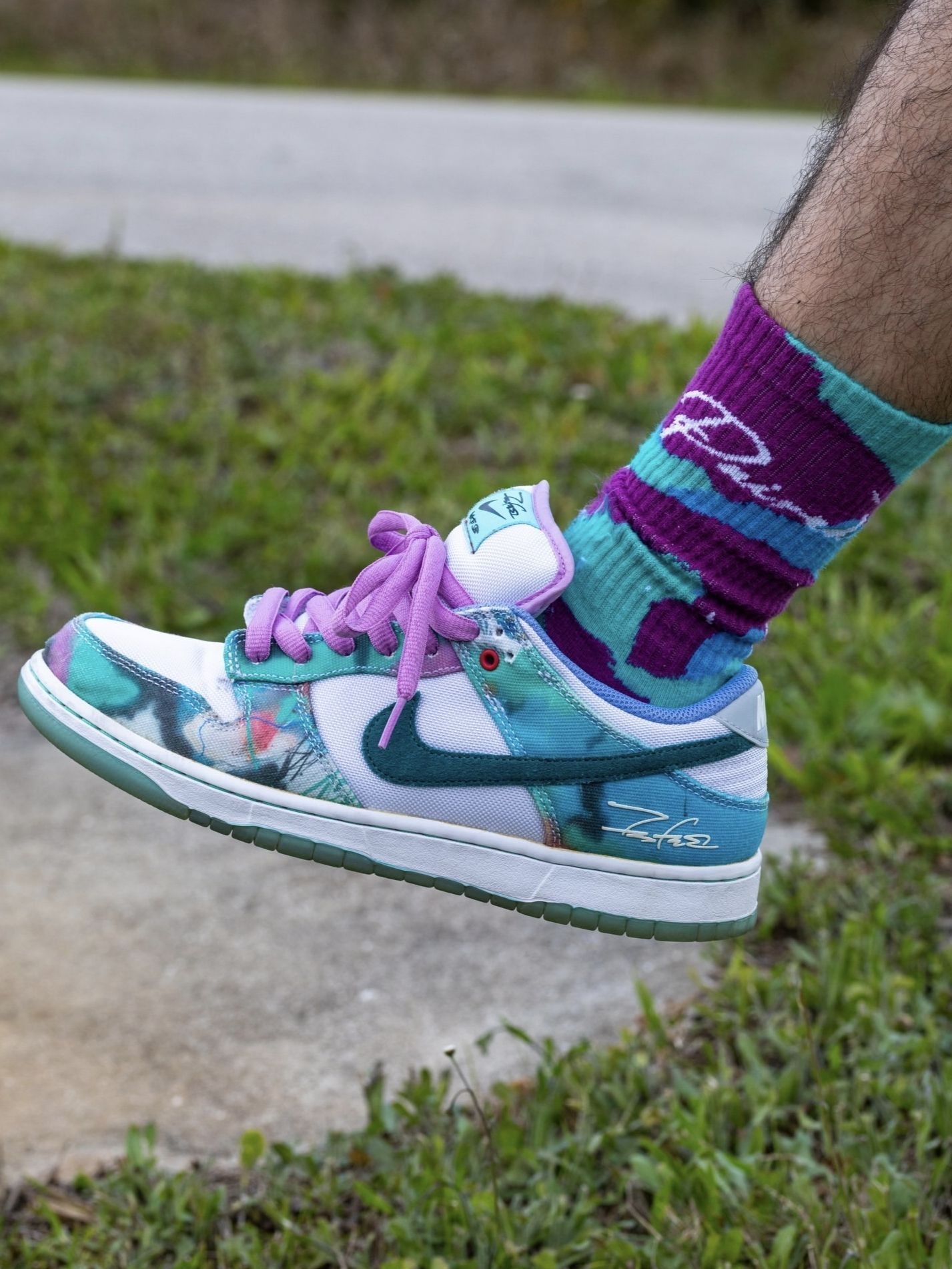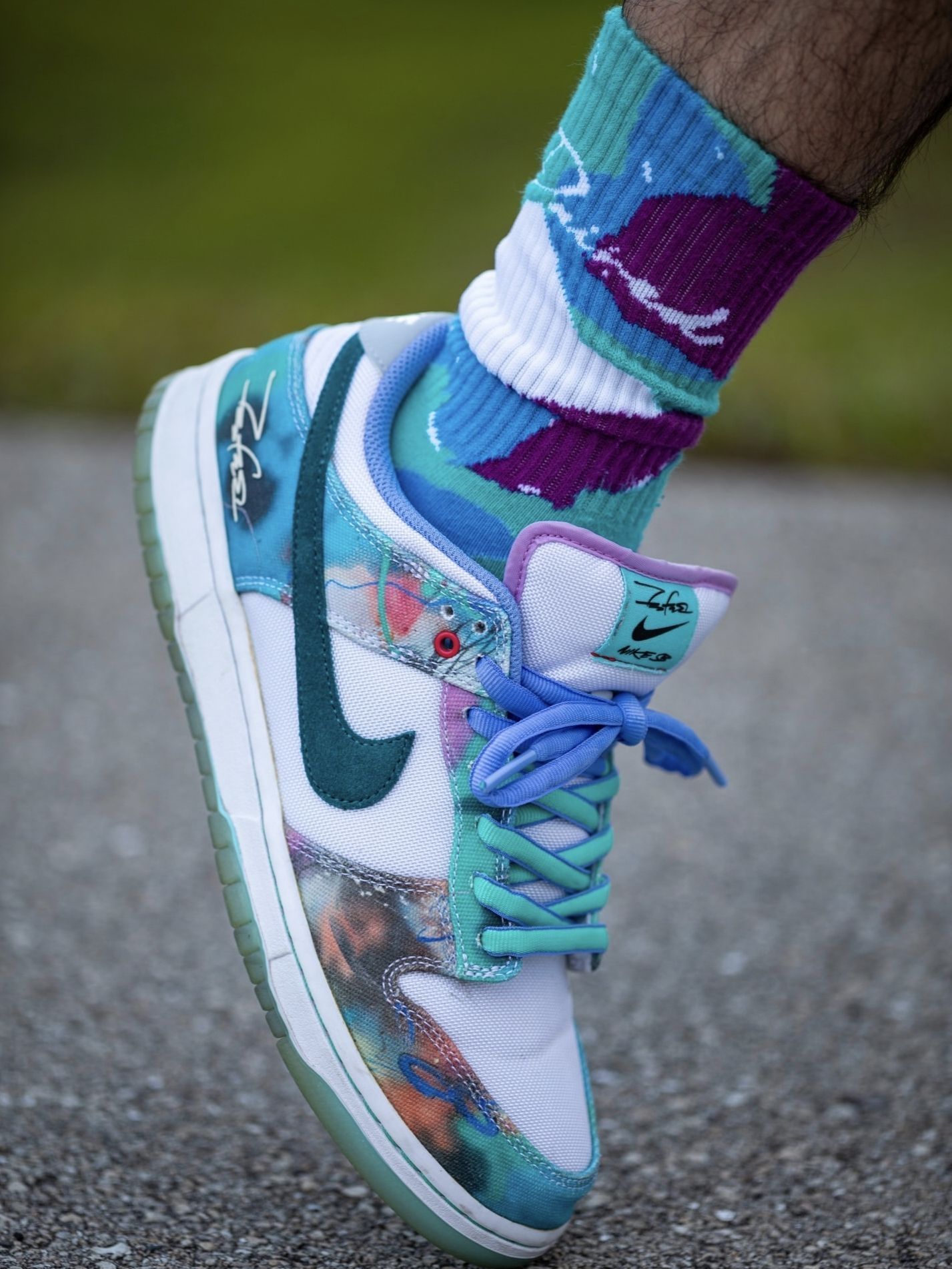 我直呼惊艳,上脚这双Futura Laboratories x Nike Dunk SB才敢说,蓝白泼墨的艺术感把街头与设计感焊在了一起,是越穿越上头的宝藏板鞋。 我越搭越顺,渐变蓝绿的鞋身像把春日的涂鸦画在鞋上,蒂芙尼绿Swoosh和冰蓝外底,搭配同色系扎染中筒袜,裤脚随意卷起,艺术感和松弛感直接拉满。不管是日常通勤还是逛展,套一件白T就能把氛围感稳稳拿捏,回头率直接拉满。 我格外踏实,...