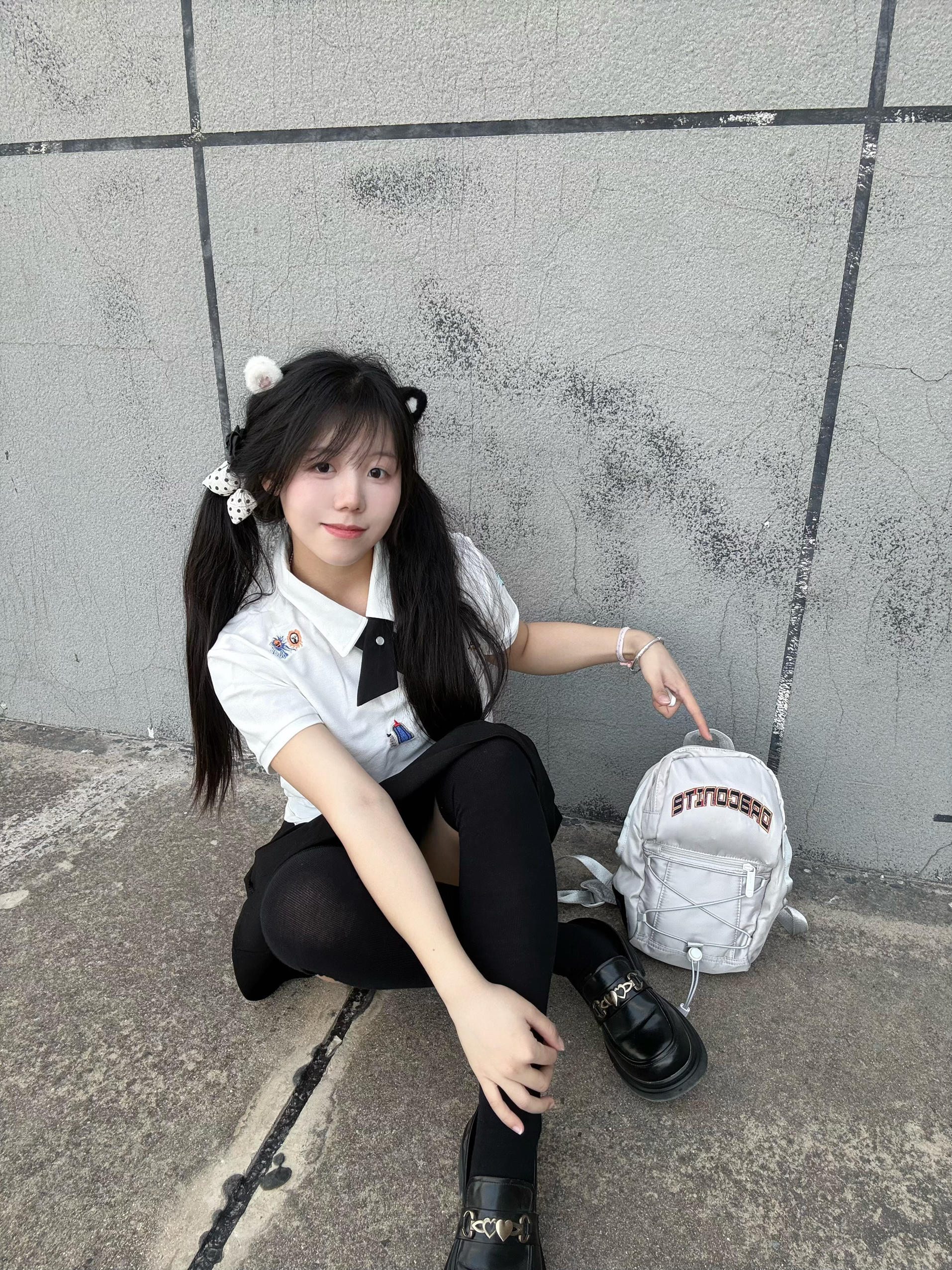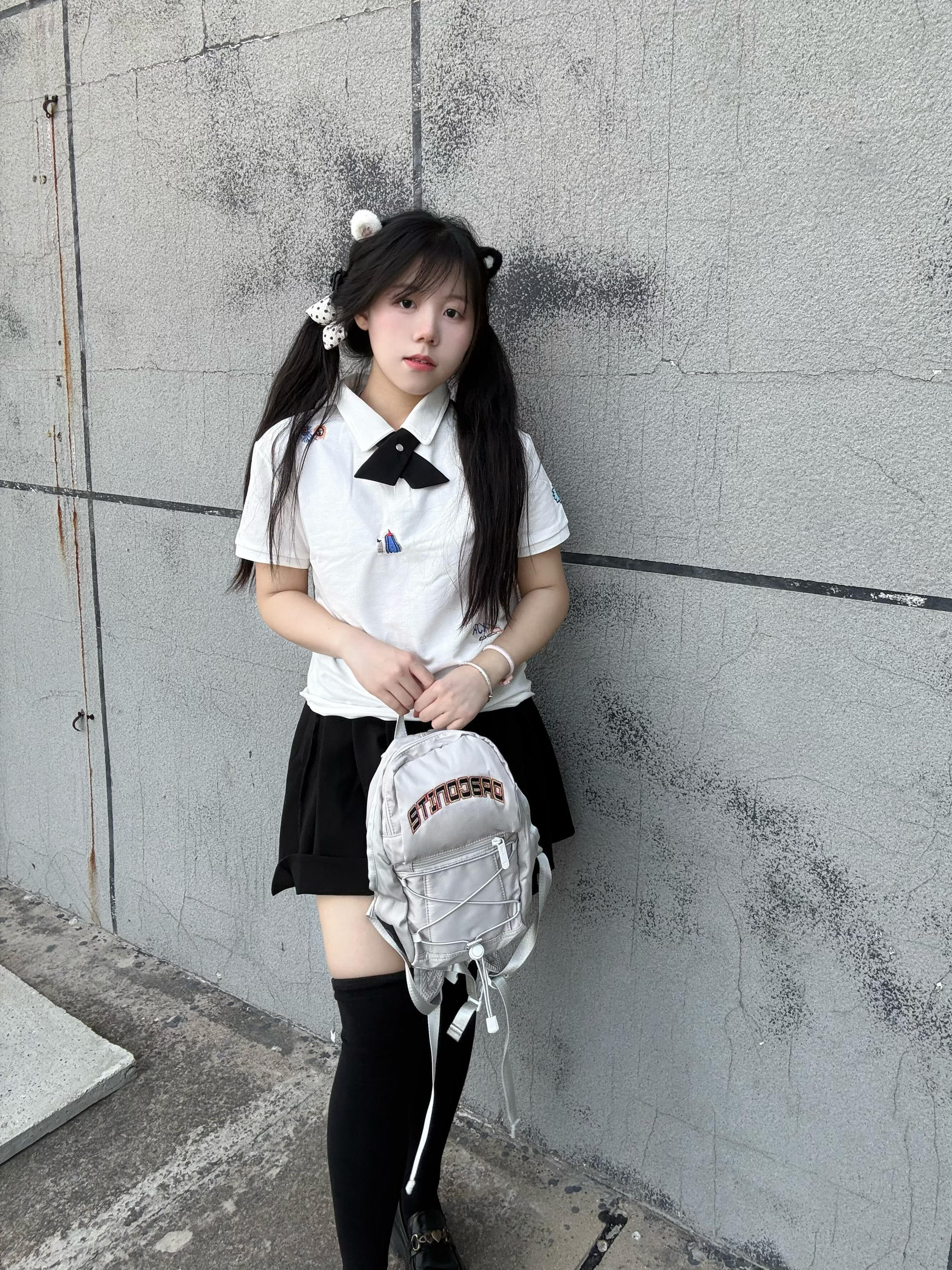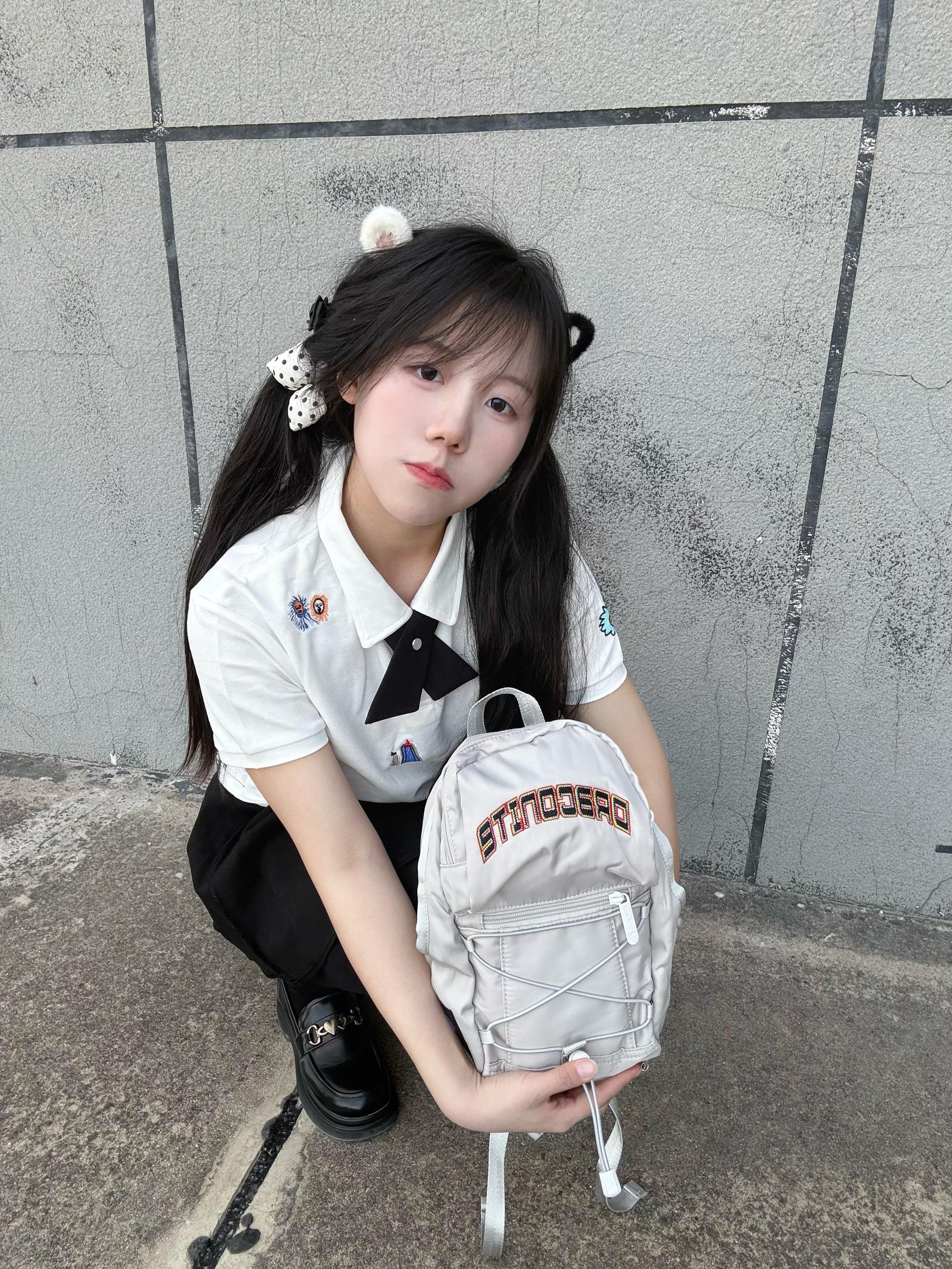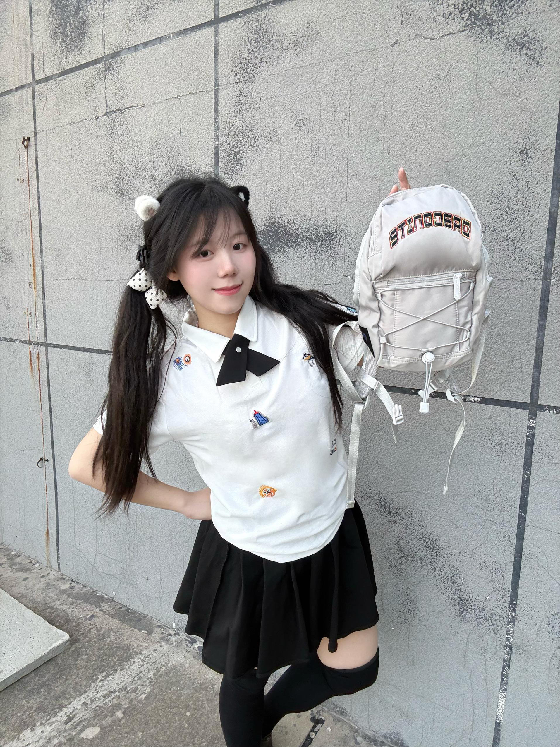 今天身上背的是DRACONITE家的包包 身上穿了一个短袖 和短裙非常适合现在春季穿搭 包包小小一个很轻便 小众设计完全不撞款 浅灰色显质感 绑带设计甜酷感拉满! 别看它小巧 容量超能打 日常通勤里面放零食 手机耳机 充电线 化妆品都没问题! 休闲装都超百搭 高性价比直接很棒👍 背上秒变校园甜妹