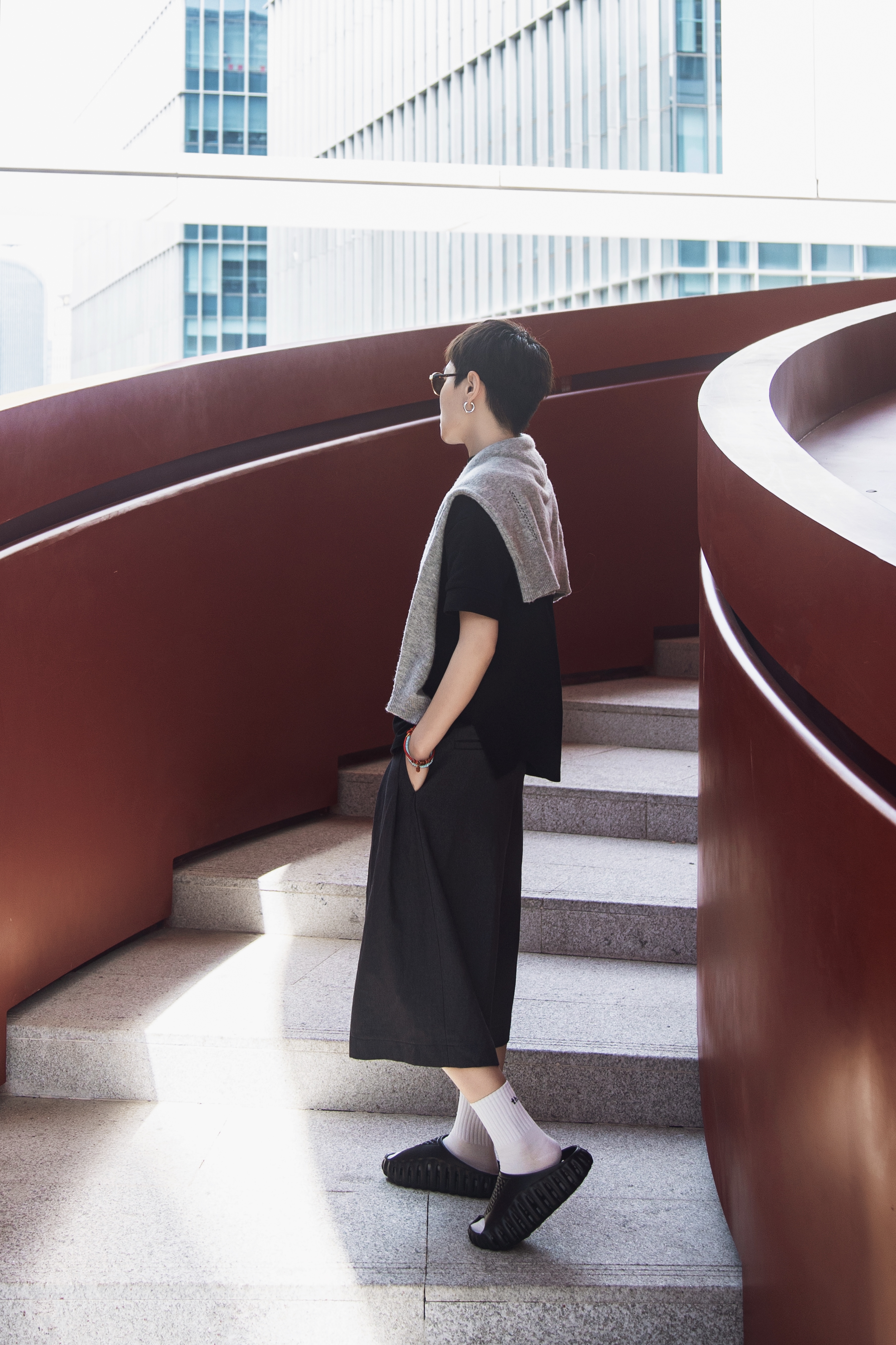 鲜花盛开的季节 穿基础款去赏花才不会眼花缭乱呀 穿搭指南: 上身一件黑色纯色T恤 正肩小领口设计 显身型又自带高级感 配一条深灰色七分裤 西裤面料 休闲又时髦 浅灰色毛衣披肩 增加层次感 上脚一双洞洞拖鞋 黑色耐脏且百搭 鞋底有一定厚度 显高还走路不累脚 整体基础色搭配耐看不挑人 日常出街穿这套超chill的