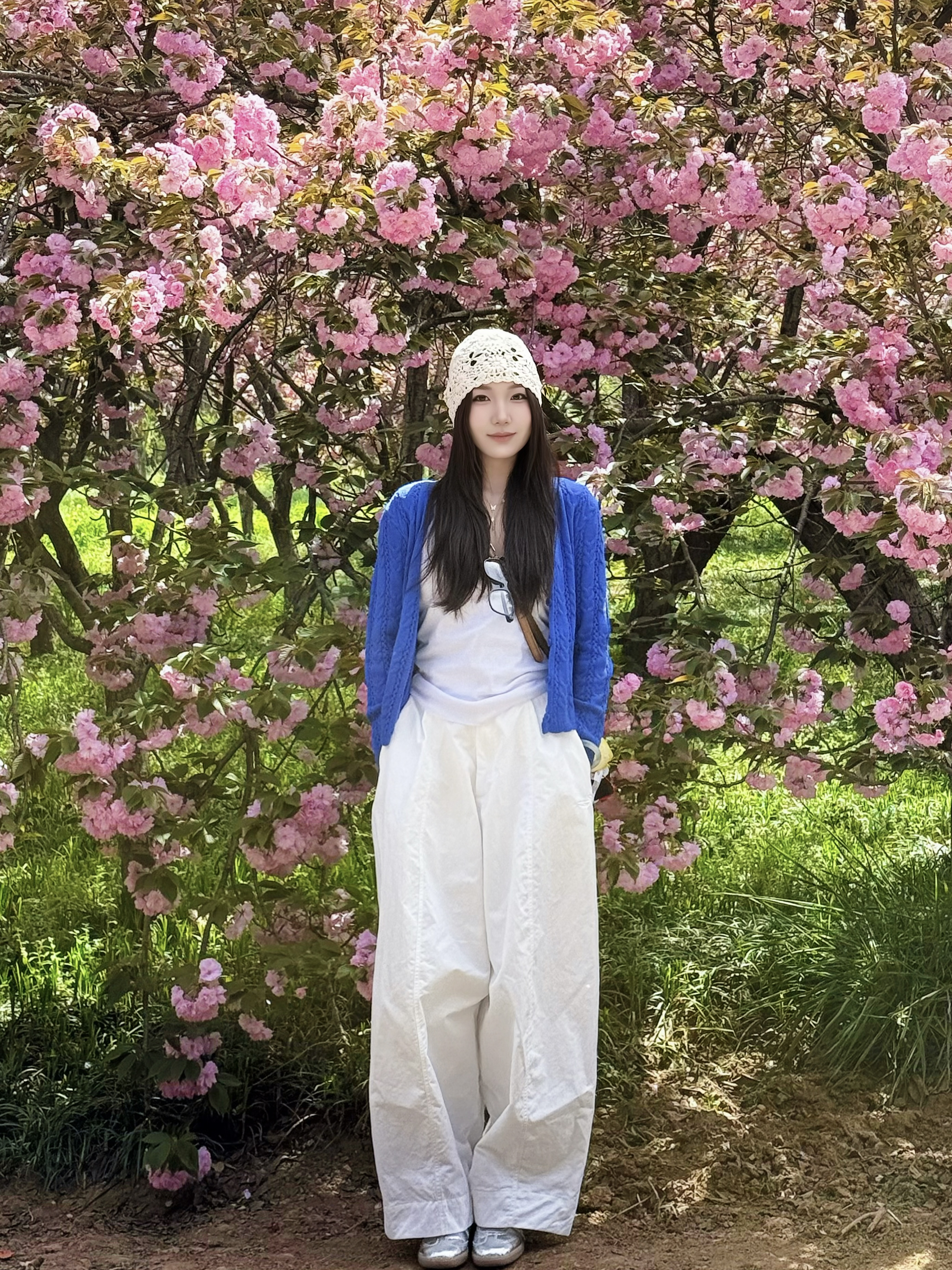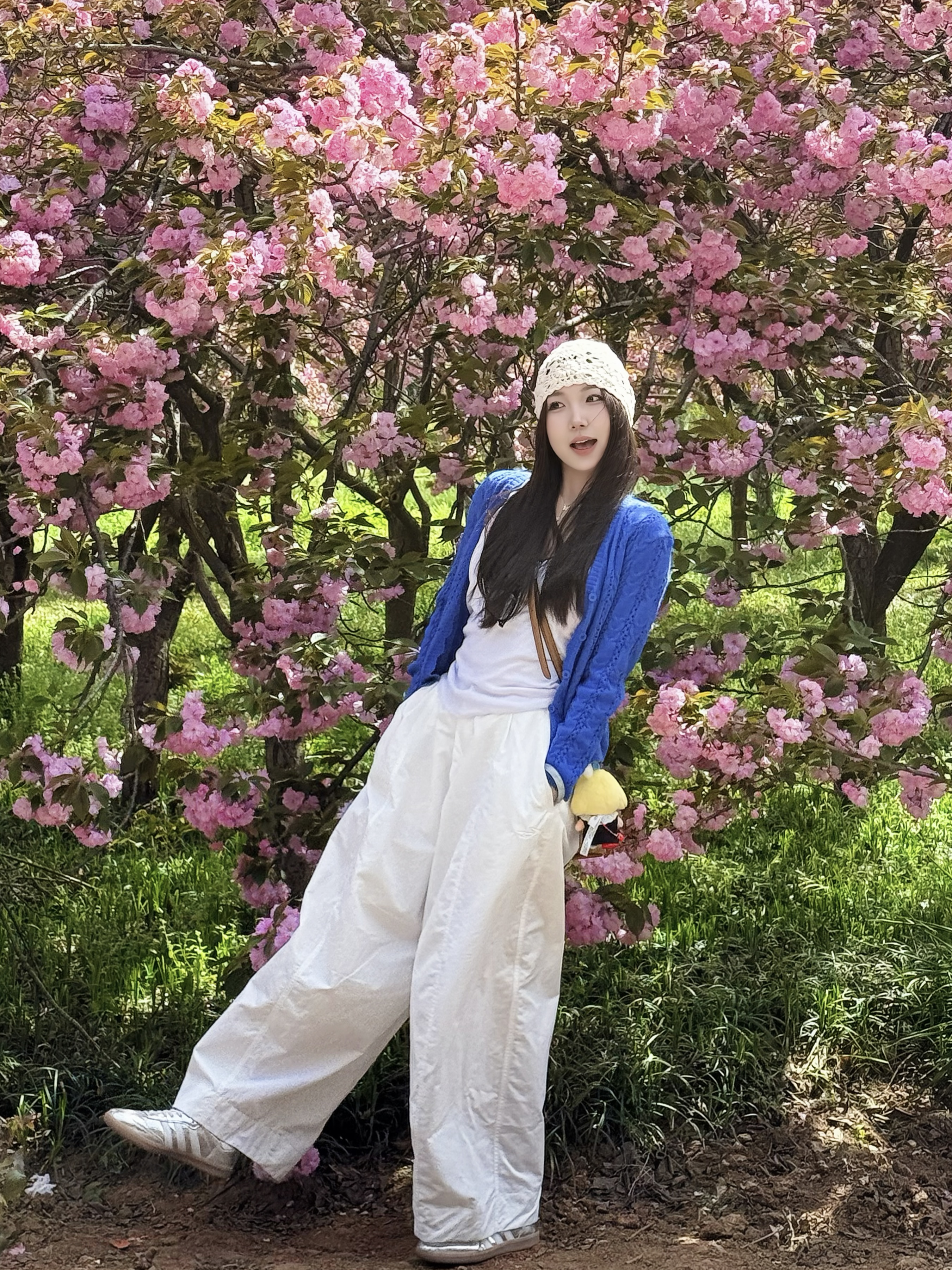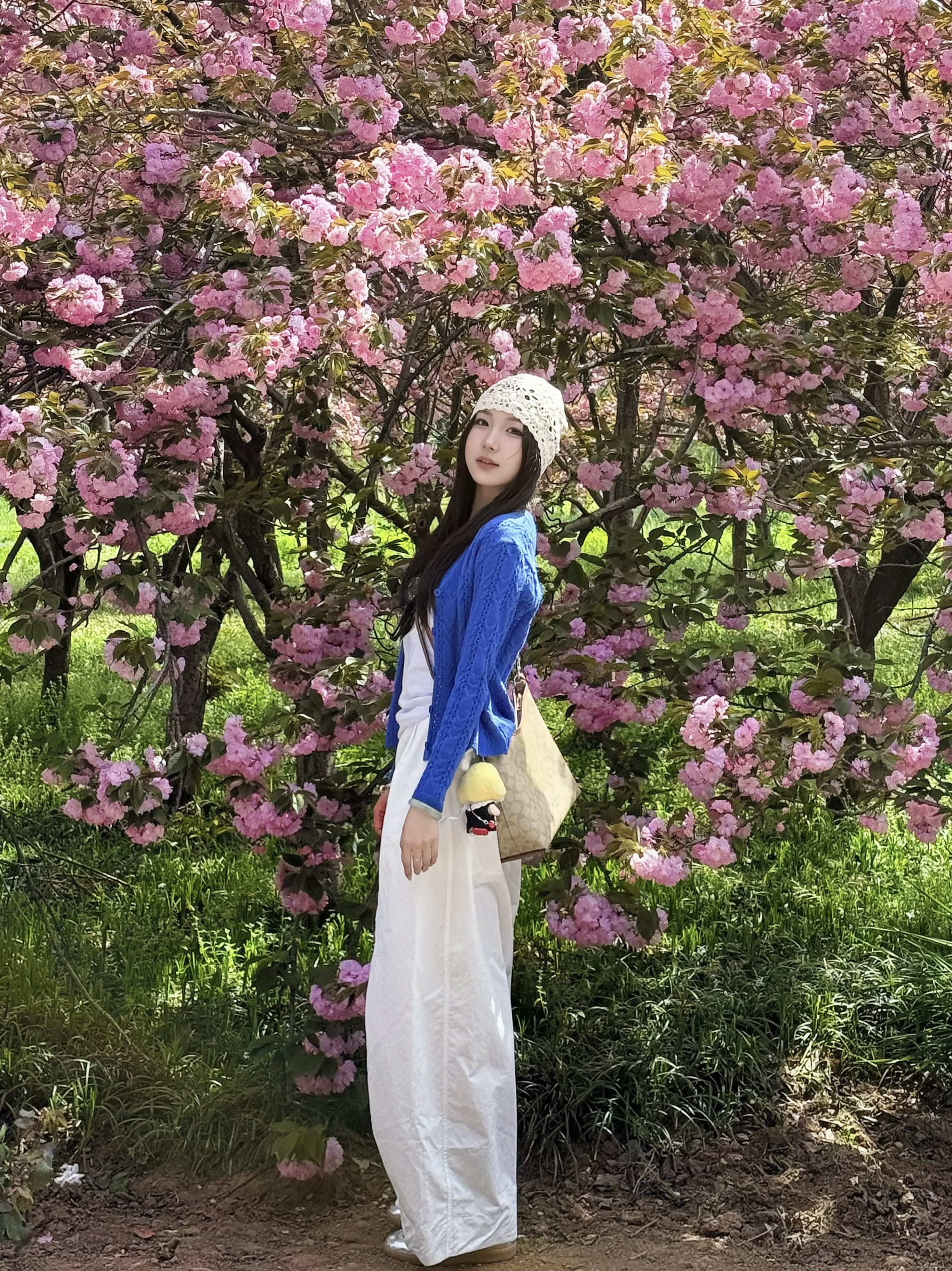 克莱因蓝针织开衫+奶白阔腿裤 一整个把春日氛围感焊在身上! 软fufu的针织麻花编织纹理上衣,温柔又显白,单穿叠搭都好看,春天的氛围感直接拉满! 这套穿搭真的太适合樱花季出游了!拍照巨出片📸 日常通勤、春游赏花都能穿,春天的氛围感穿搭直接抄作业!